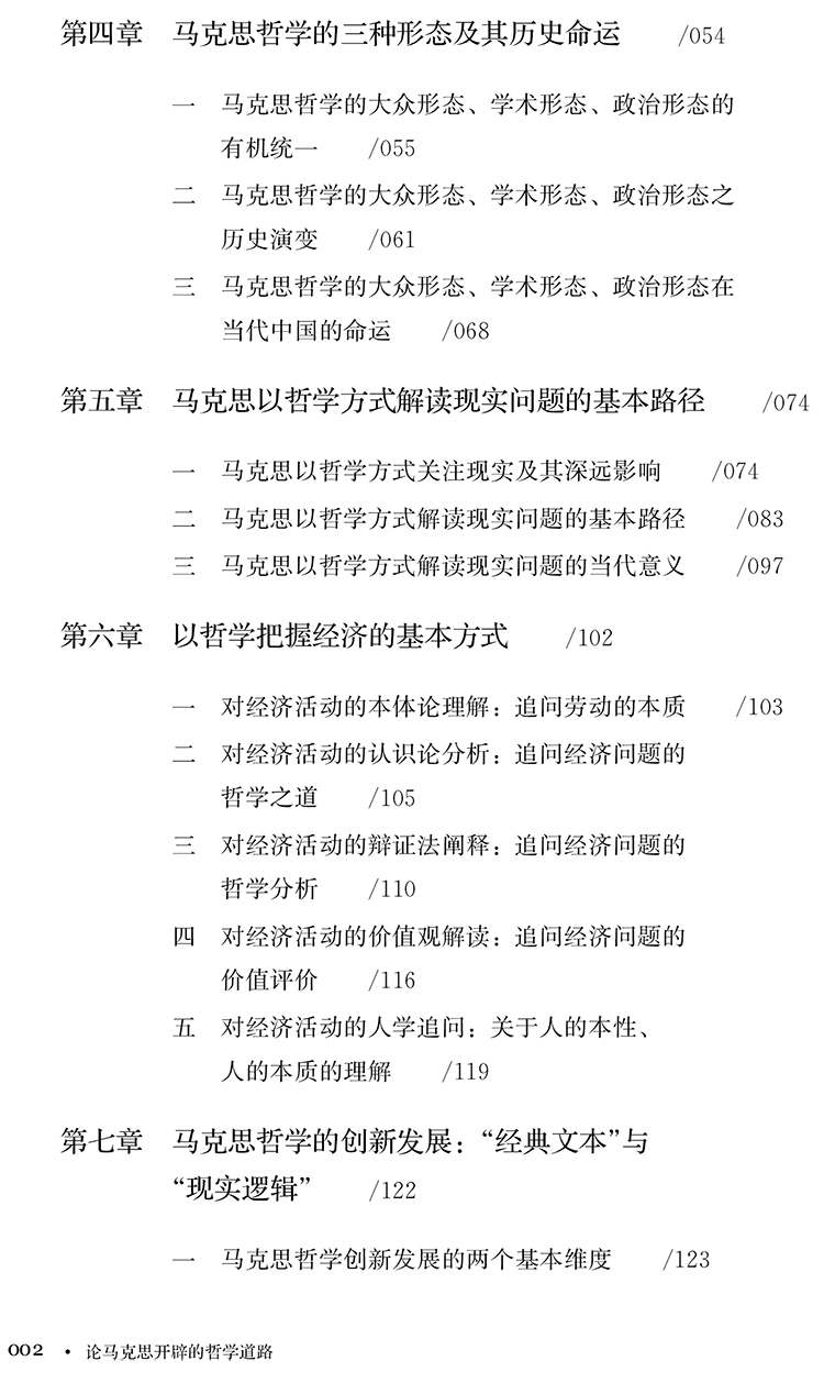 本书以研读“经典文本”“现实逻辑”为基础,从马克思哲学的生成性本质、马克思哲学思想的发展逻辑、马克思哲学的三种形态及其历史命运、马克思哲学的创新发展、当代中国马克思主义哲学研究的历史演进、马克思的人学理论等方面,从学理学术上系统分析研究“马克思开辟的哲学道路”这一基础性问题,厘清马克思的哲学观,揭示马克思主义哲学的基本价值与历史命运。本书对于把握马克思哲学的本性,推进马克思主义的创新和发展,具有十分重要的意义。