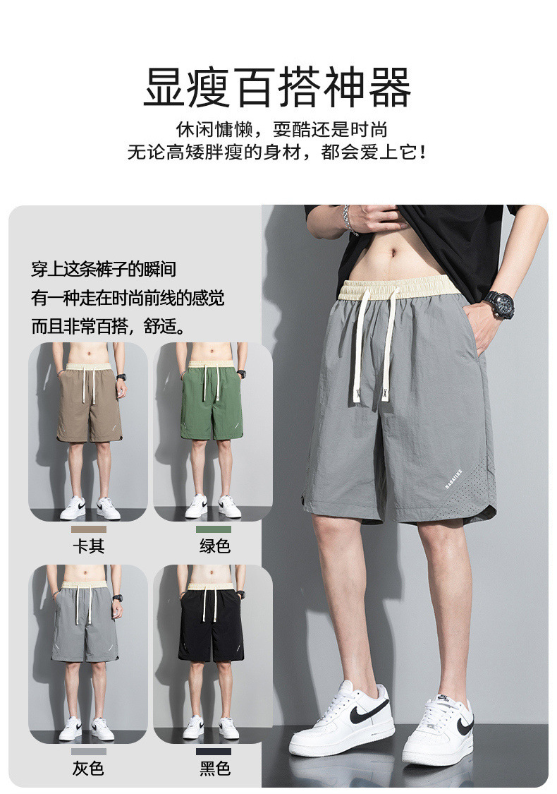 夏季【冰丝速干短裤】直筒宽松五分男士工装裤 休闲薄款 中裤潮牌运动大码