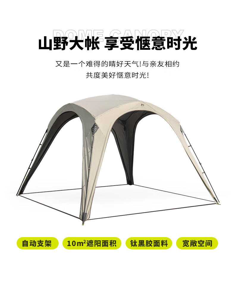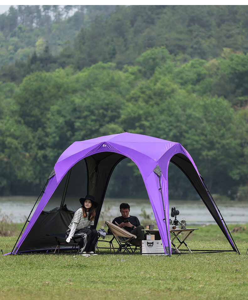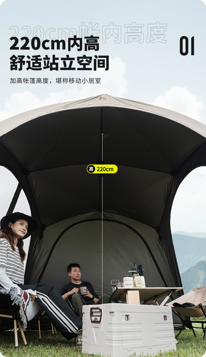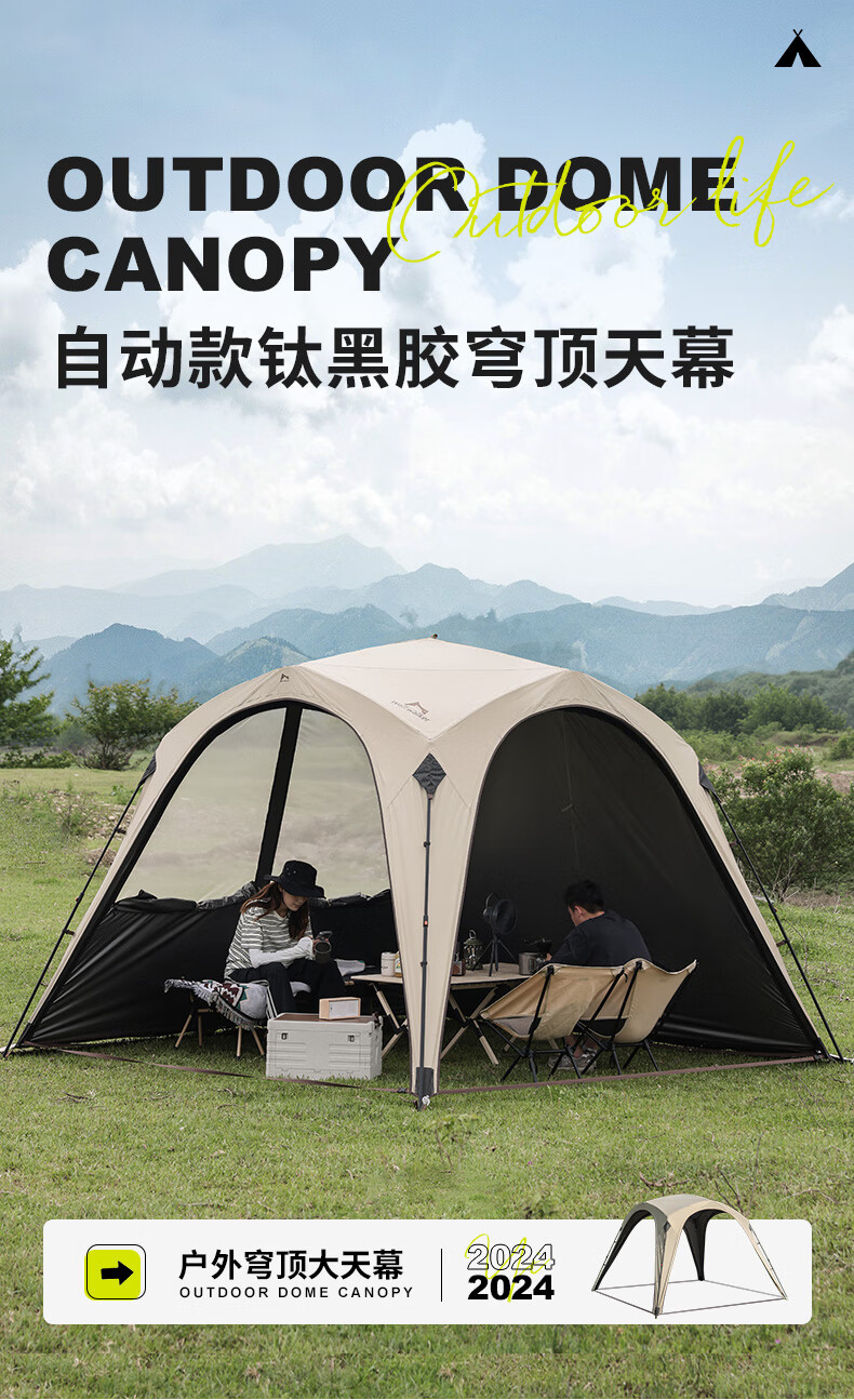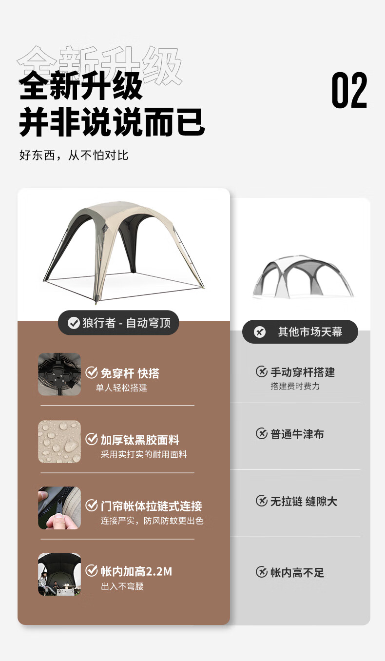 狼行者自动穹顶天幕速开帐篷户外露营钛黑胶遮阳棚野营防晒防雨 黑色