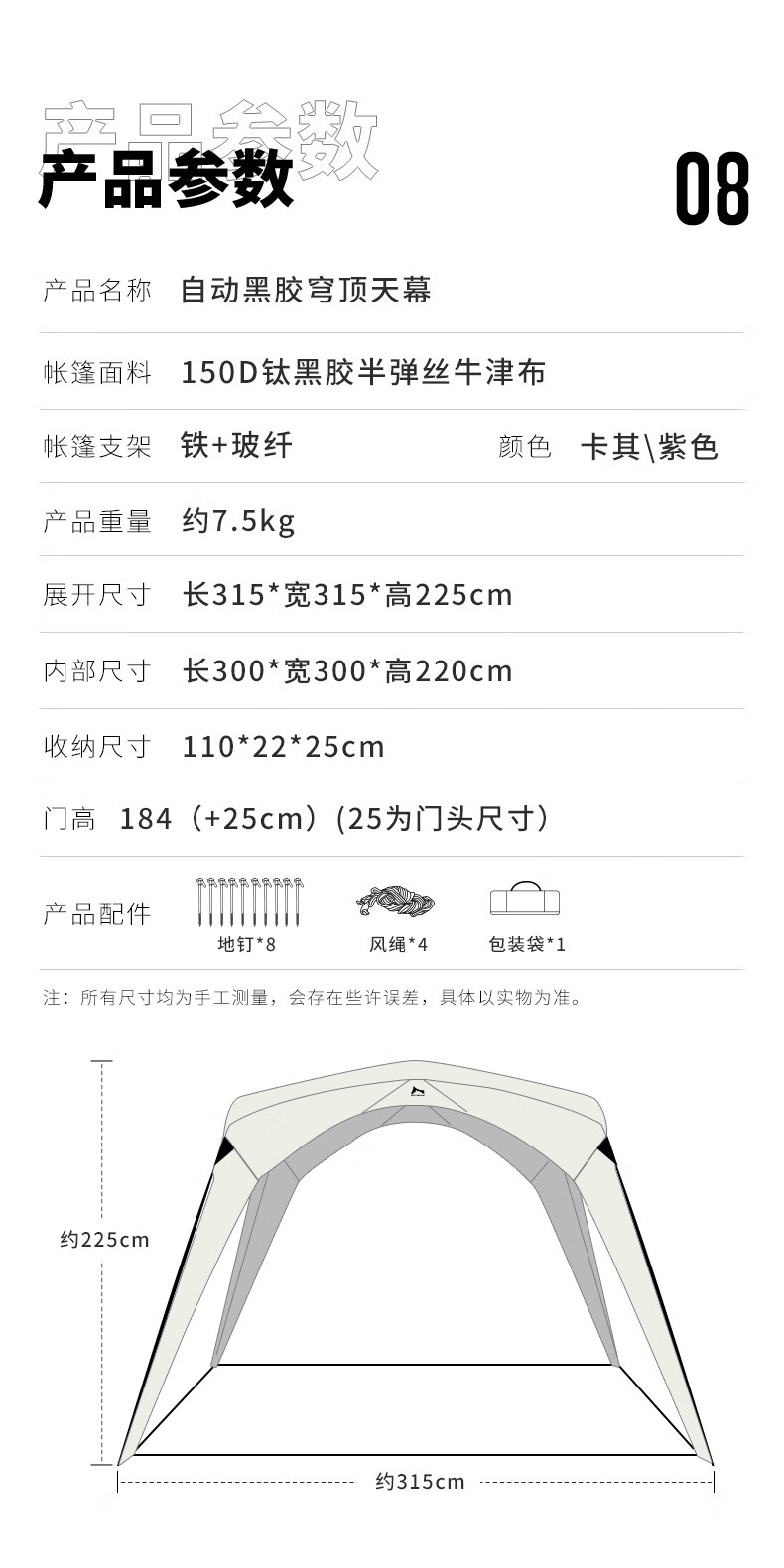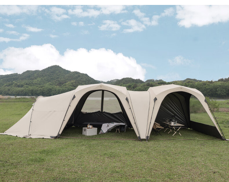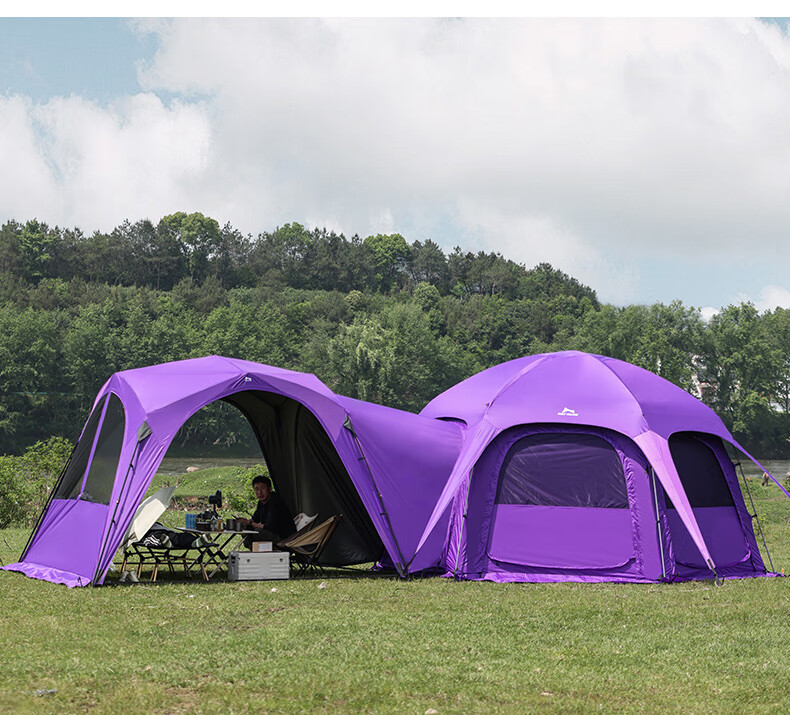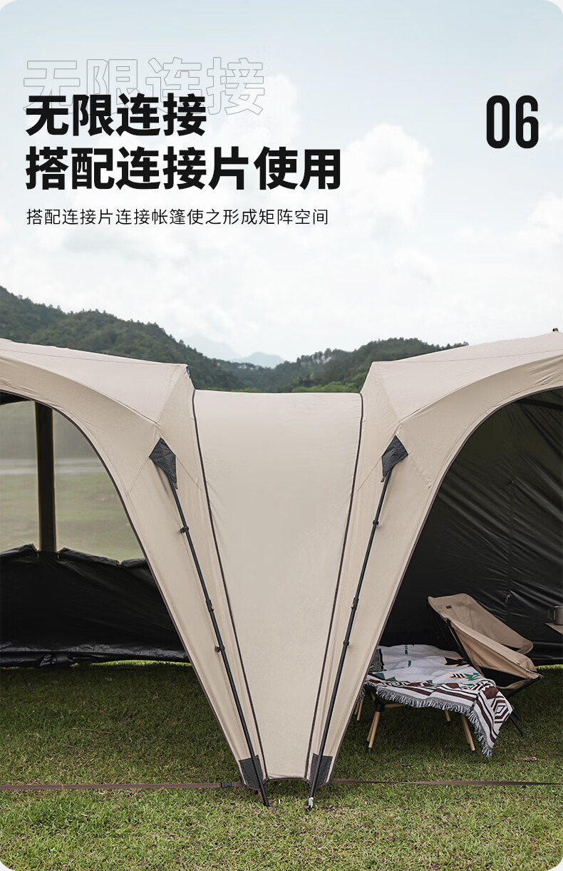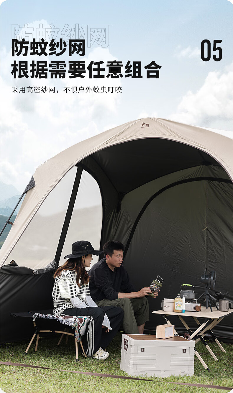 狼行者自动穹顶天幕速开帐篷户外露营钛黑胶遮阳棚野营防晒防雨 黑色
