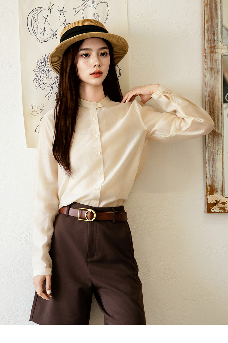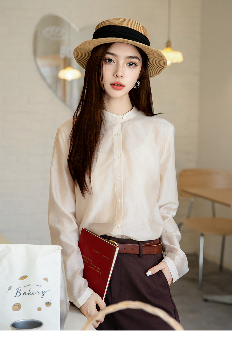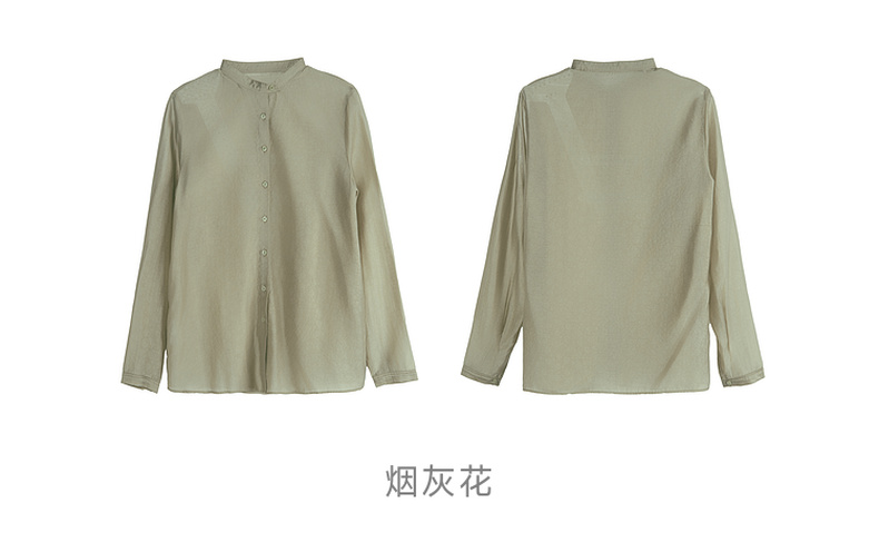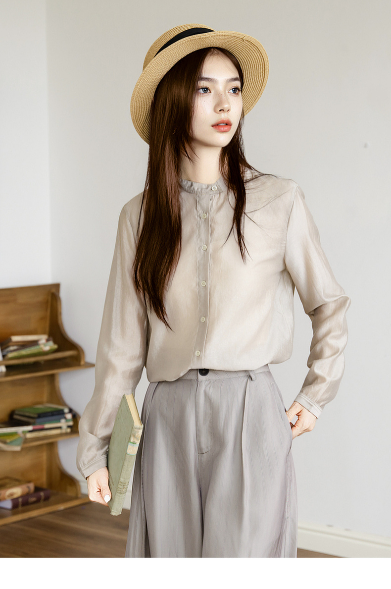 谜底天丝衬衫长袖女2025秋季新款通勤简约纯色圆领衬衣257MC7766