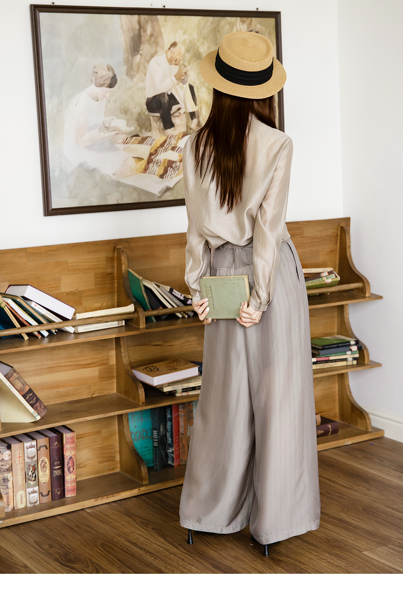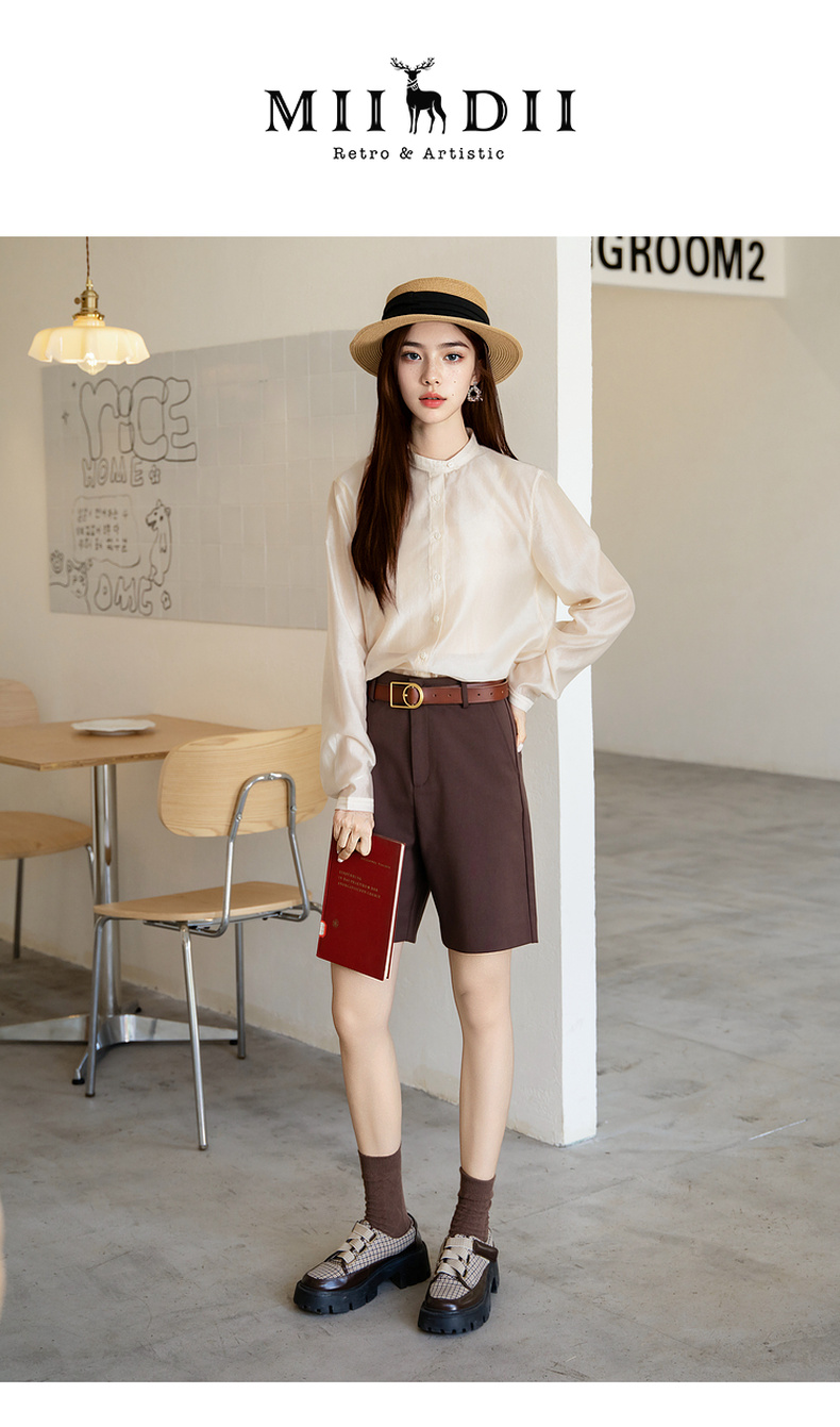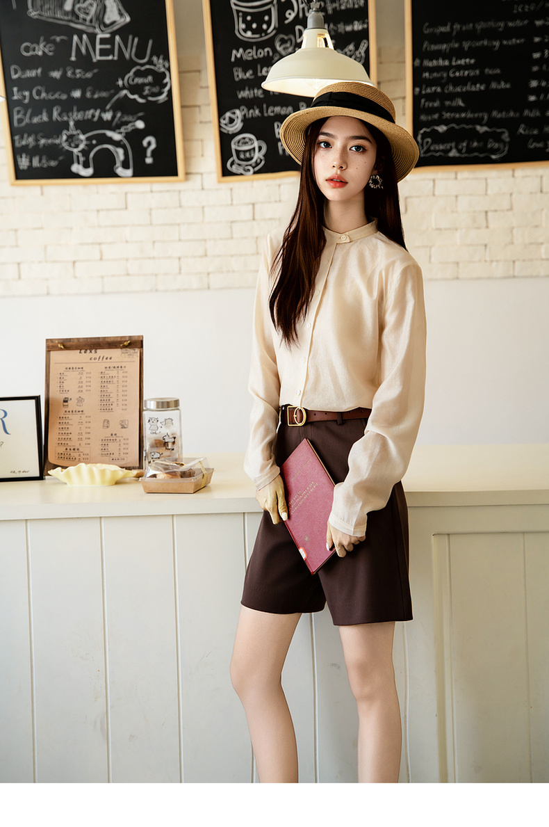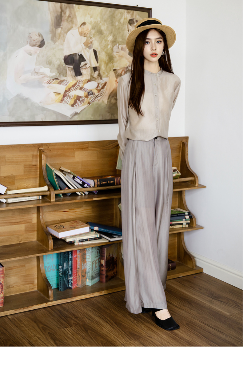 谜底天丝衬衫长袖女2025秋季新款通勤简约纯色圆领衬衣257MC7766