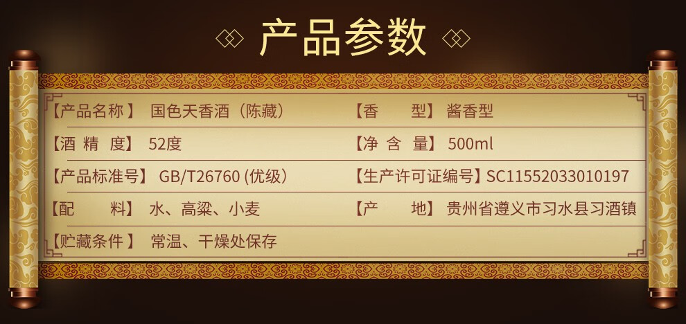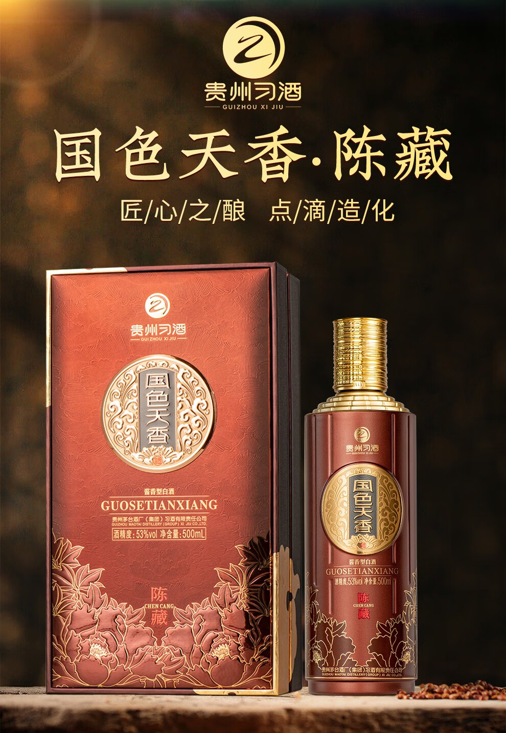 习酒 酱香型白酒53度500ml国色天香陈藏单瓶装