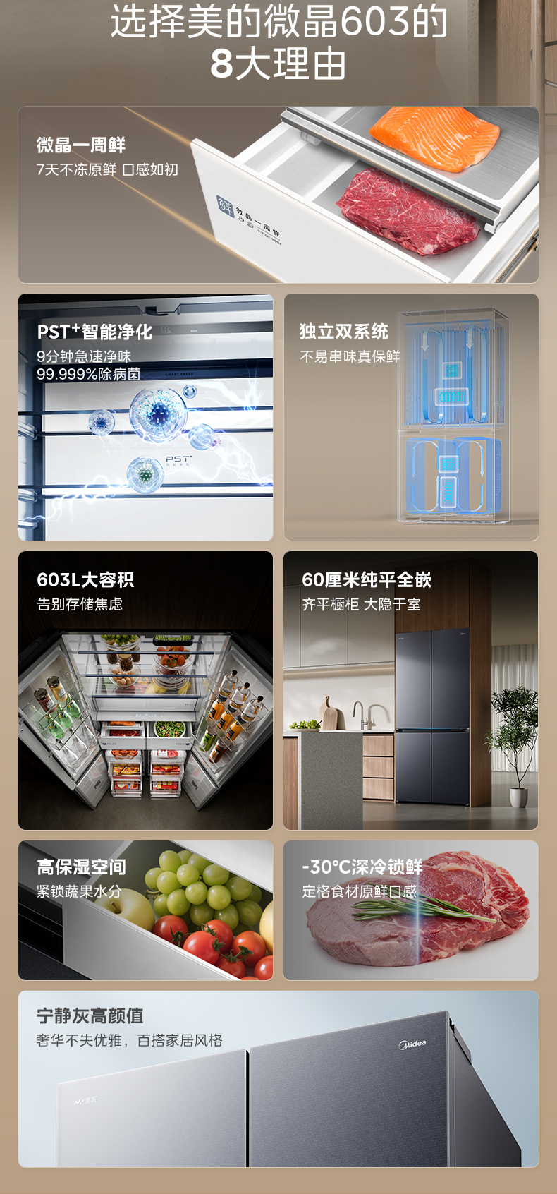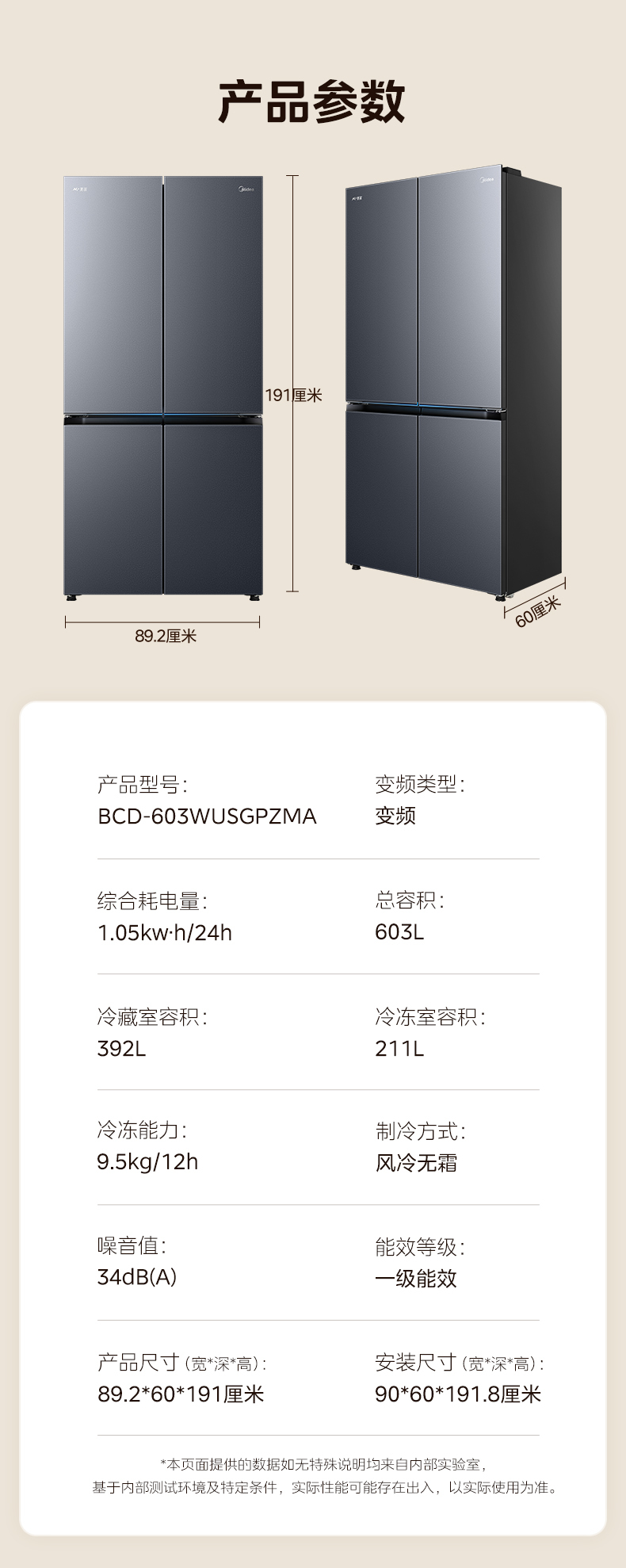 美的 冰箱 BCD-603WUSGPZMA 宁静灰
