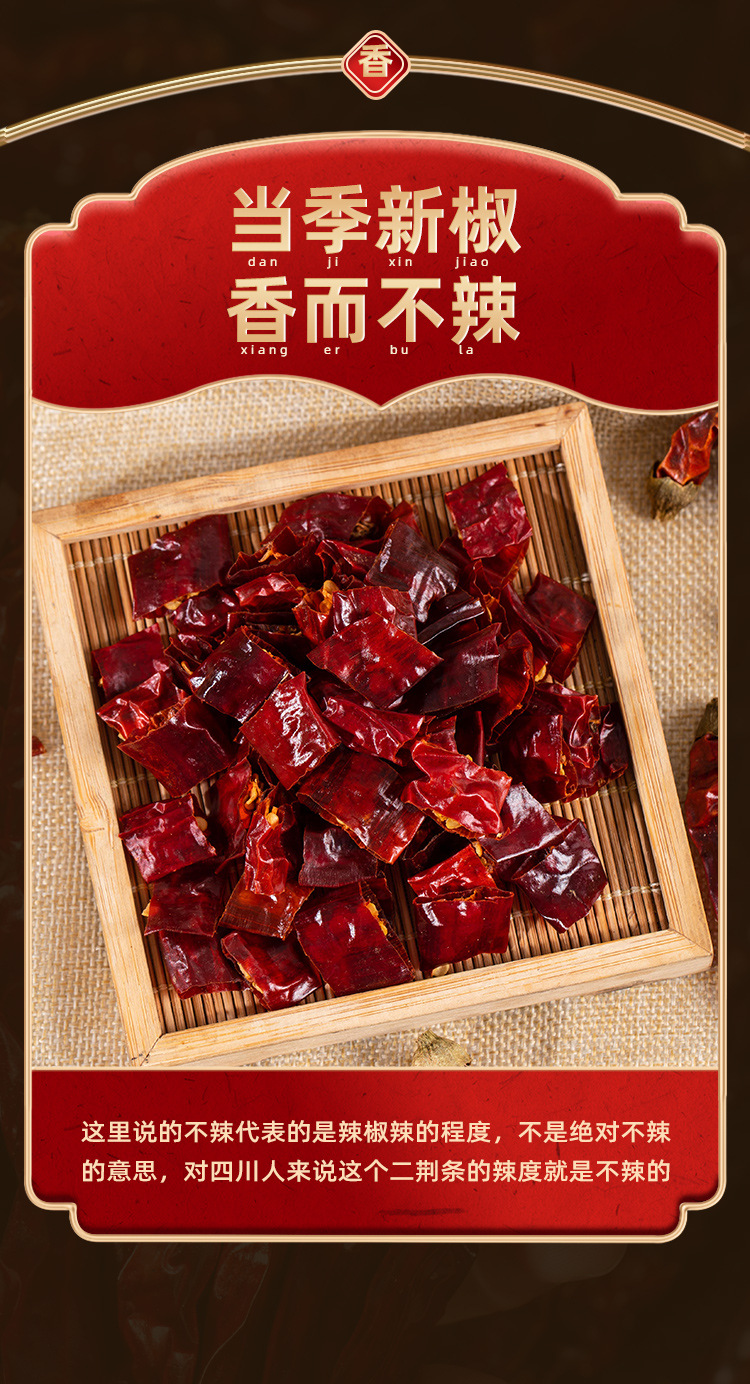正宗四川二荆条辣椒段500g商用几乎无籽微辣特香香而不辣干辣椒节