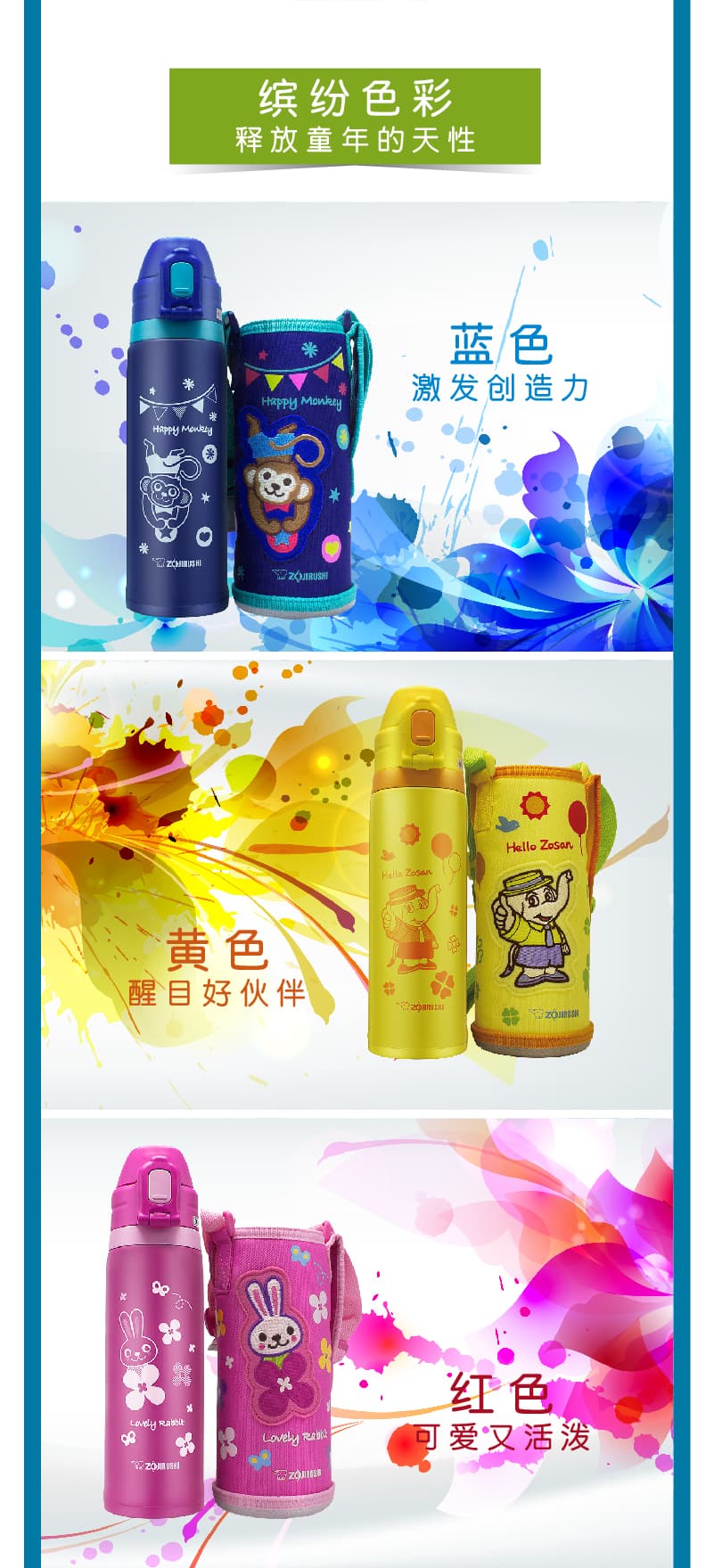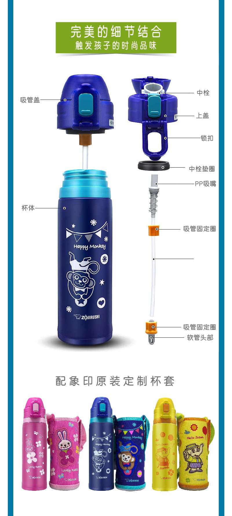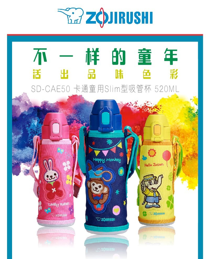 象印(ZOJIRUSHI)儿童吸管杯 不锈钢大容量保温杯 SD-CAE50 PA 粉色小兔