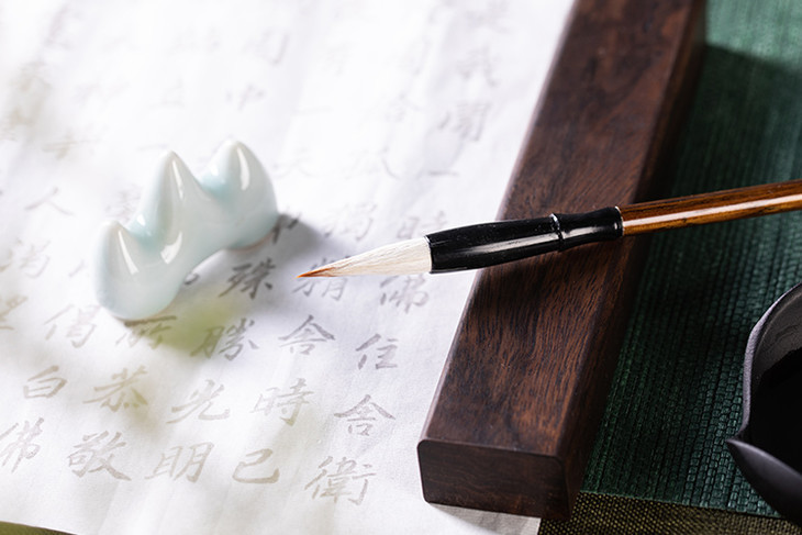 善琏湖笔以红木为笔杆,沉稳古朴,红褐色纹理流畅,更显灵动美,使毛笔整体大气雅致。