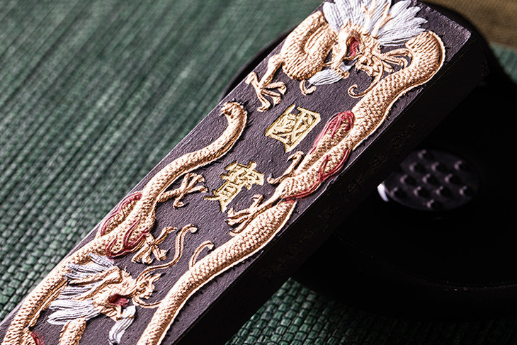 其上两条金龙相对飞腾,气势恢宏,静置案上,有帝王霸气, “国宝”二字居其中,有矜贵不凡的气息,宜用宜藏。