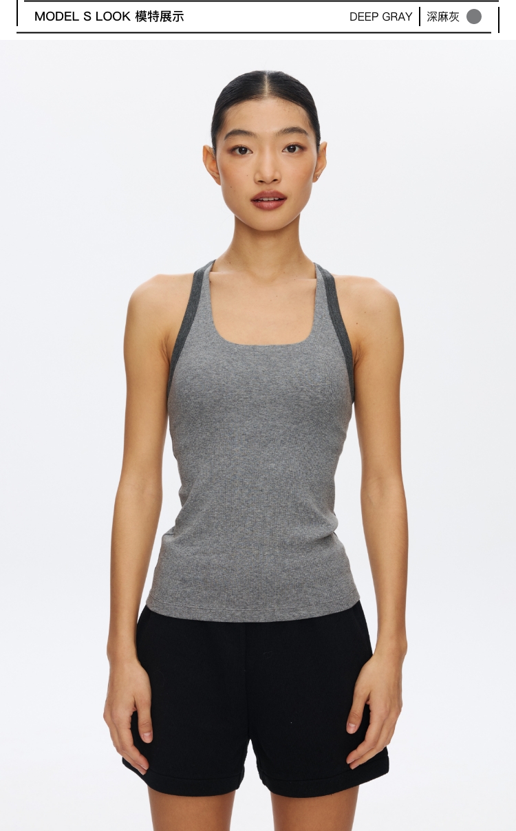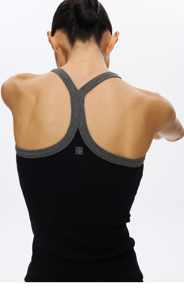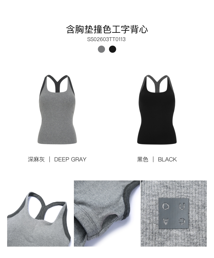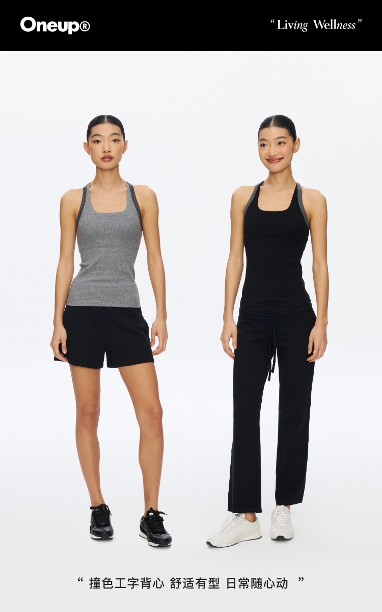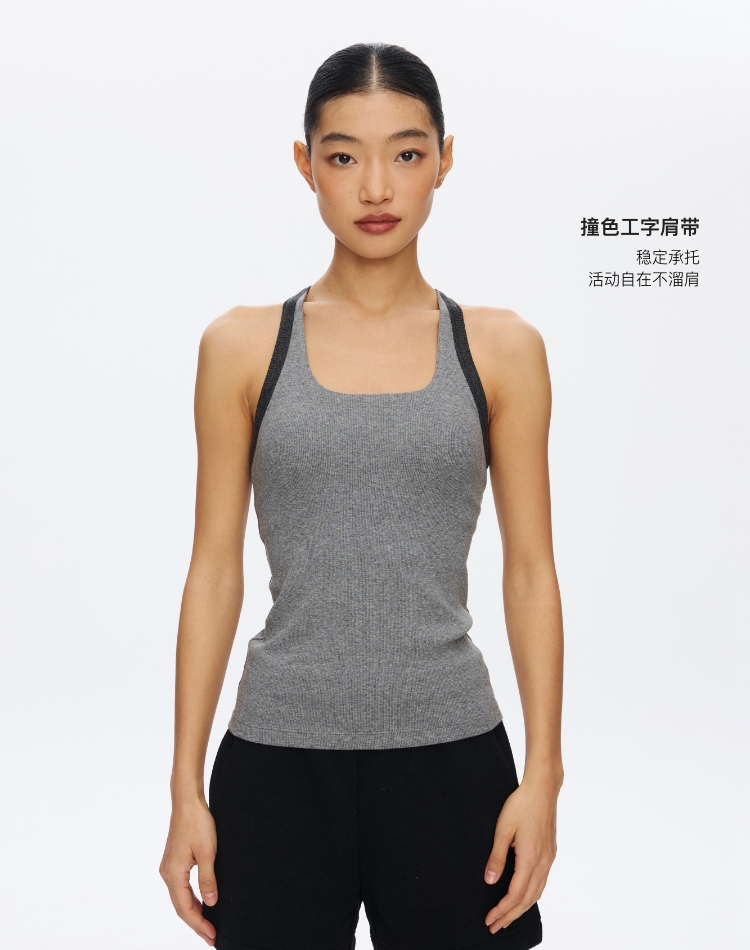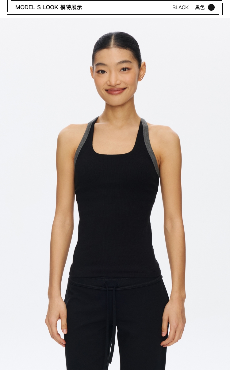 Omeup含胸垫撞色工字背心
