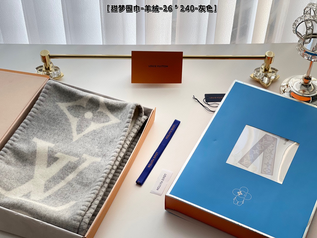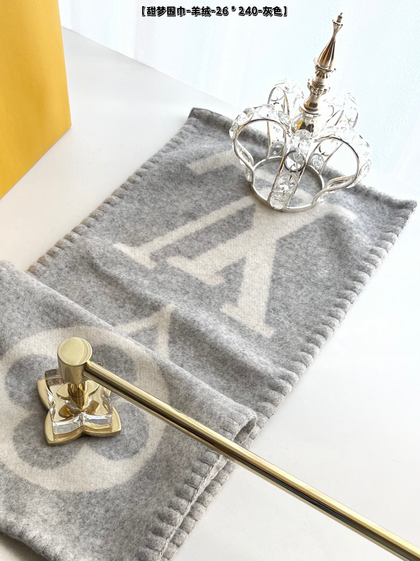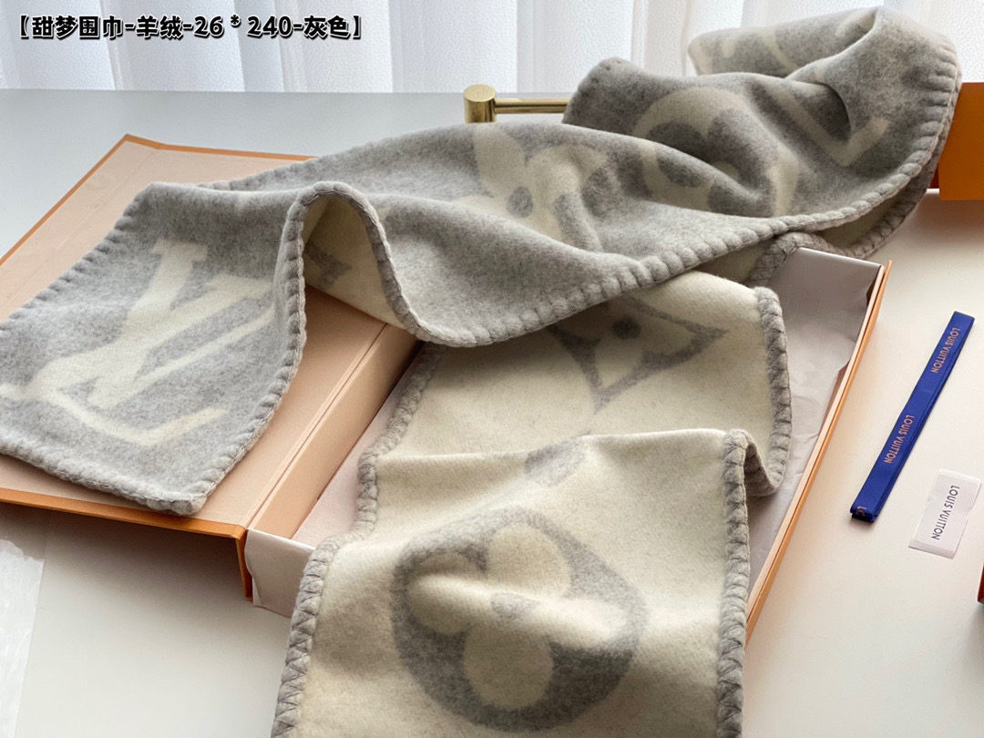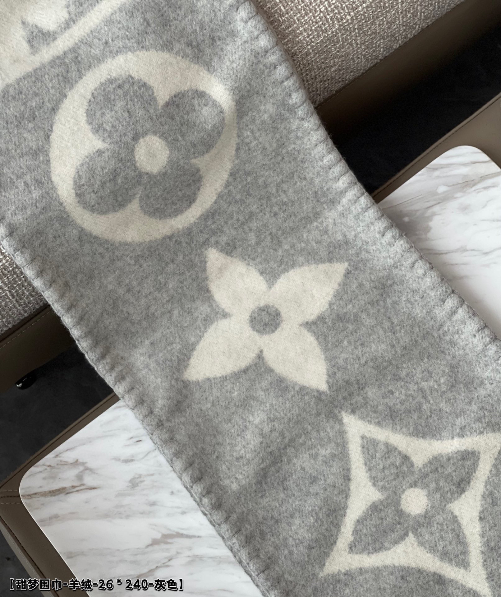 Sweet Dreams 围巾瞩目放大经典 Monogram 图案,以繁复边缘缝线增添细腻肌理。仿若毛毯的丰盈山羊绒抵御凛凛寒风。