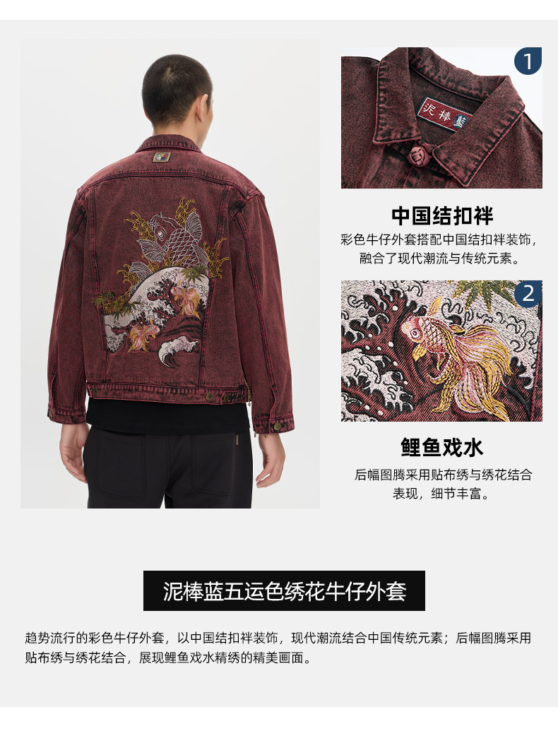ONIARAI/鬼洗25秋冬泥棒蓝五运色绣花牛仔男式休闲外套 N340234