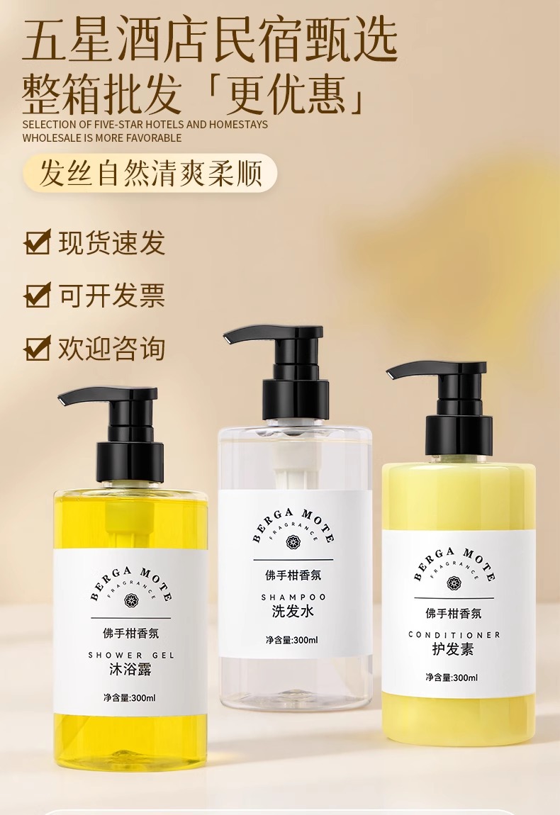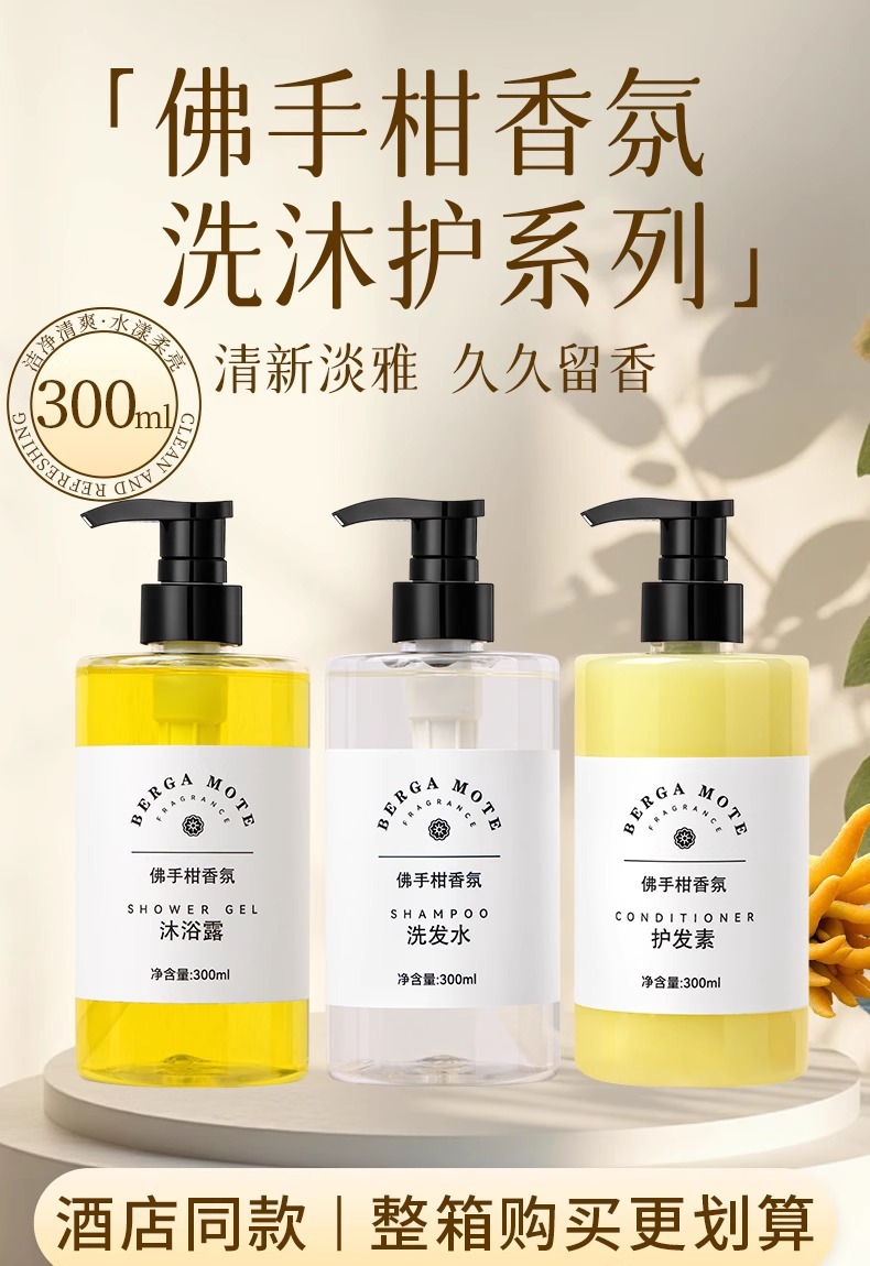 酒店洗发水沐浴露300大瓶装佛手柑香氛高档民宿浴场洗护套装宾馆