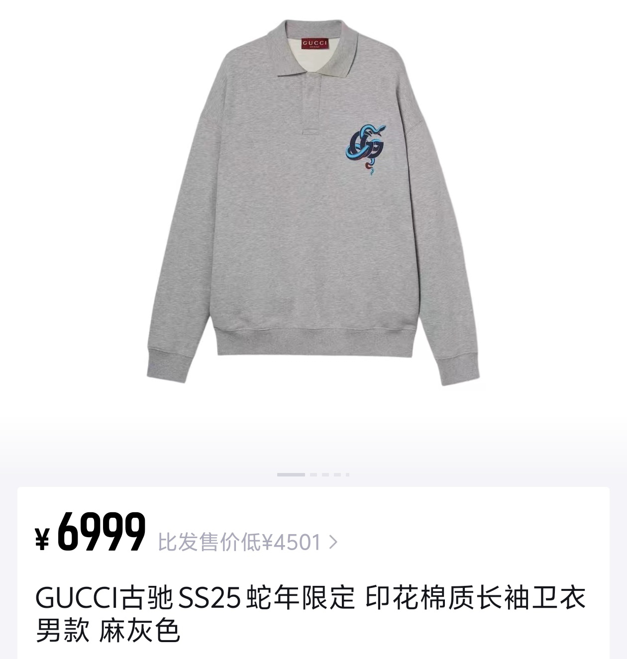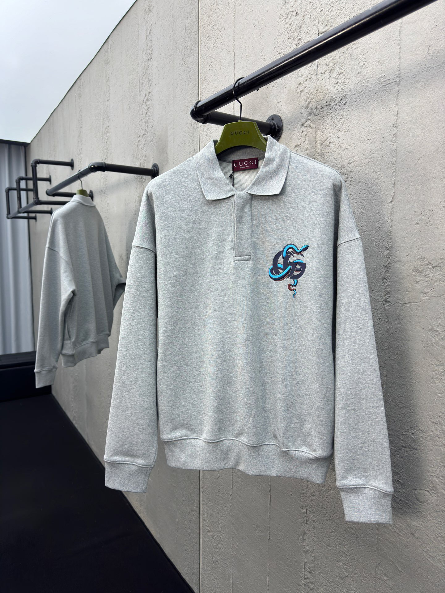 GUCCI 灰色蓝蛇POLO卫衣