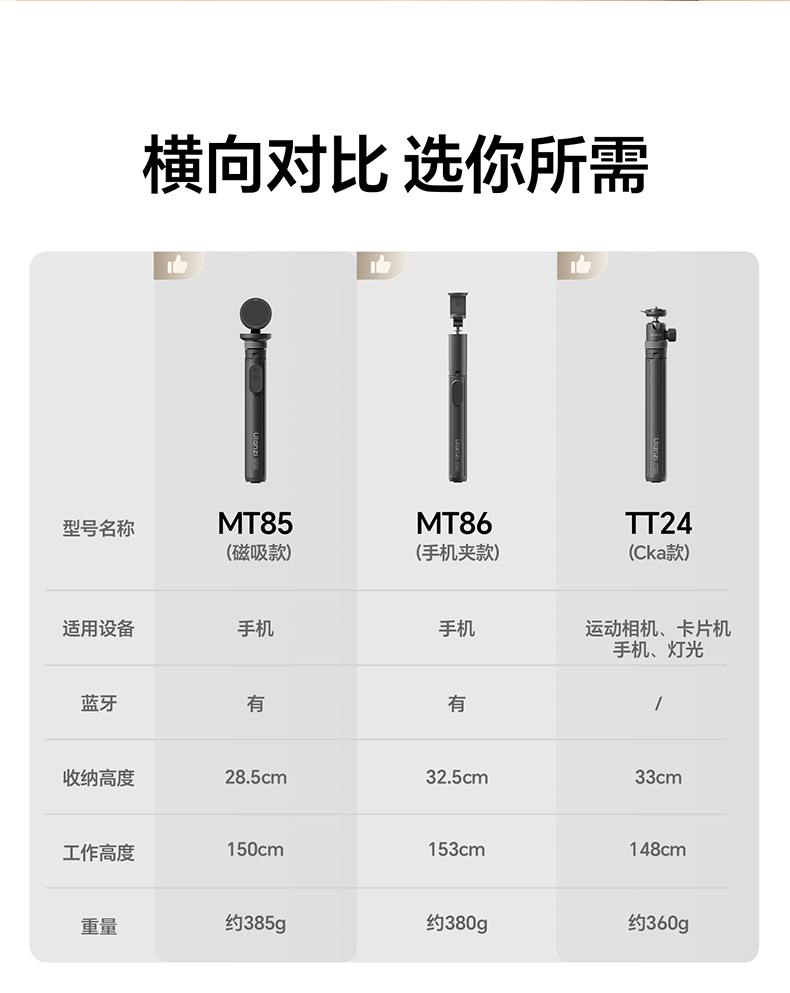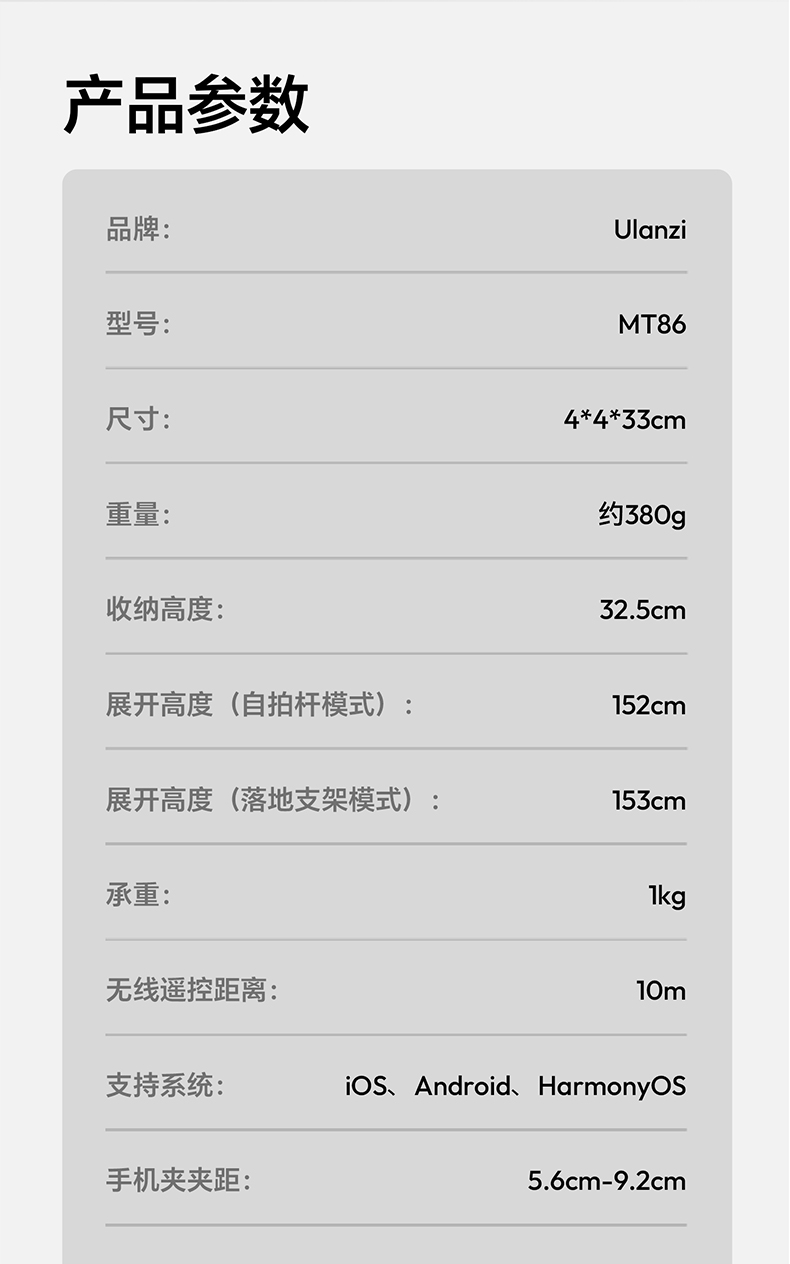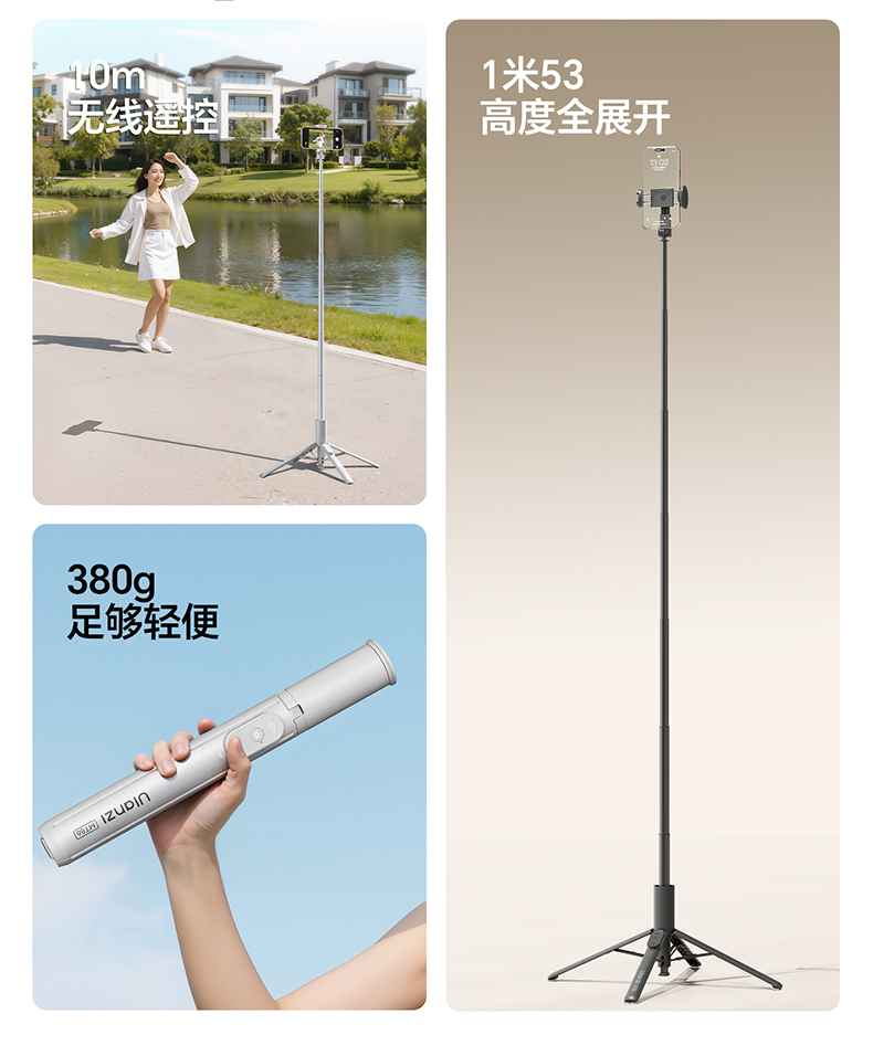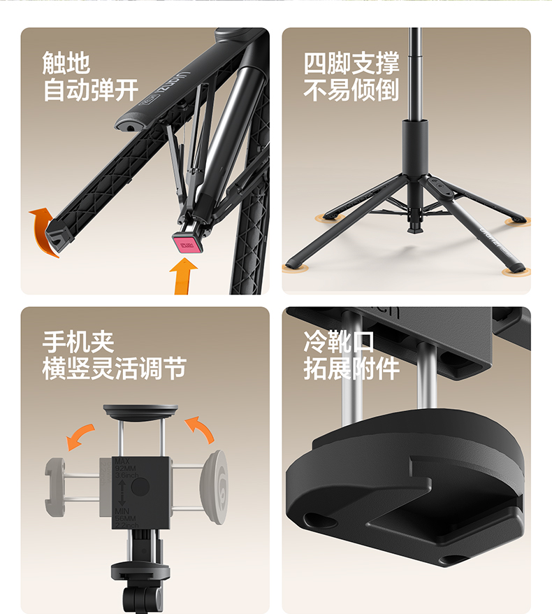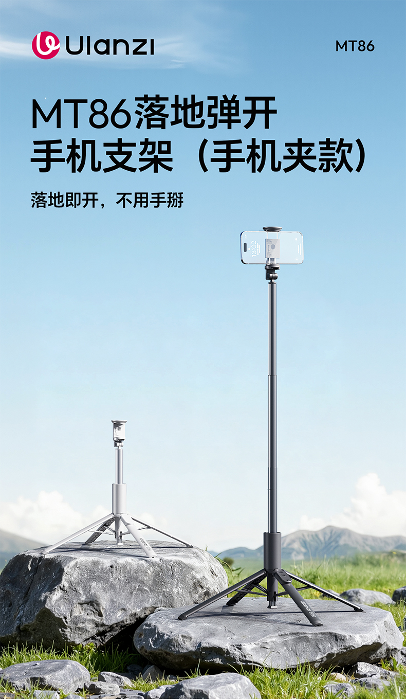 Ulanzi优篮子 MT86落地弹开手机支架自拍杆一键打开丢丢杆适用iPhone苹果17安卓户外vlog拍摄神器便携四脚架