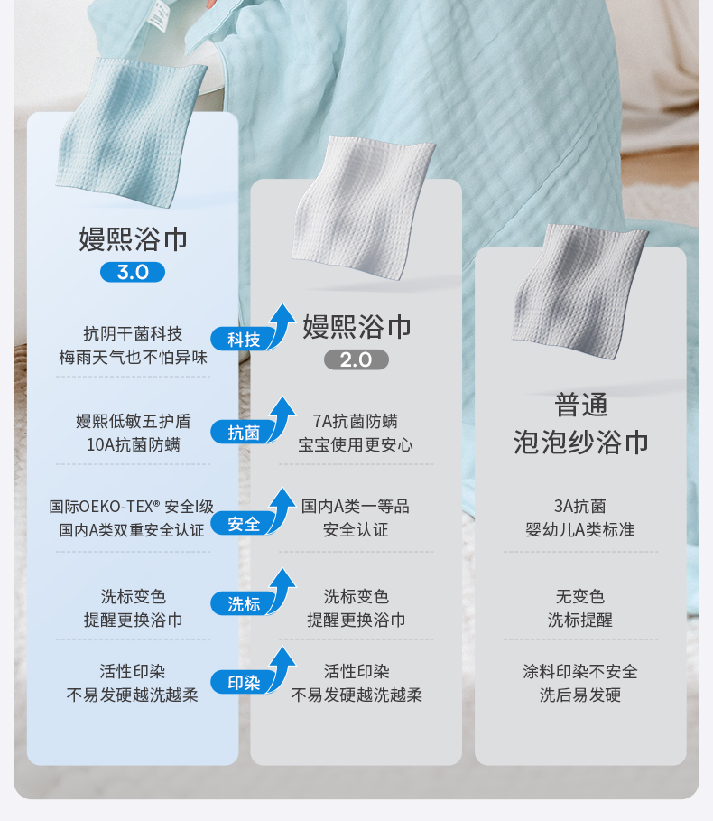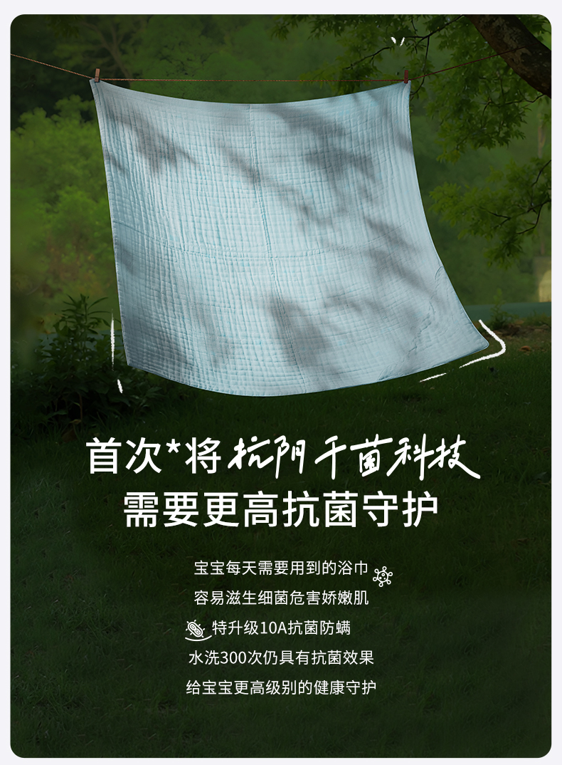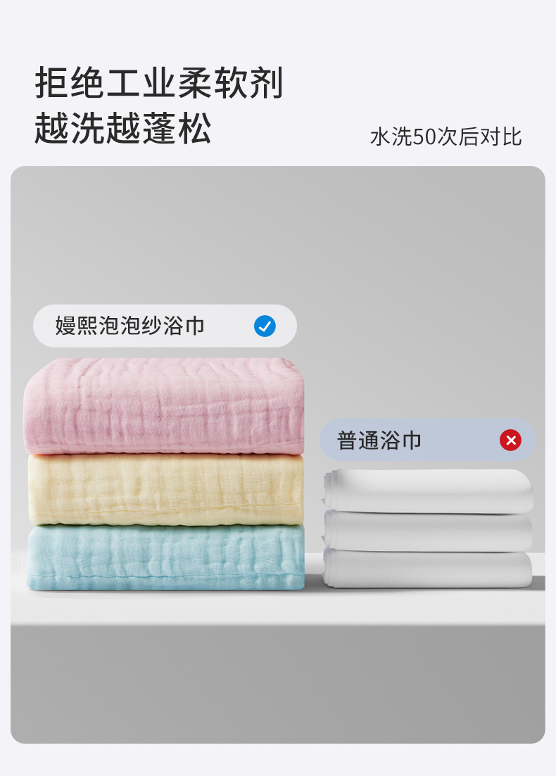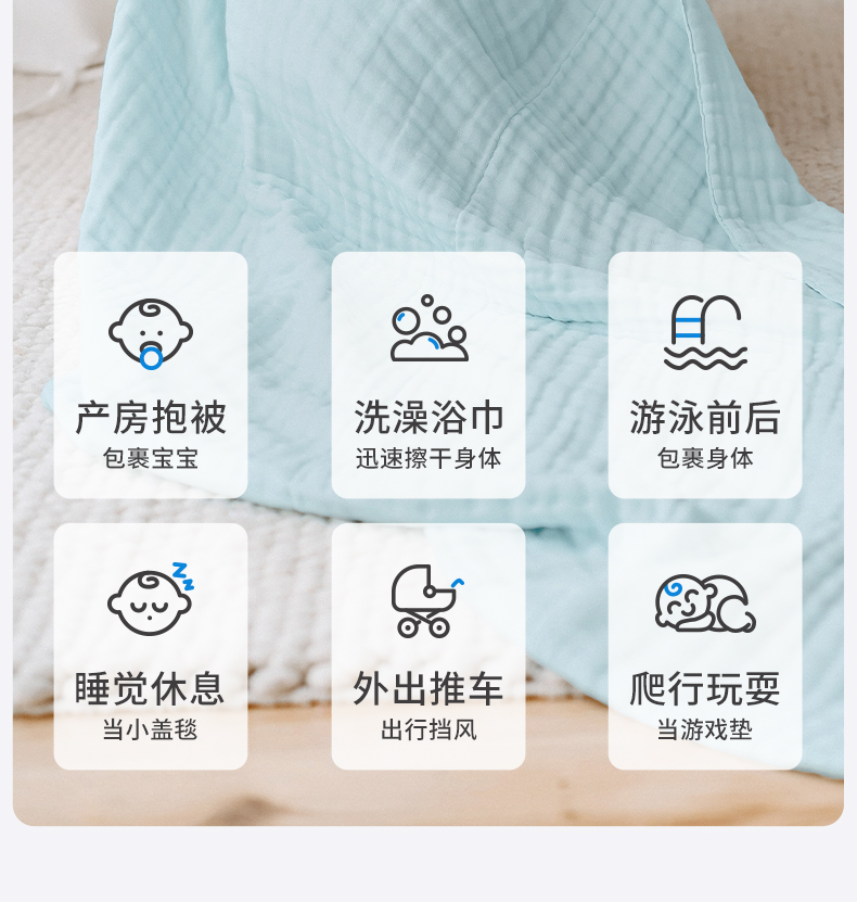 【洗浴用品】嫚熙新款婴儿纱布浴巾纯棉宝宝新生儿童浴巾抗菌洗澡包被裹巾