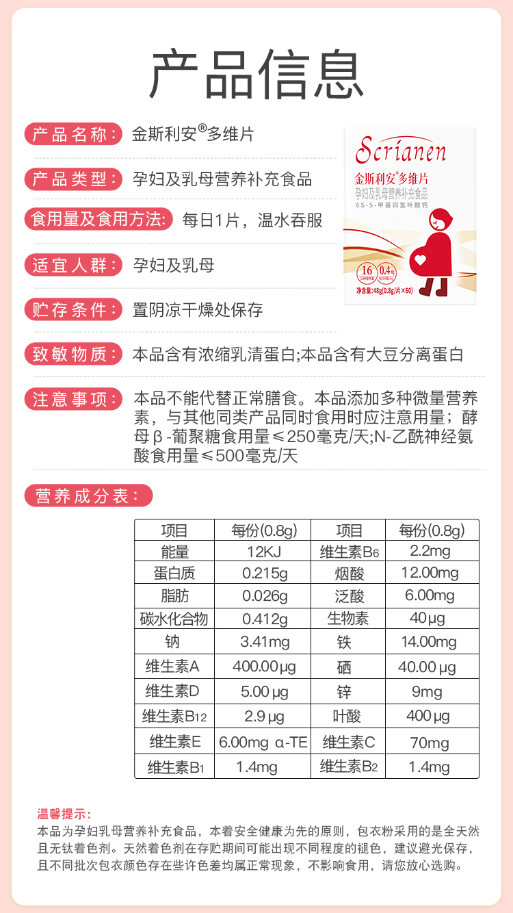 斯利安活性叶酸多维片60片