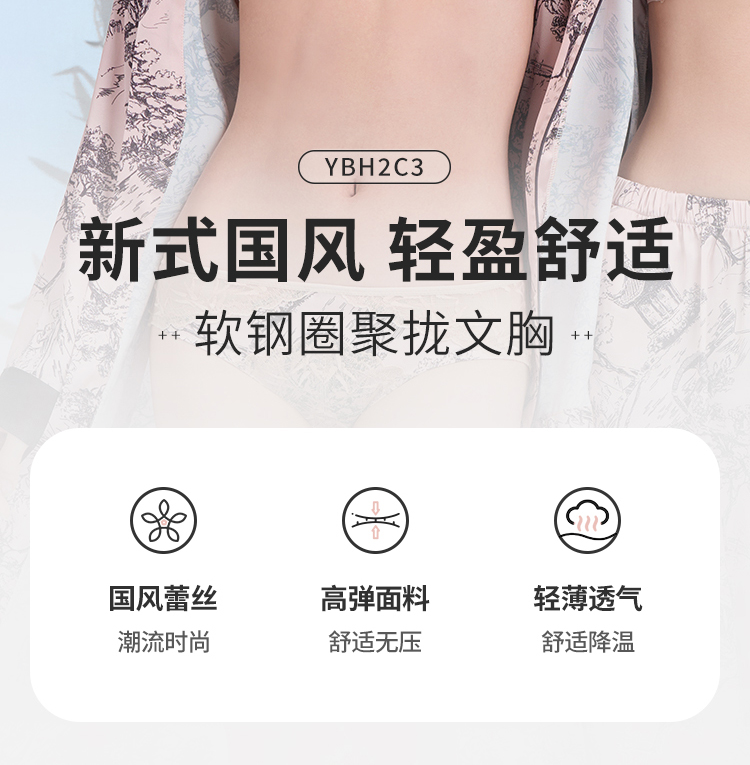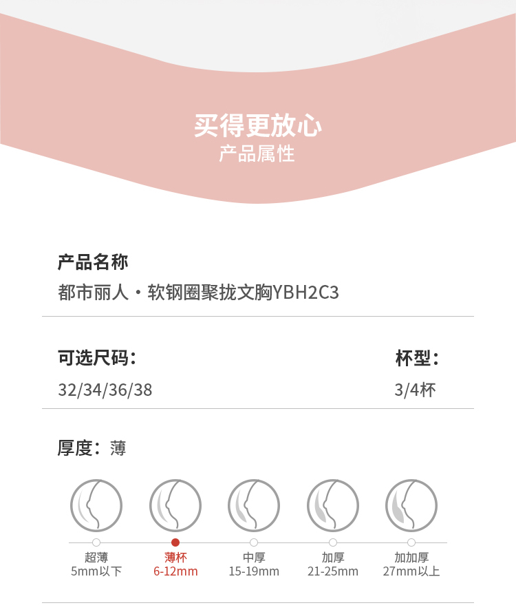 都市丽人B杯常规内衣薄蕾丝聚拢升杯软钢圈常规文胸YBH2C3