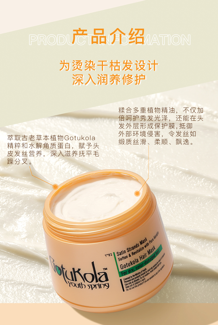 GOTUKOLA 狗头柔顺亮彩角蛋白发膜(橙罐) 章小蕙推荐 500ml