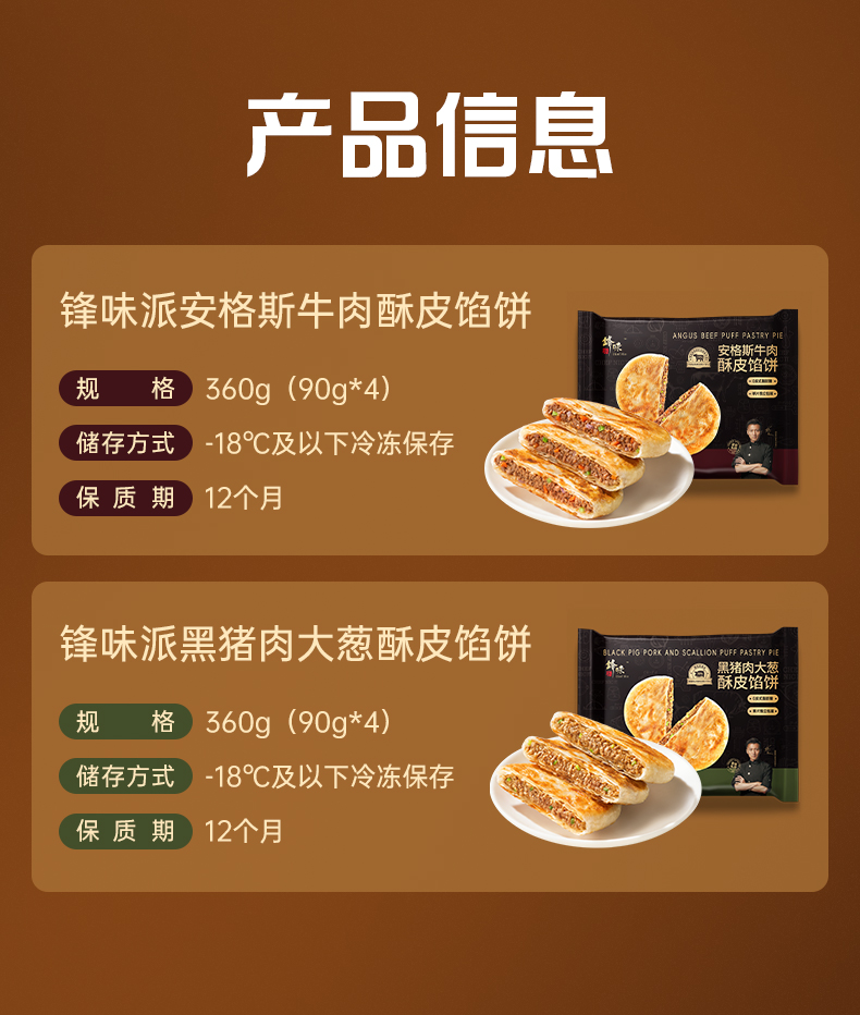 【99元任选3件】锋味派安格斯牛肉味/黑猪肉大葱味酥皮馅饼 360g*1袋【单拍不发货】【龙菲精选】