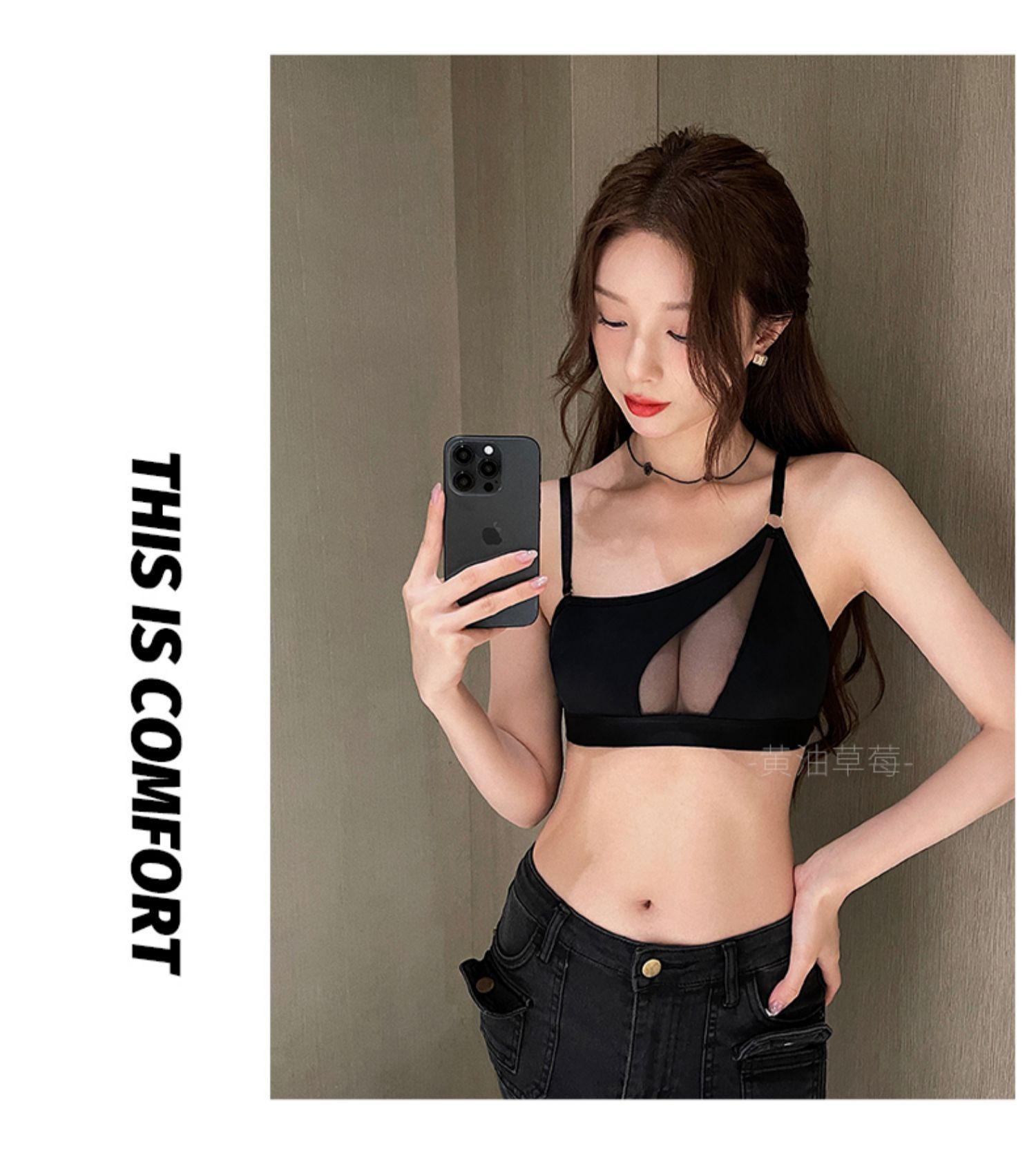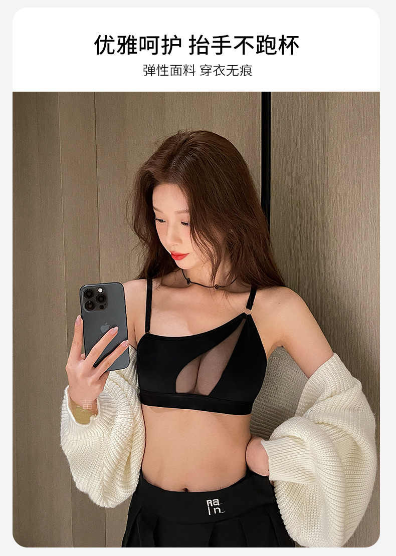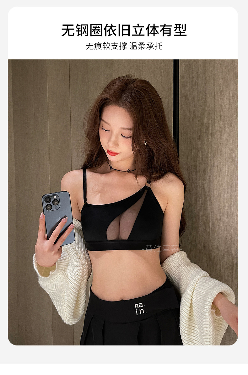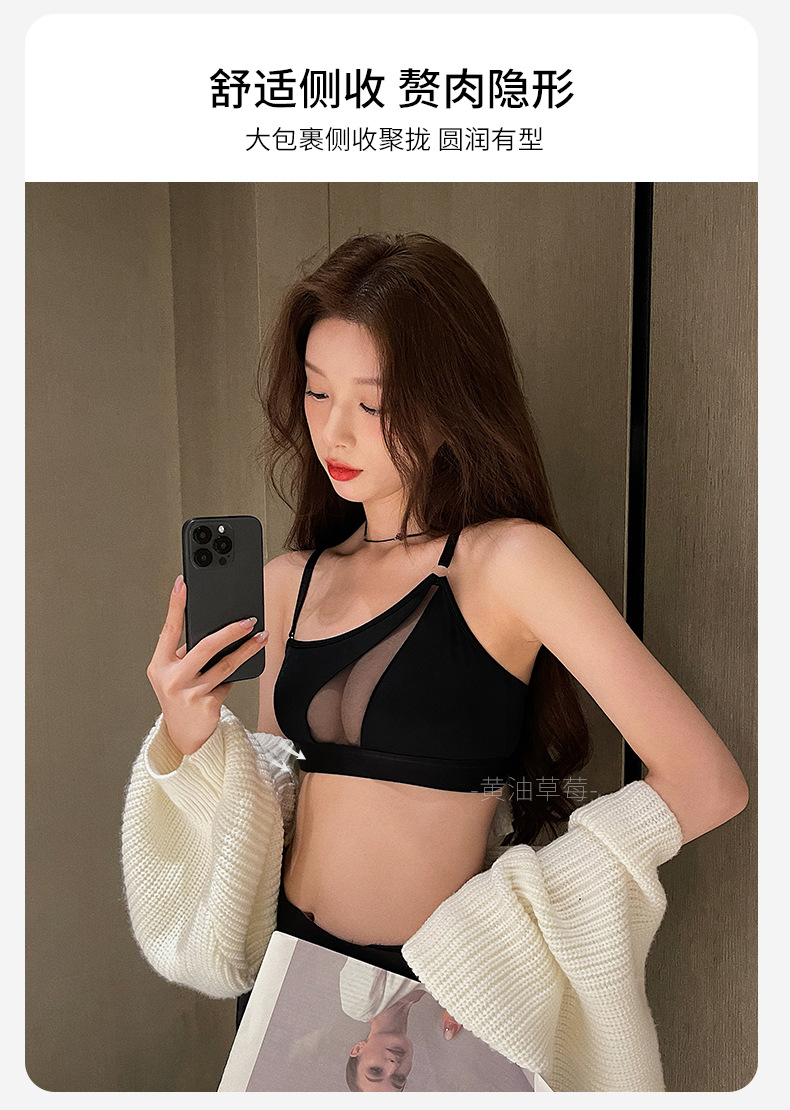 性感镂空内衣无海绵超薄款内衣女大胸显小无钢圈承托防下垂收副乳抹胸性感文胸