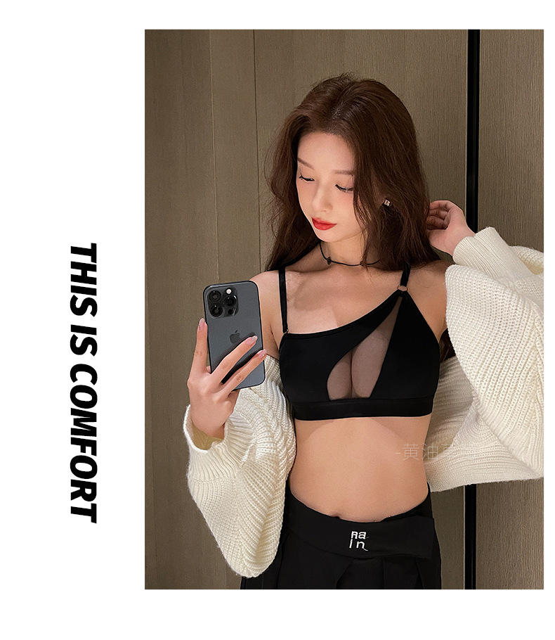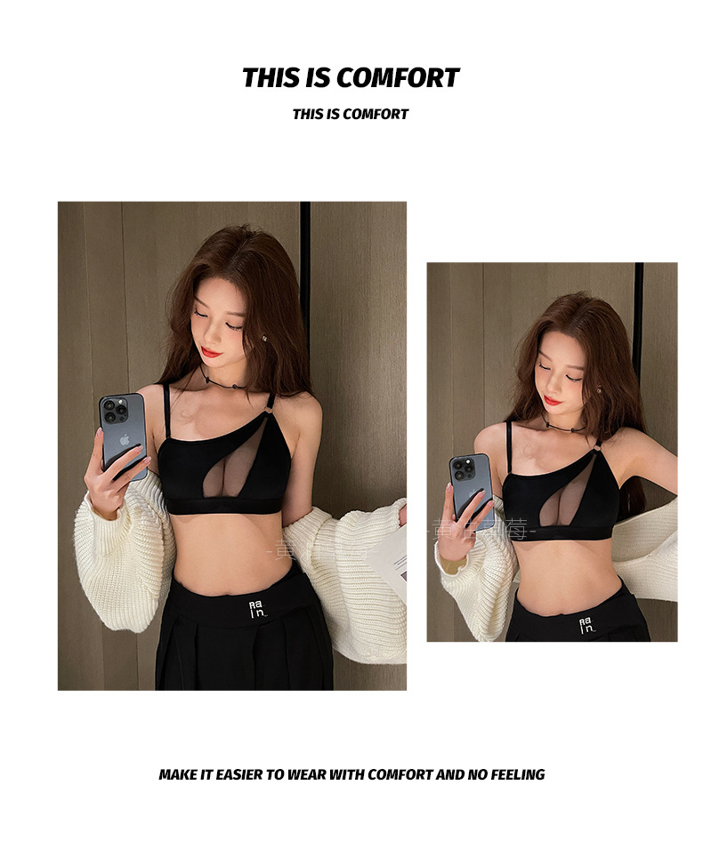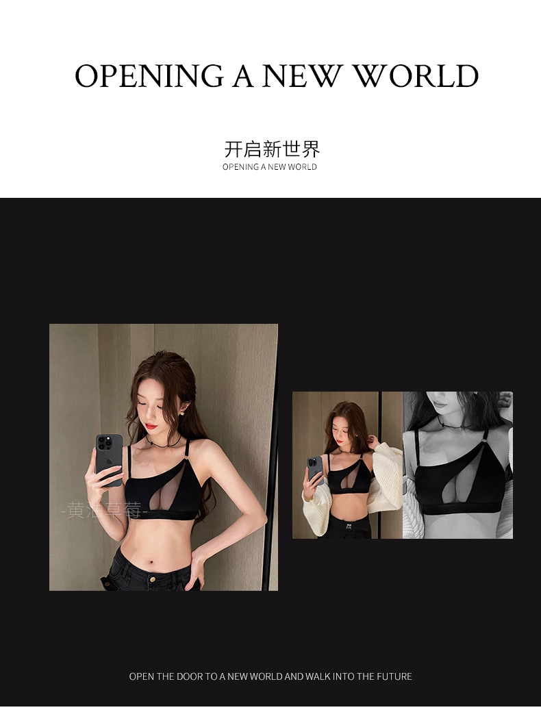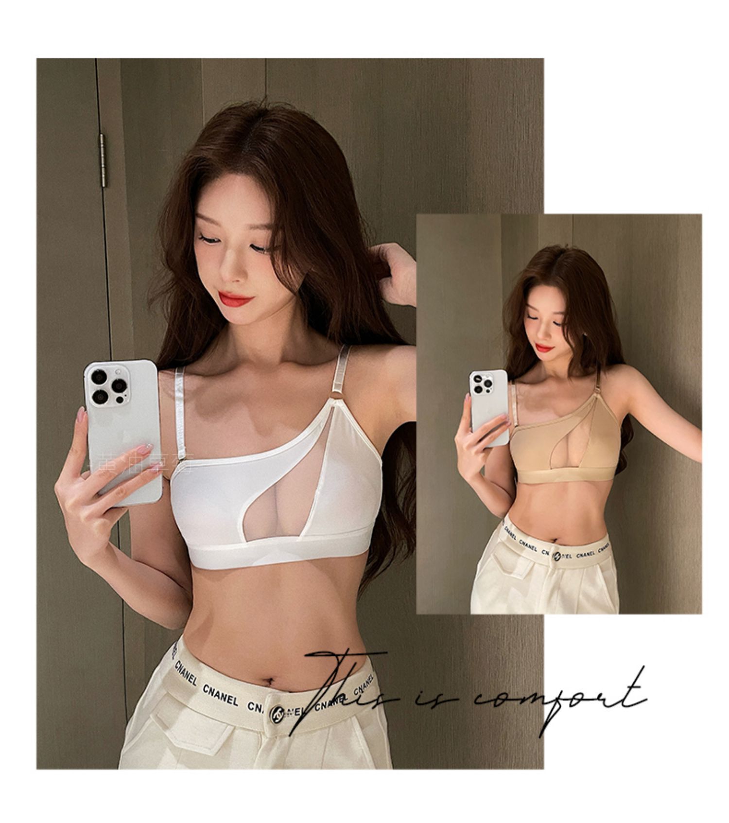 性感镂空内衣无海绵超薄款内衣女大胸显小无钢圈承托防下垂收副乳抹胸性感文胸