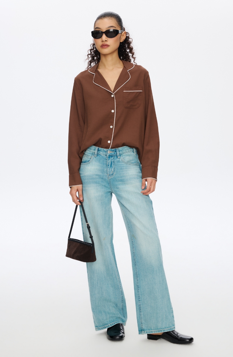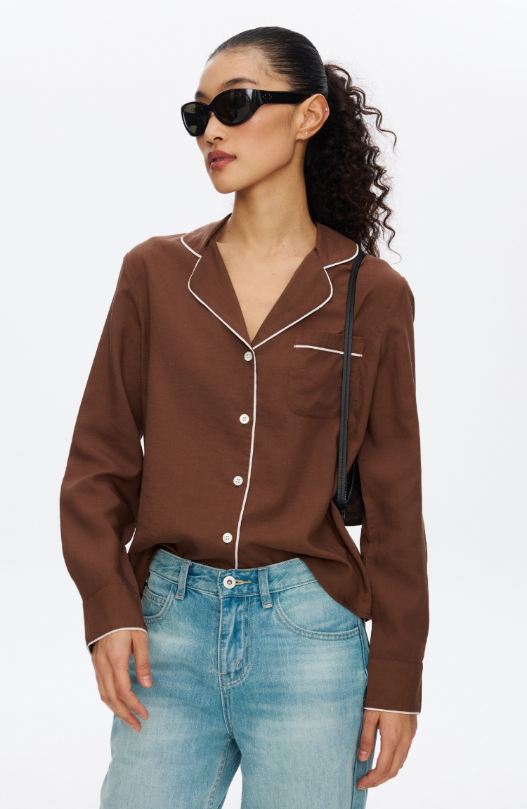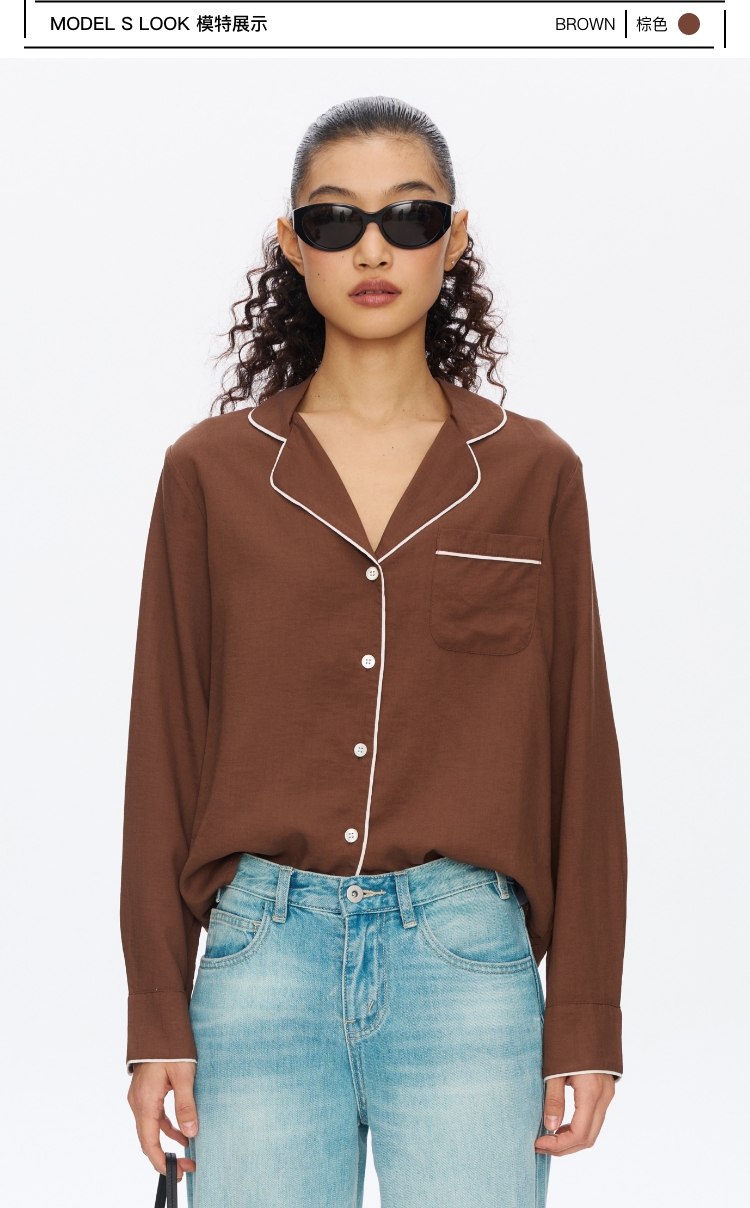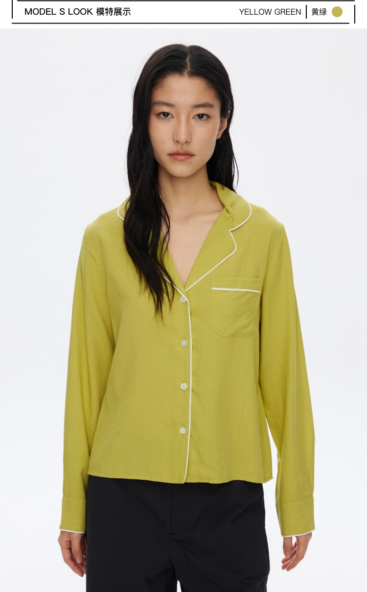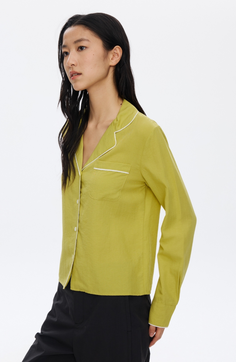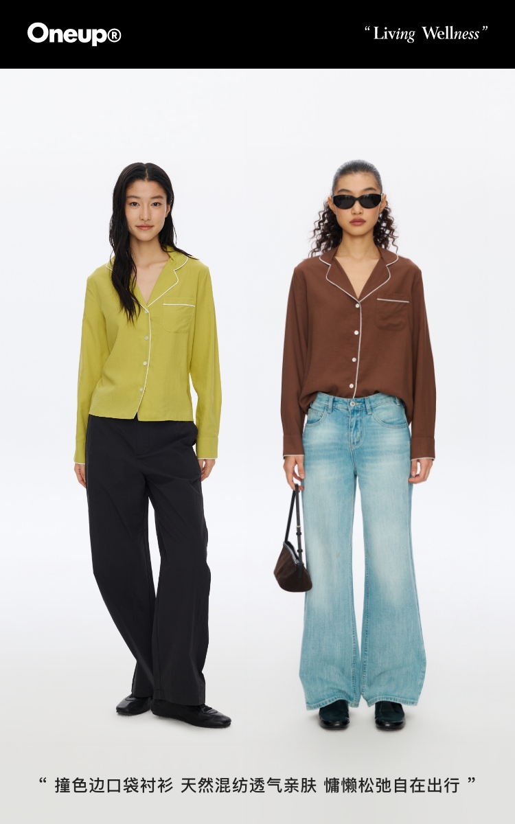 Oneup撞色边口袋衬衫