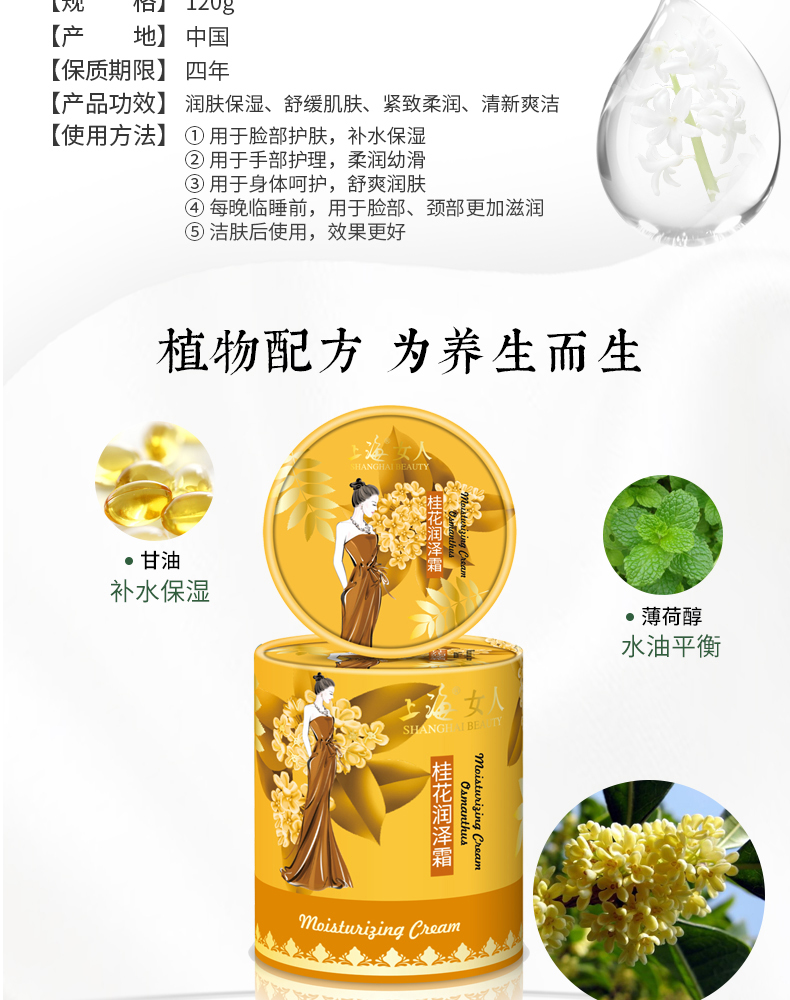上海女人桂花润泽霜120g