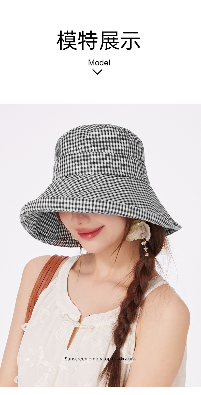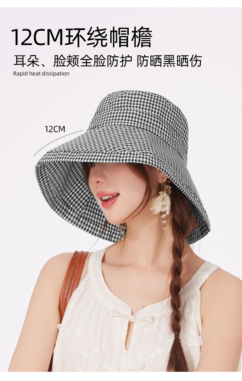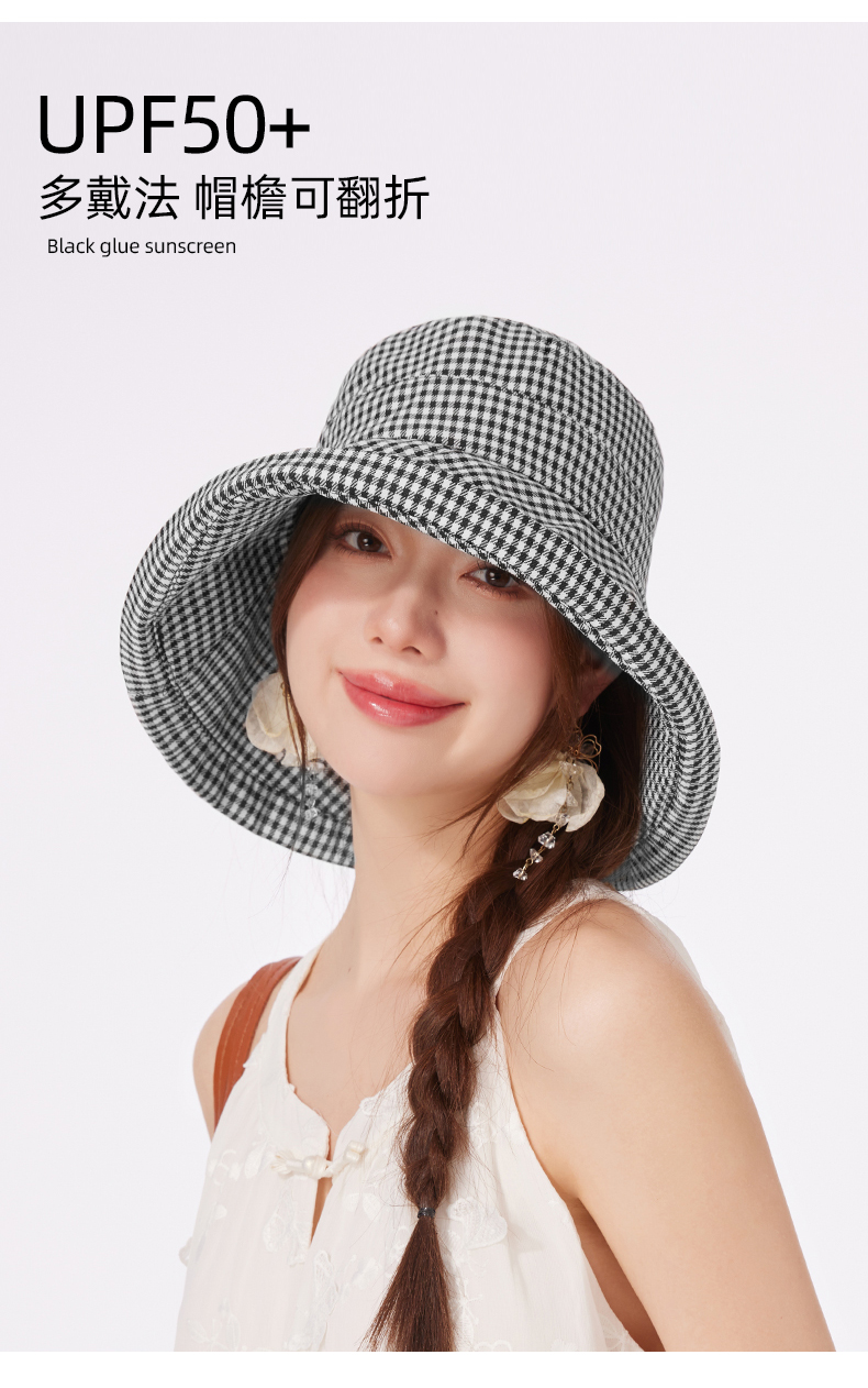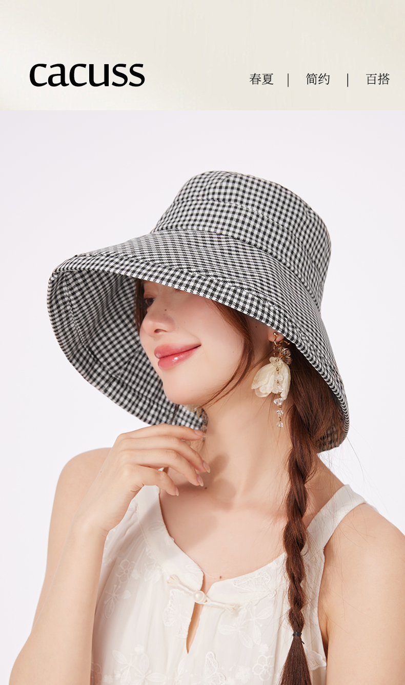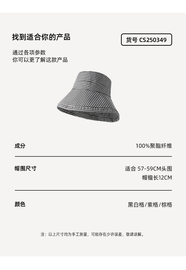 【CACUSS防晒】千鸟格明星同款渔夫帽 UPF50+ 大帽檐防晒帽 柔软舒适透气 可折叠收纳 户外遮阳帽