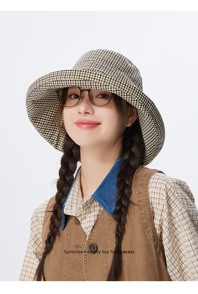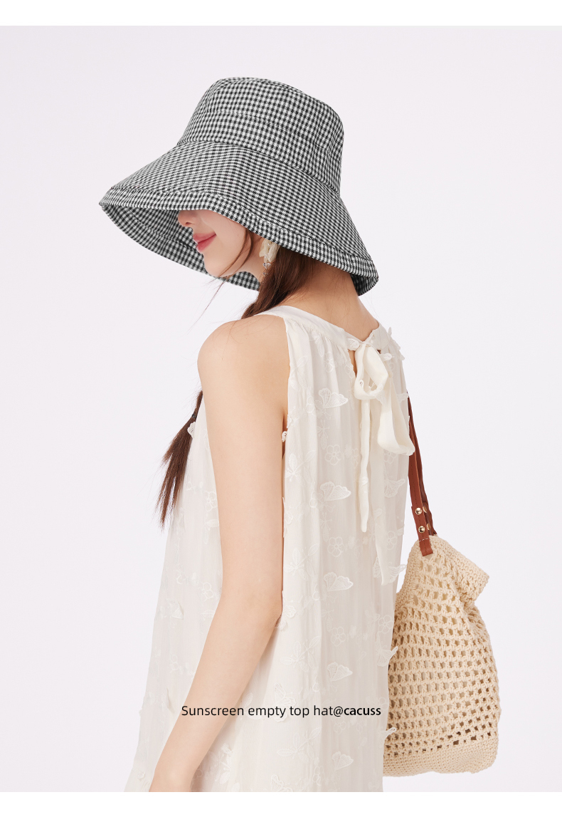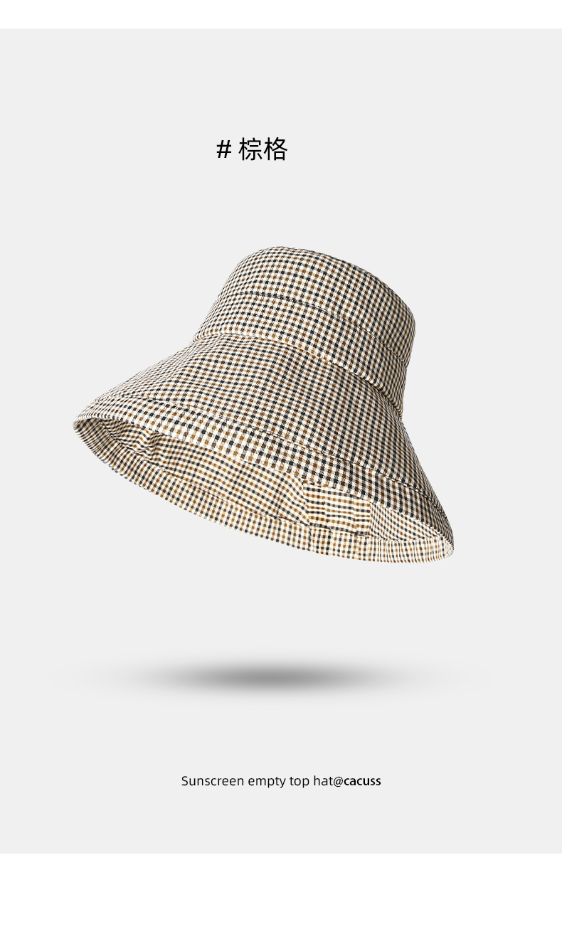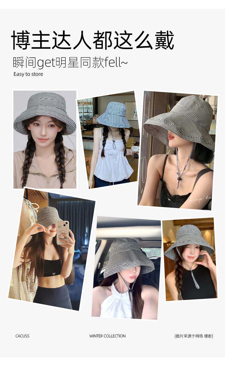 【CACUSS防晒】千鸟格明星同款渔夫帽 UPF50+ 大帽檐防晒帽 柔软舒适透气 可折叠收纳 户外遮阳帽