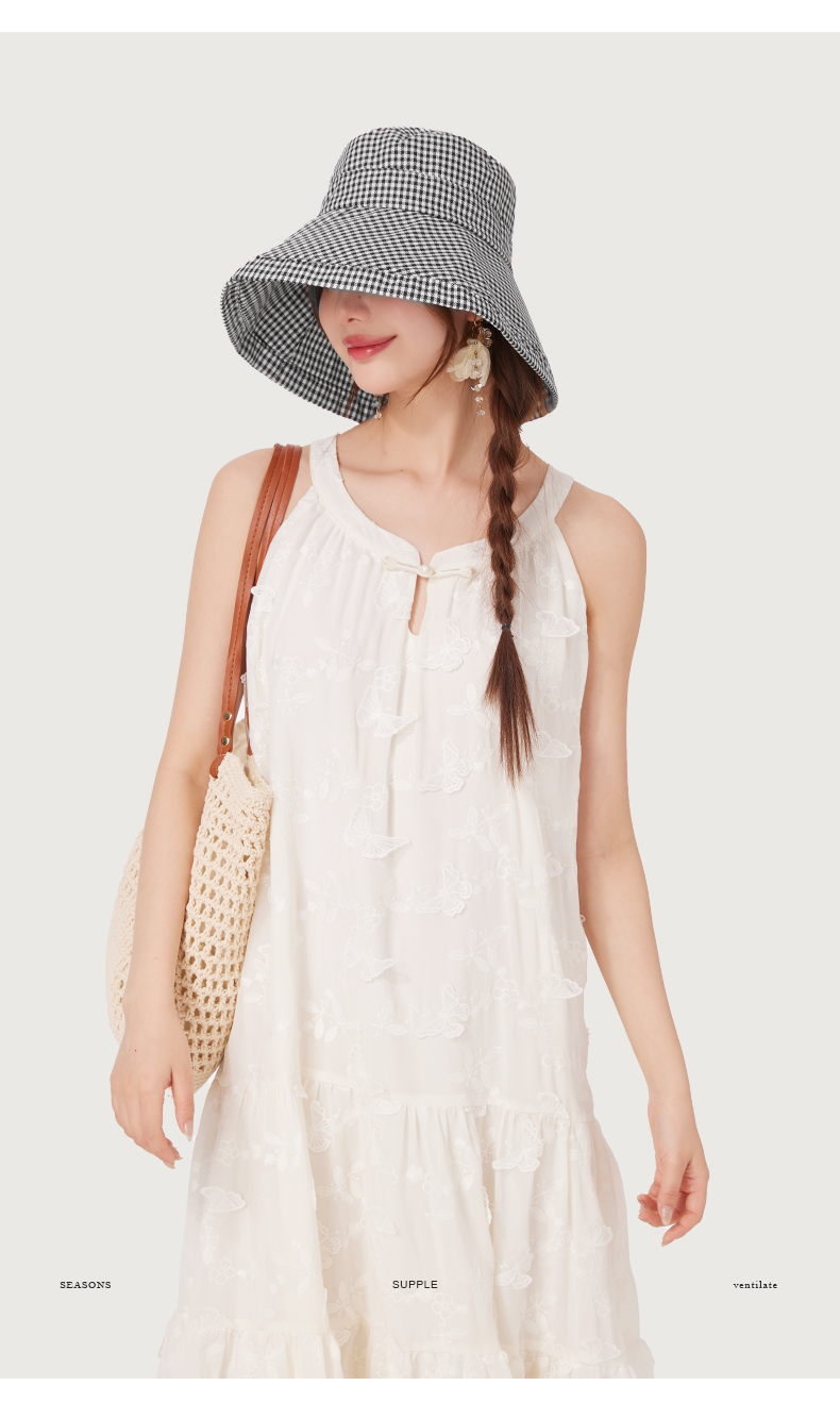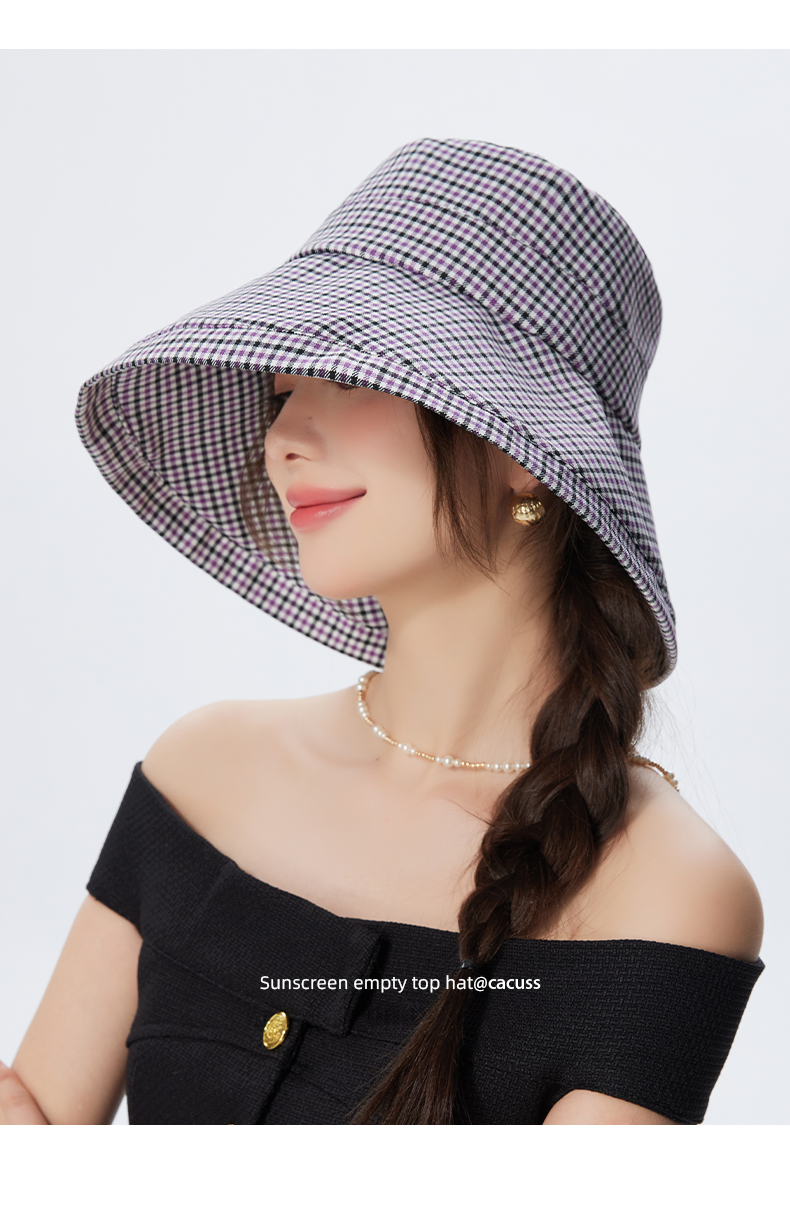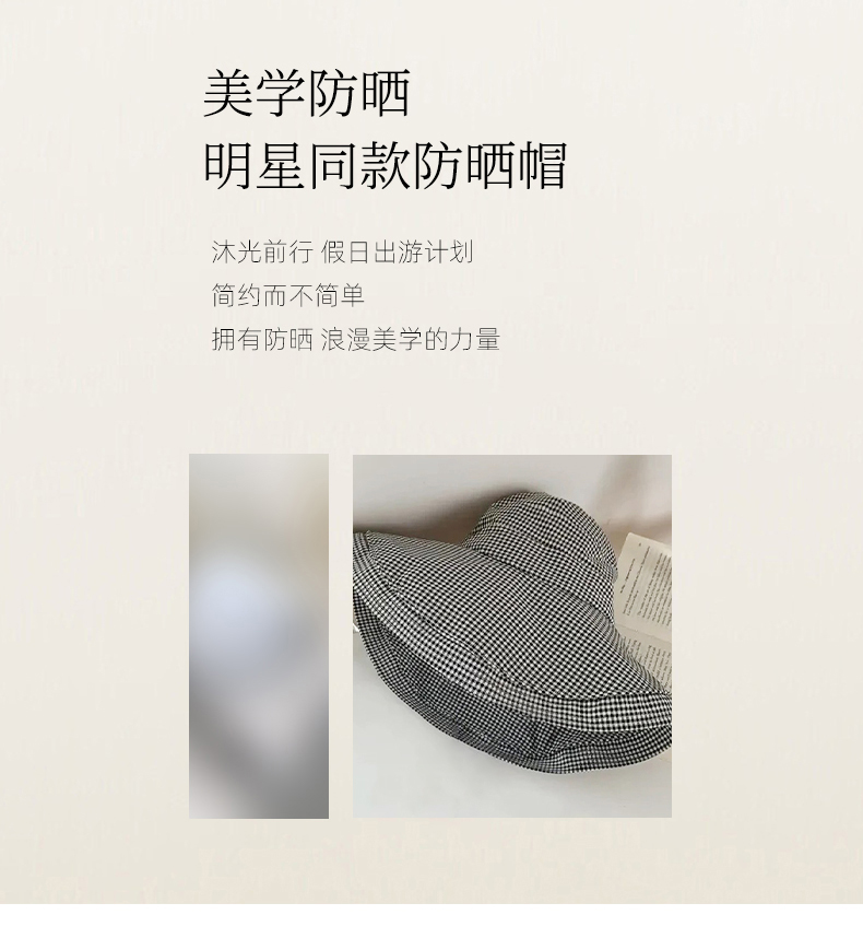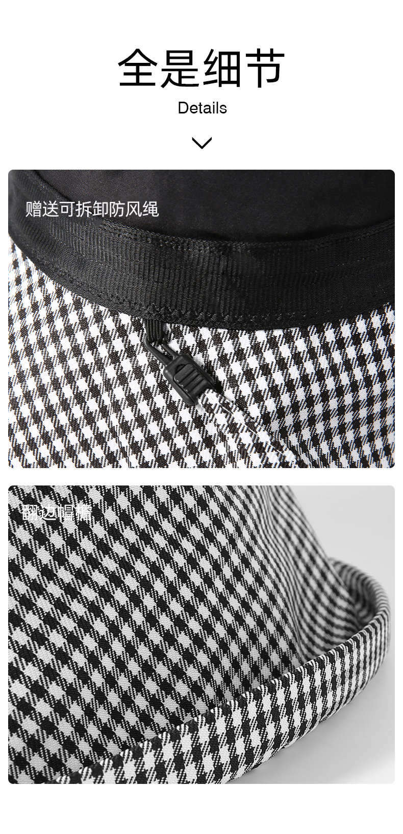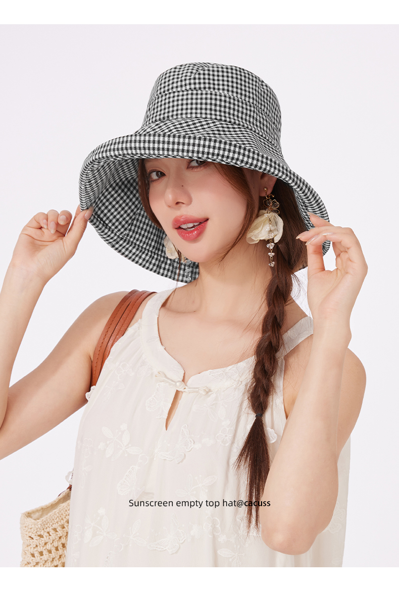 【CACUSS防晒】千鸟格明星同款渔夫帽 UPF50+ 大帽檐防晒帽 柔软舒适透气 可折叠收纳 户外遮阳帽