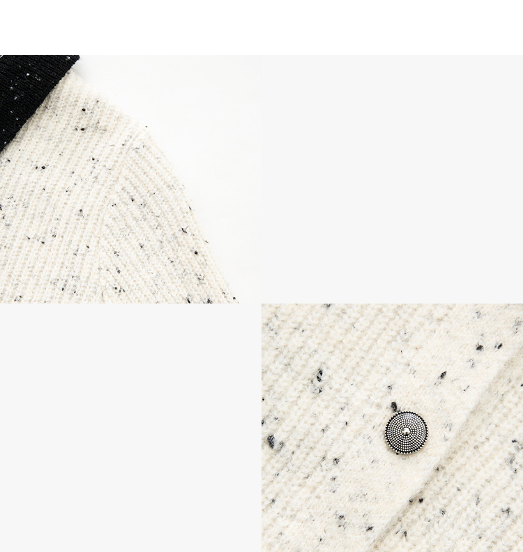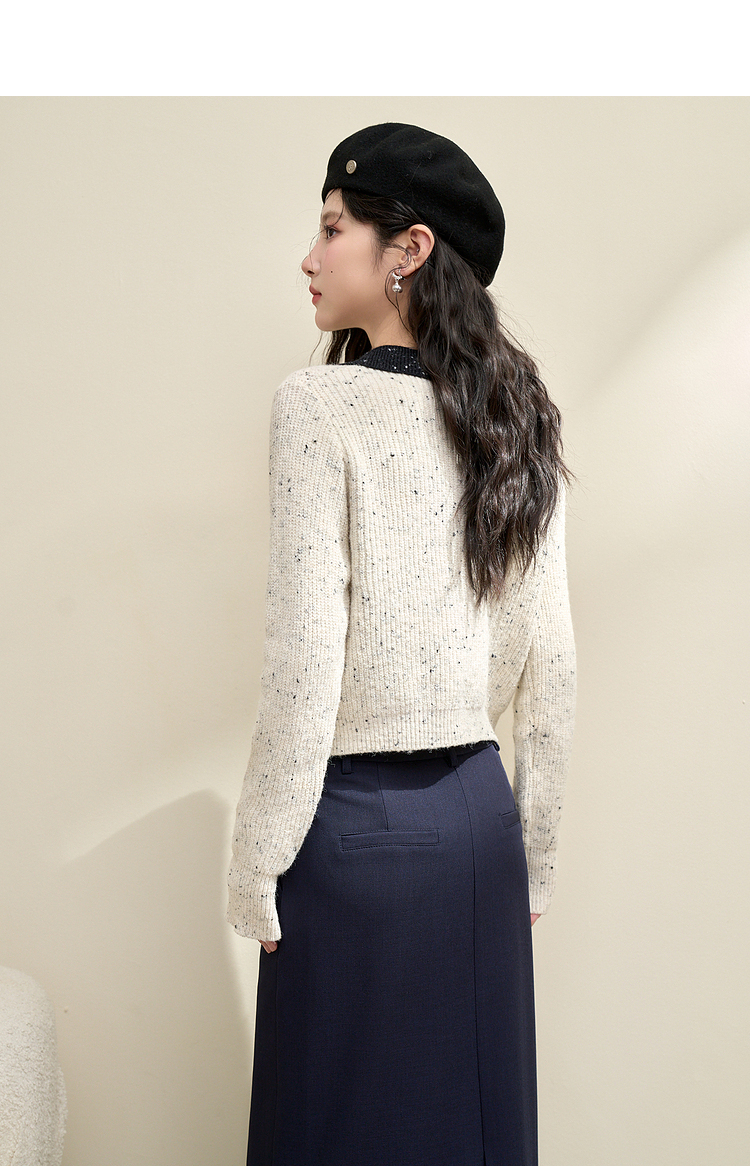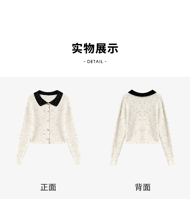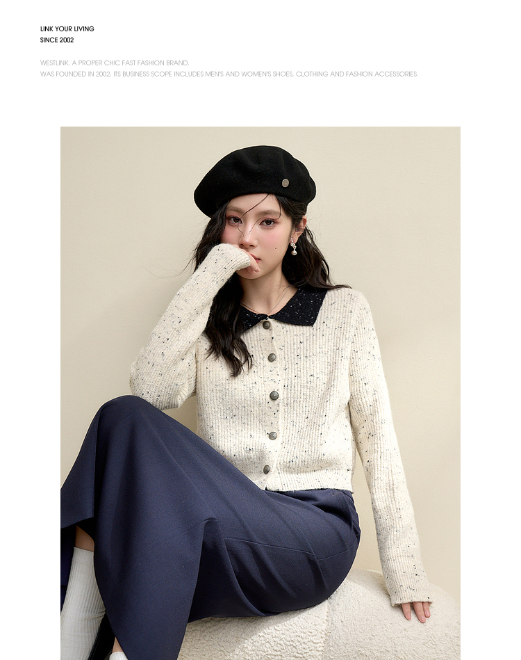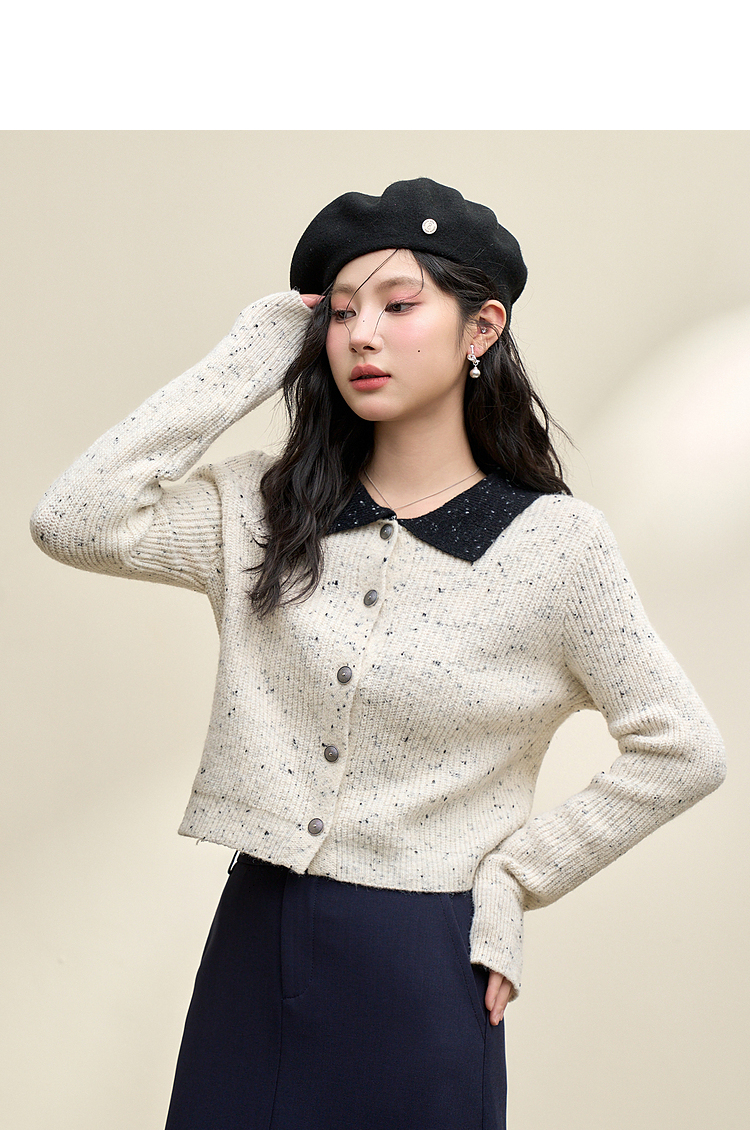 西遇针织开衫秋季新款法式斑点撞色小香风修身翻领毛衣外套P0043444