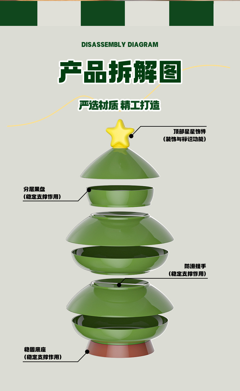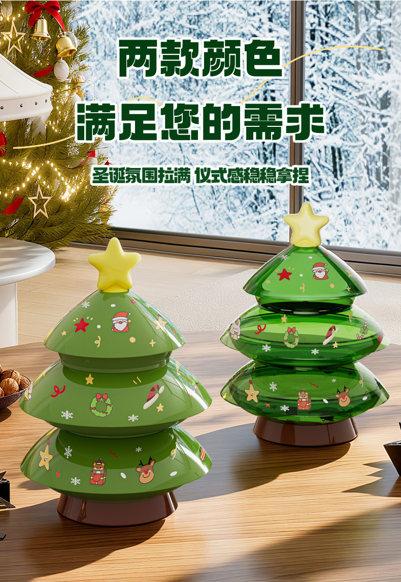 【圣诞多层糖果盒】圣诞节春节年货糖果盘果篮 多层分格零食圣诞树糖果盒 客厅盘子