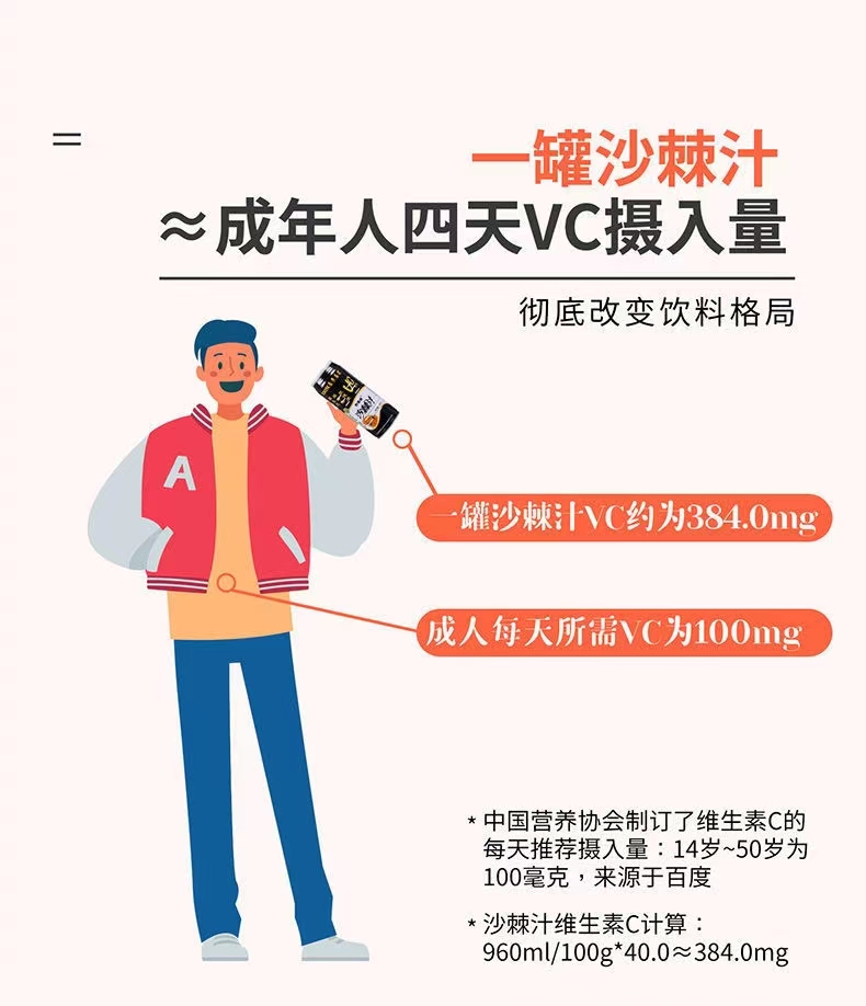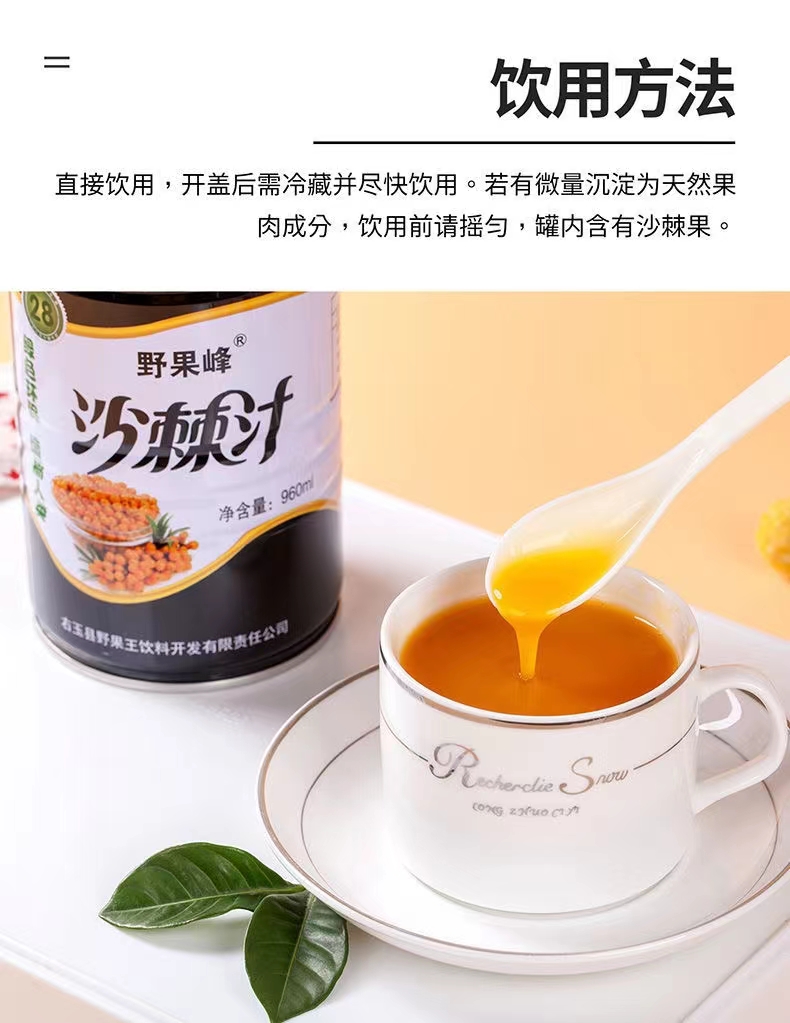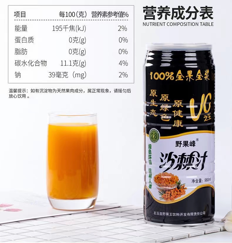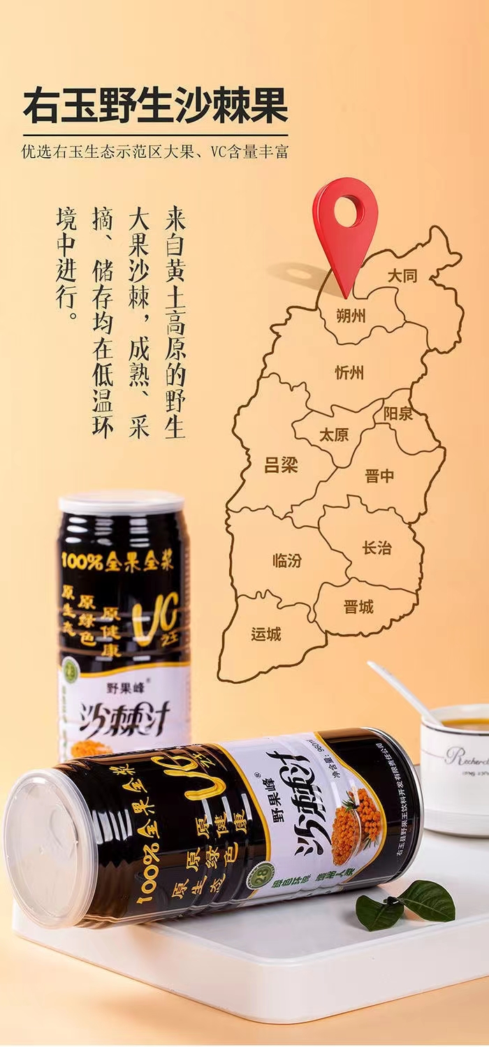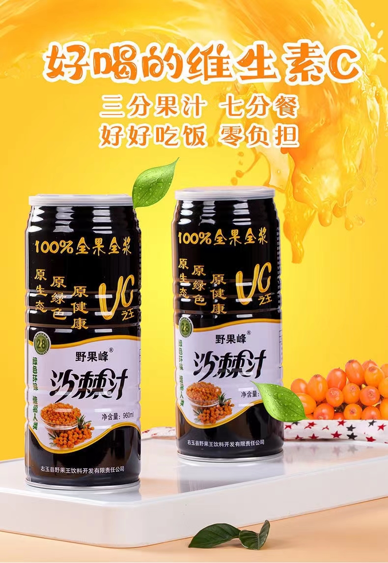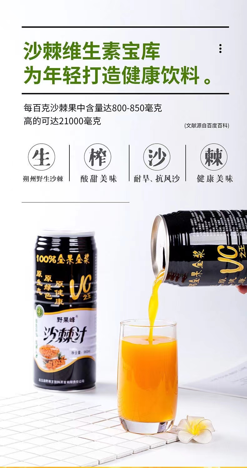 【野果峰】沙棘汁960ml*6罐/箱 鲜果鲜榨营养更全面