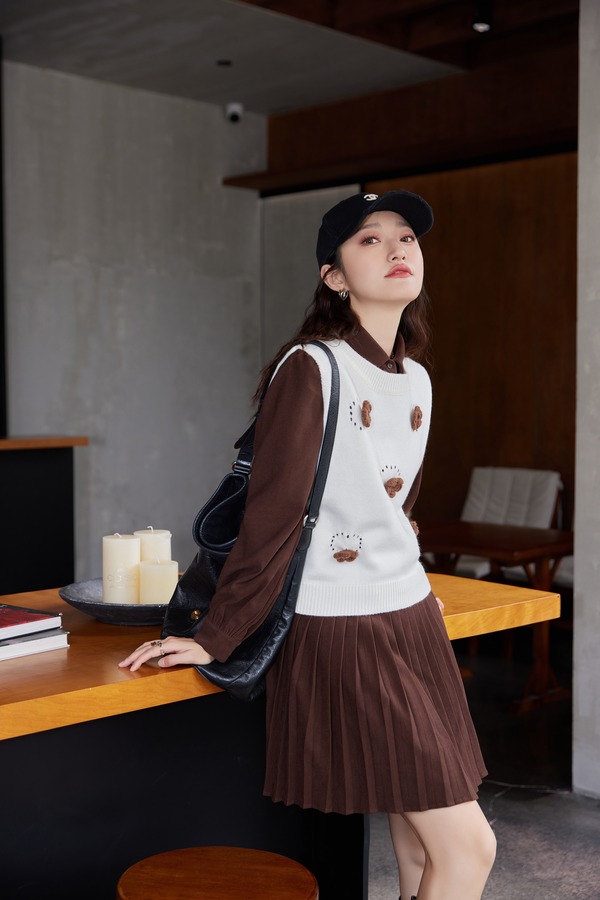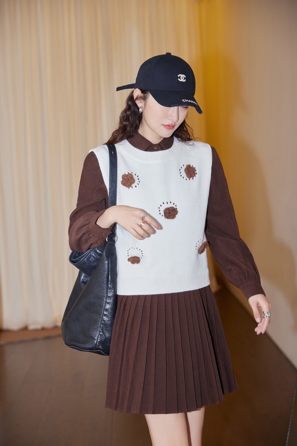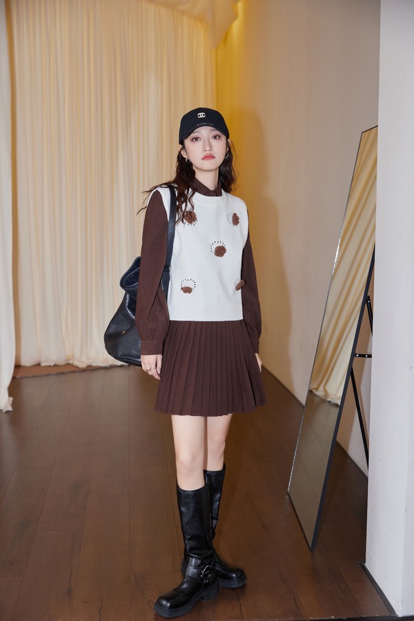 Stay2Weeks 韩系针织背心百褶连衣裙两件套装 19055