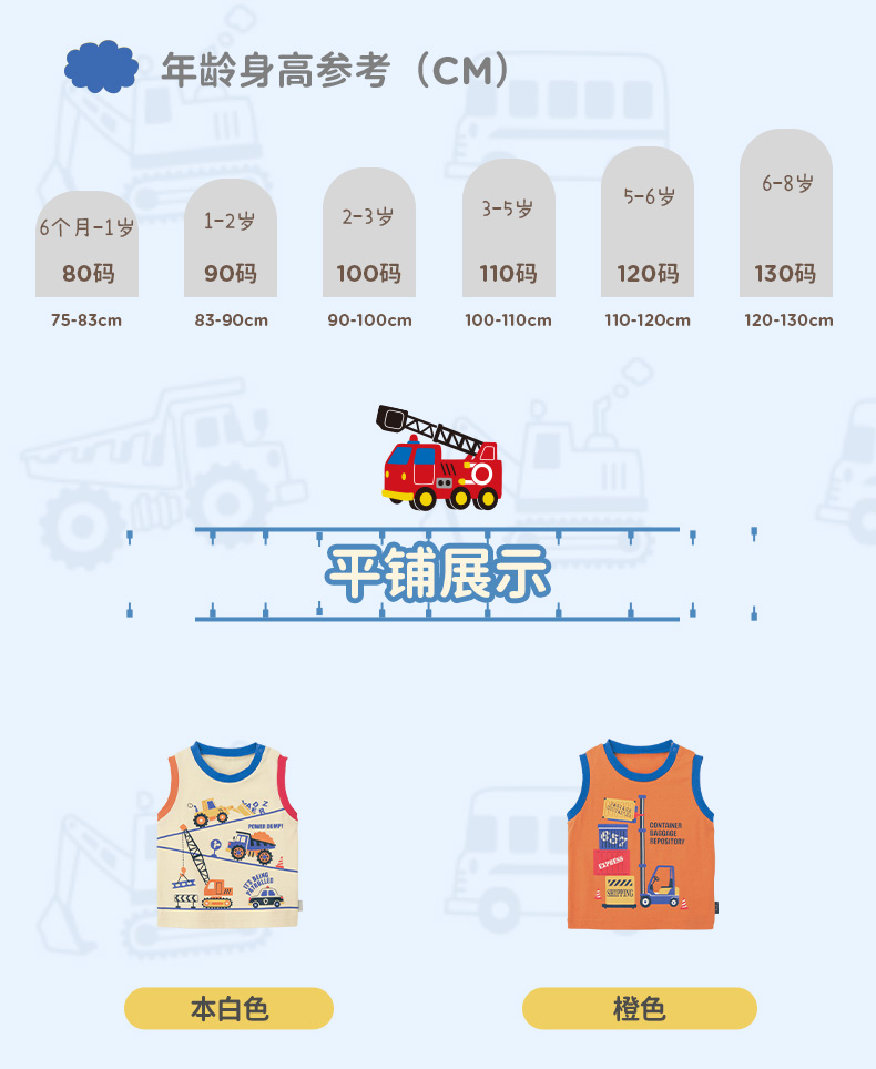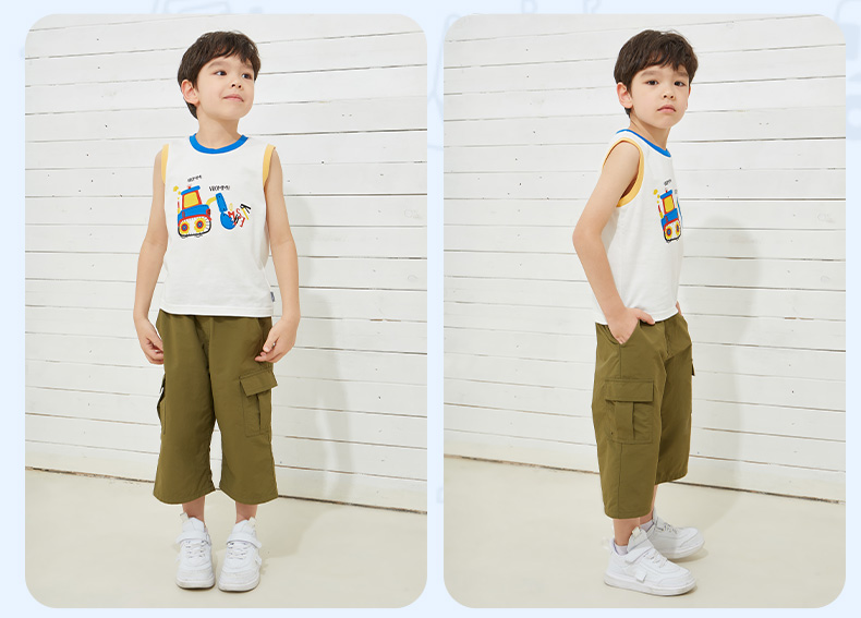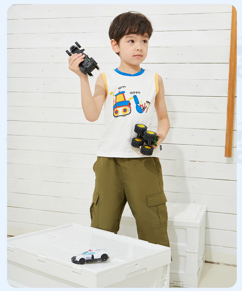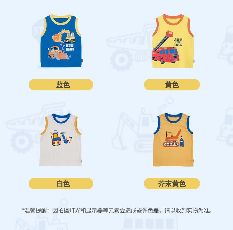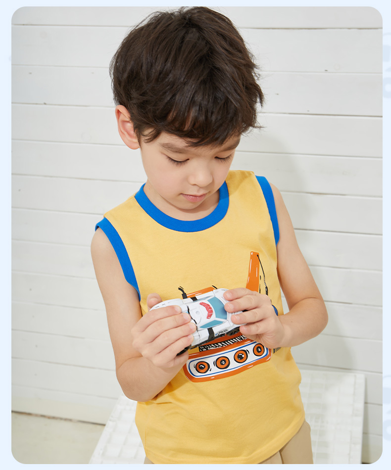 千趣会夏季无袖T恤外穿纯棉透气工程车印花潮酷男童运动背心