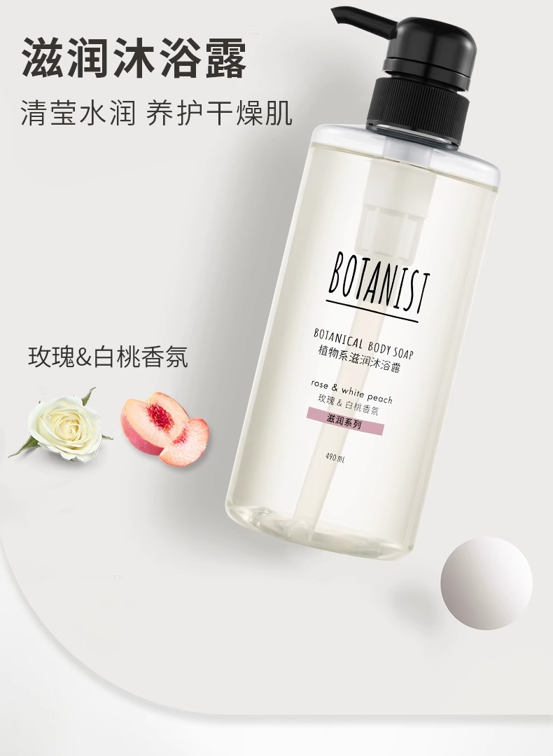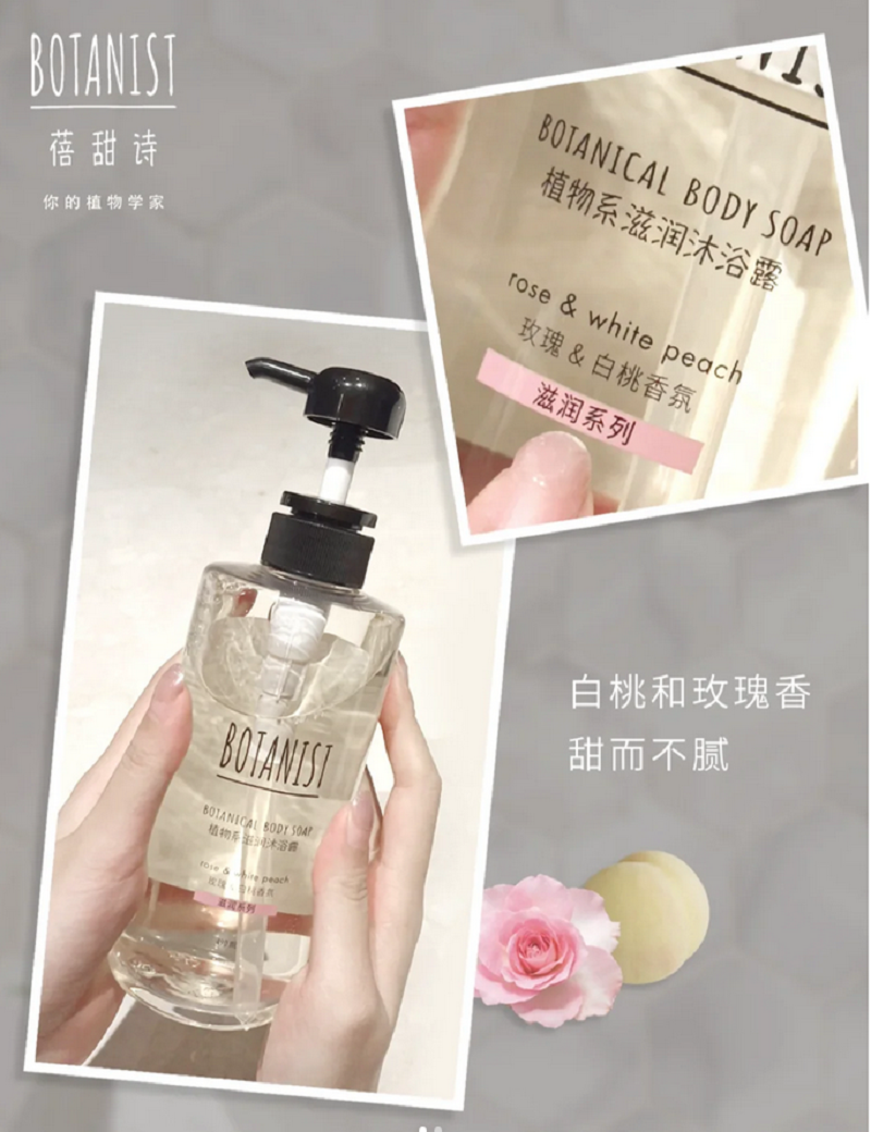 【清仓好价】BOTANIST蓓甜诗植物系滋润沐浴露490ml玫瑰&白桃香型(效期至24.9)