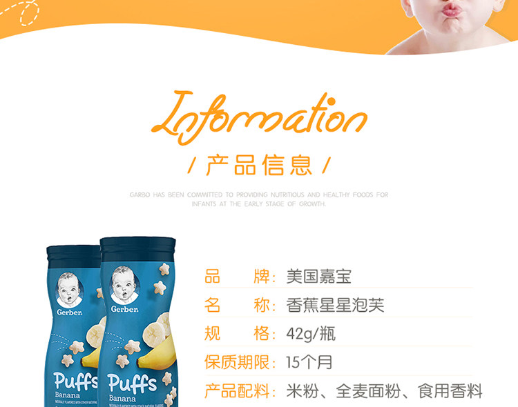 美国gerber嘉宝 泡芙 香蕉口味 42g