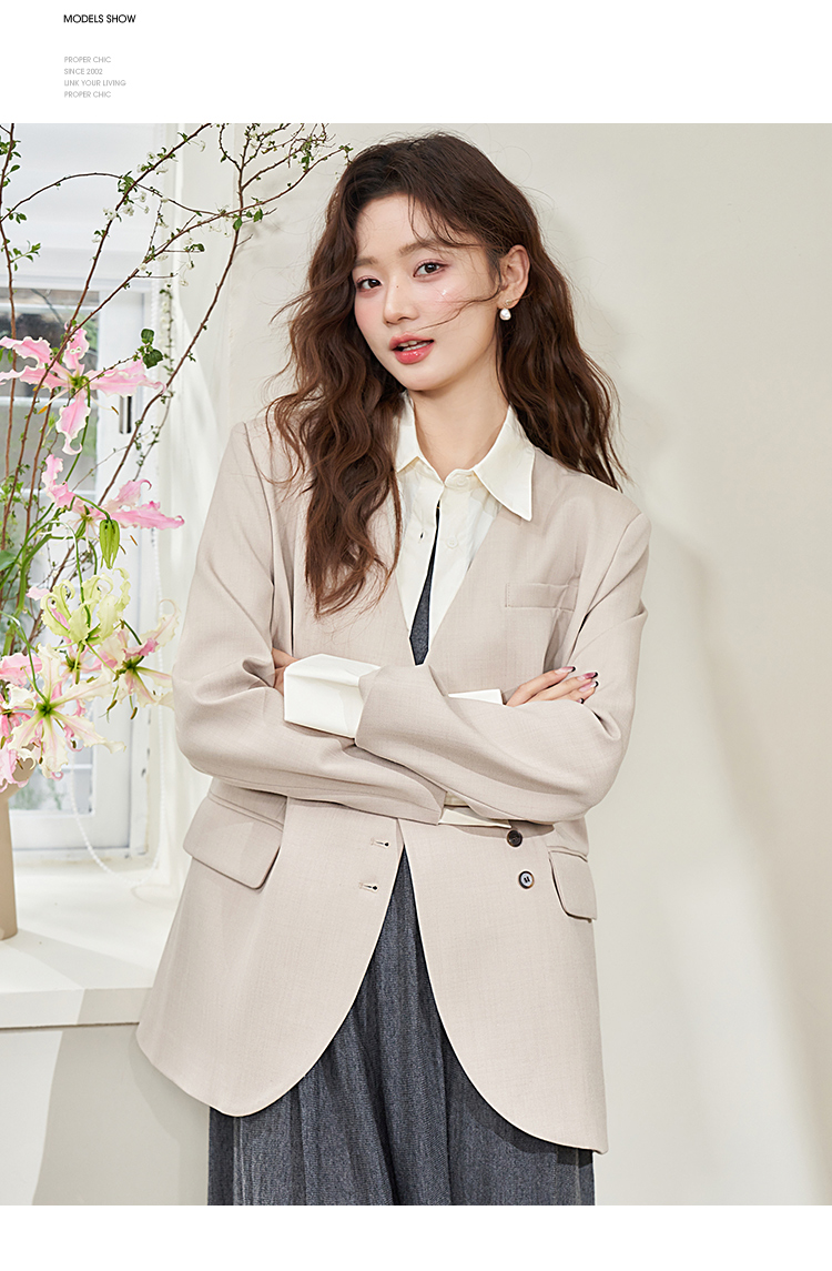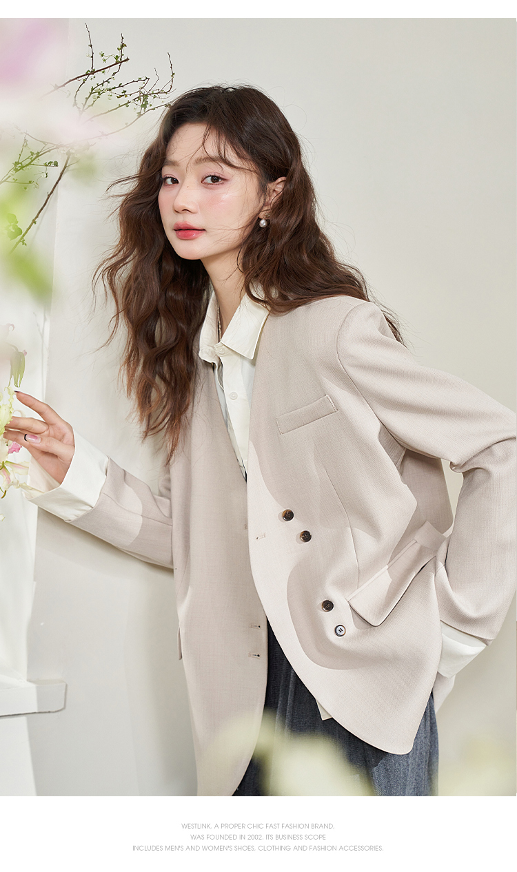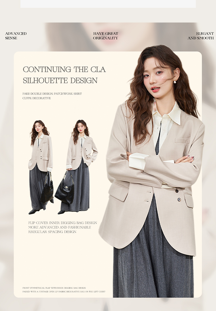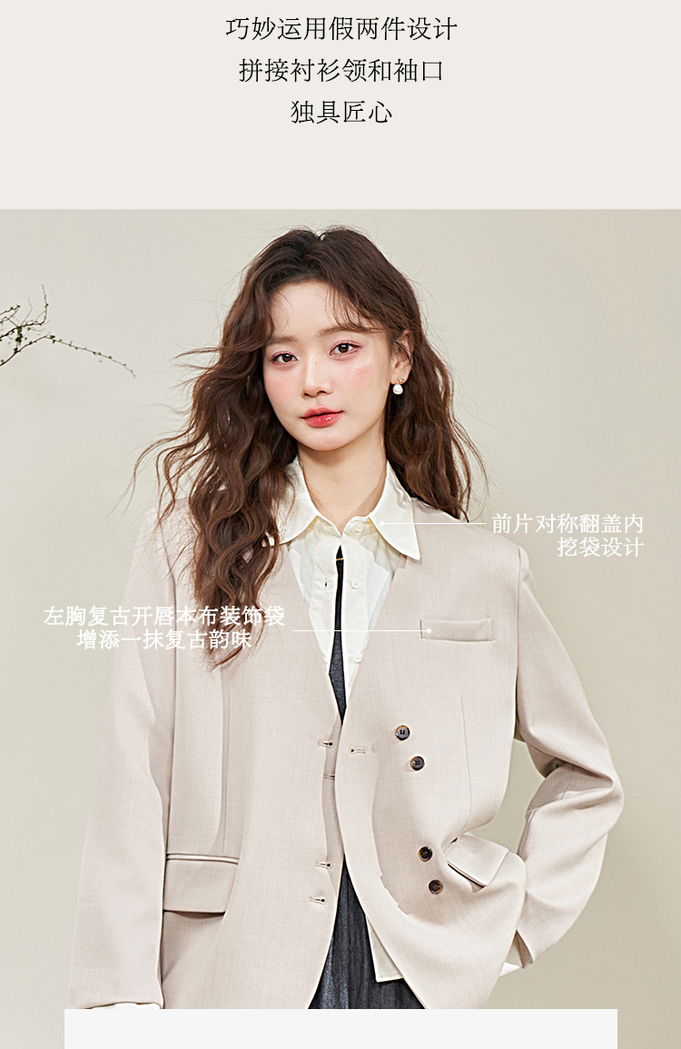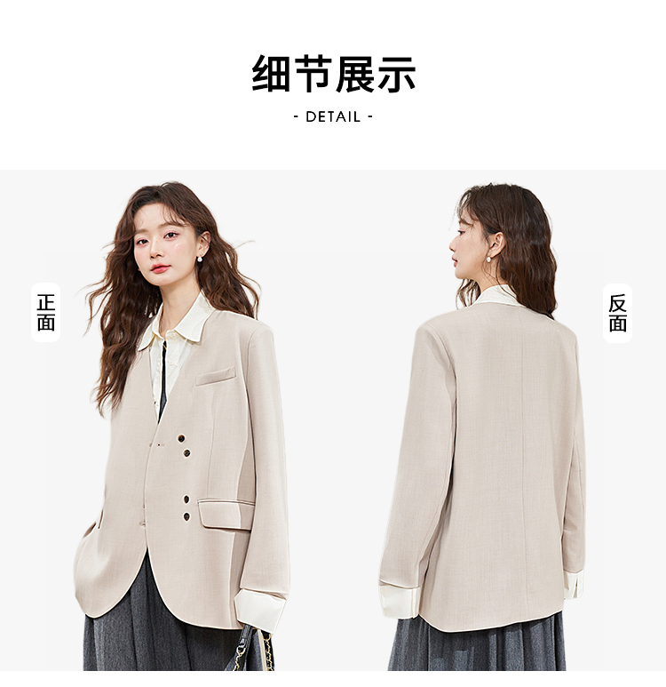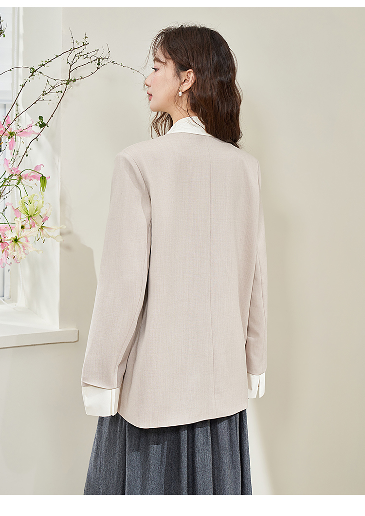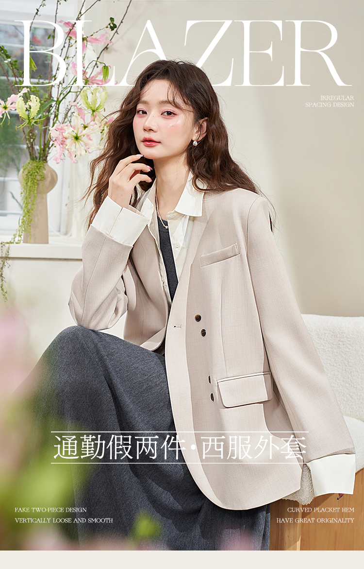 假两件翻领休闲通勤廓形西装外套女春季新款拼接袖口西服V0040538