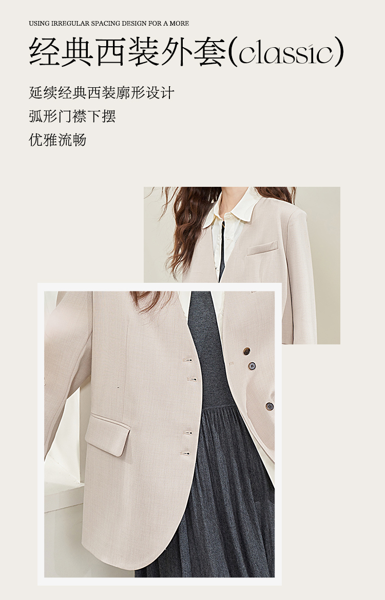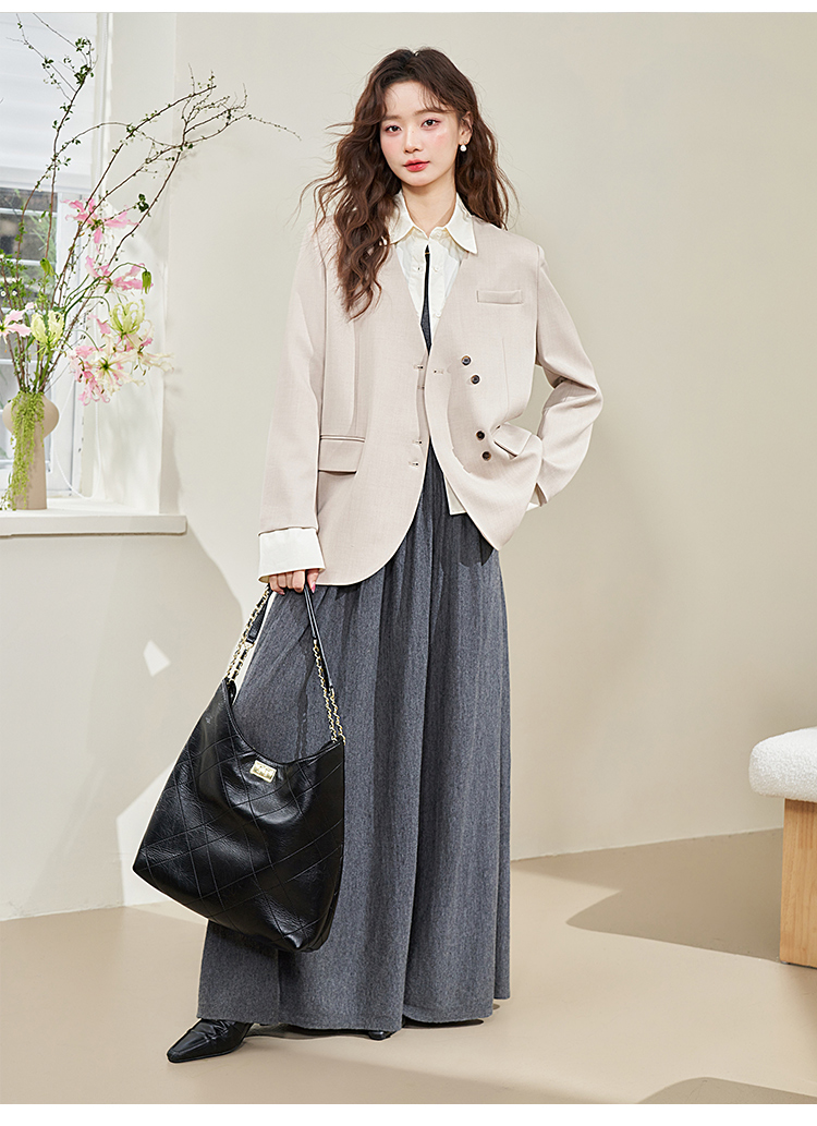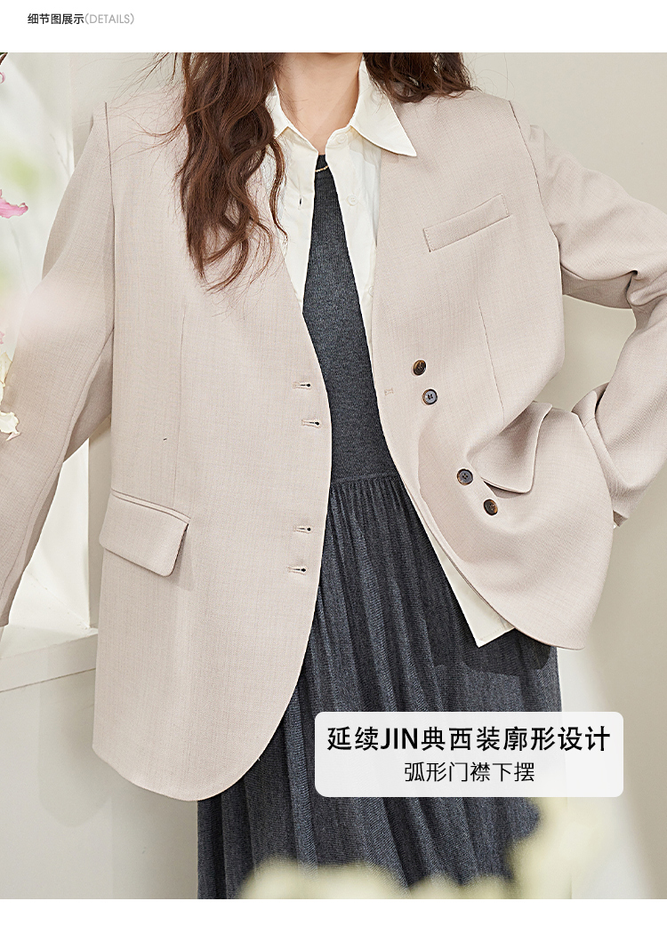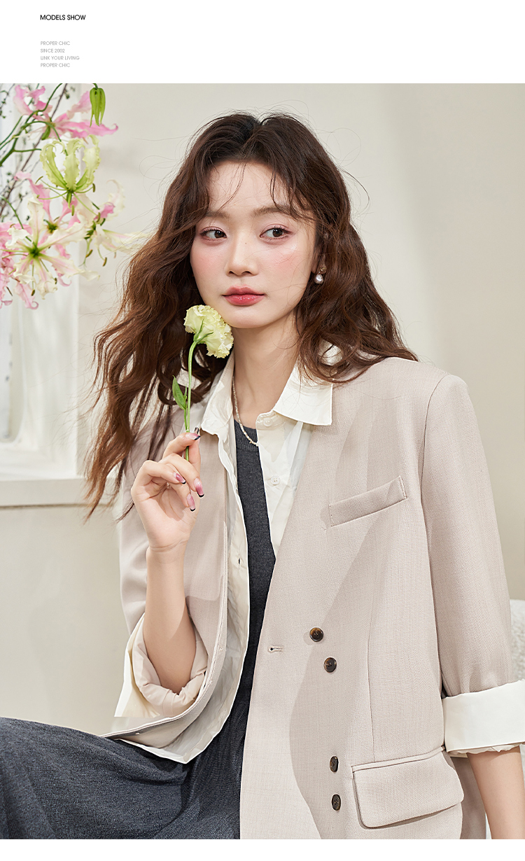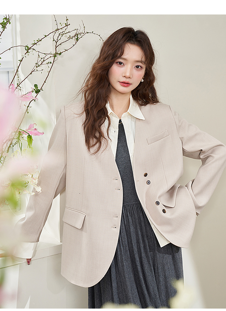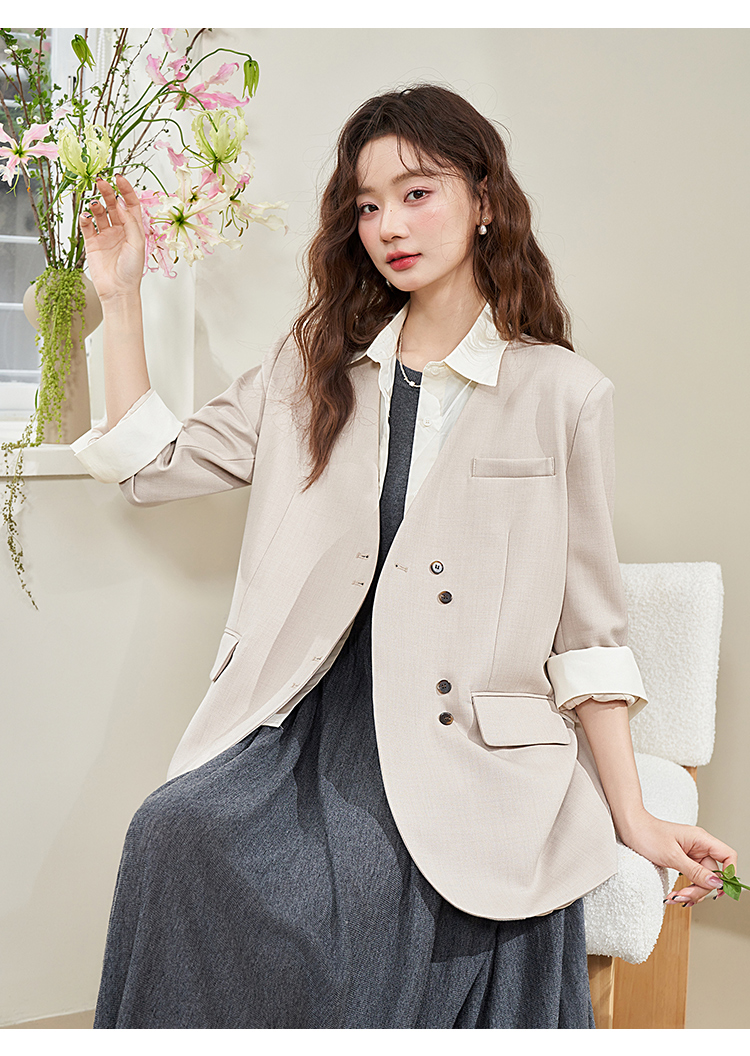 假两件翻领休闲通勤廓形西装外套女春季新款拼接袖口西服V0040538