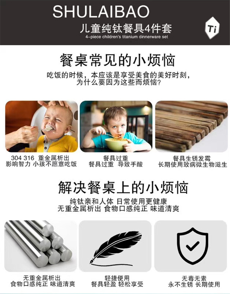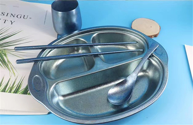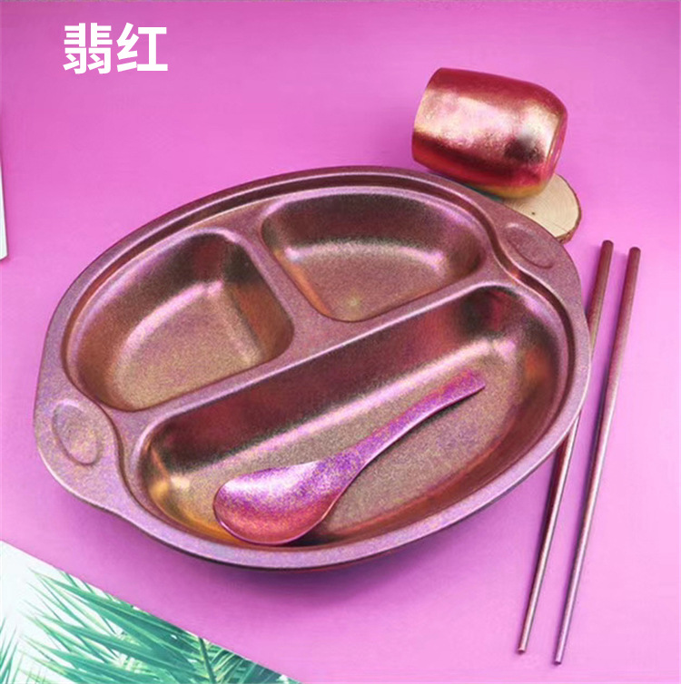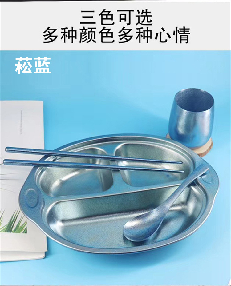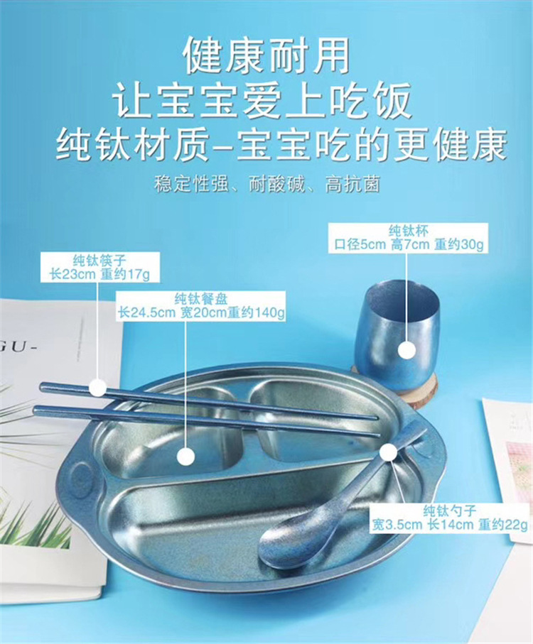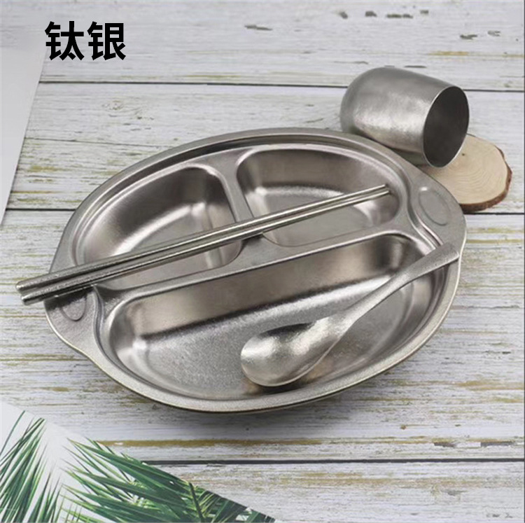 【纯钛儿童餐盘】纯钛幼儿园餐盘儿童餐具宝宝分格男女孩创意卡通防摔分隔饭菜盘子