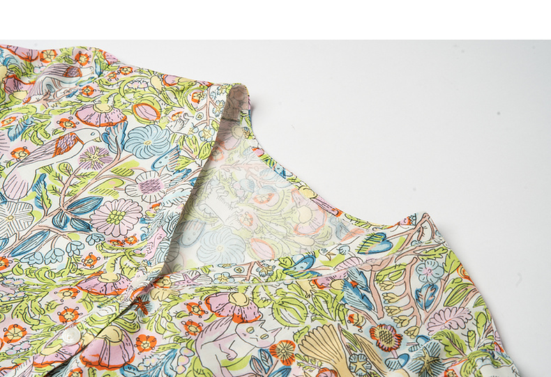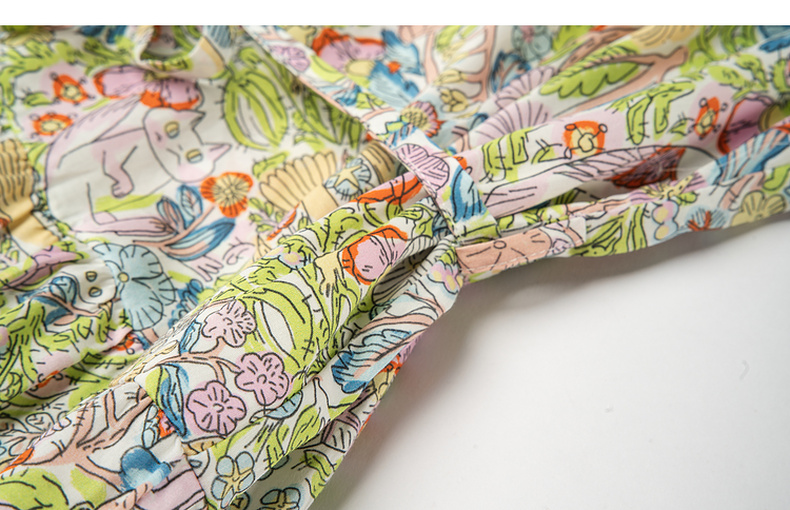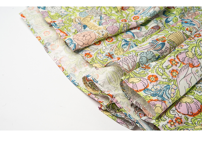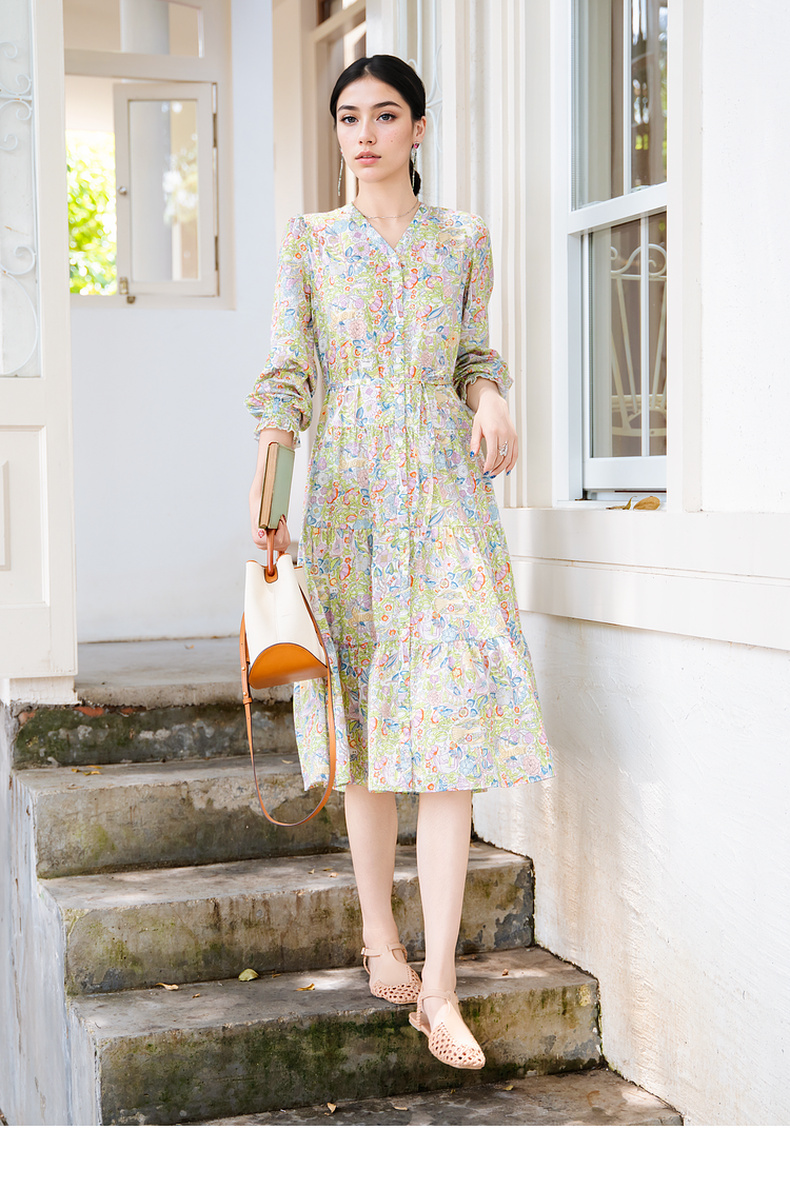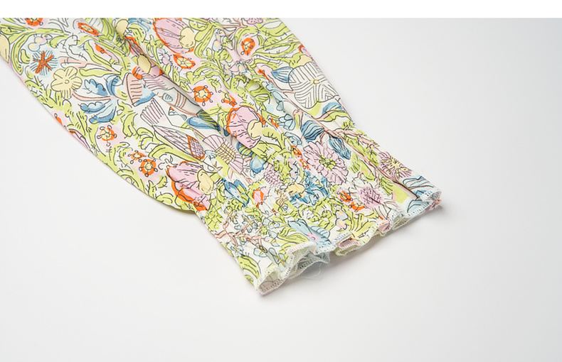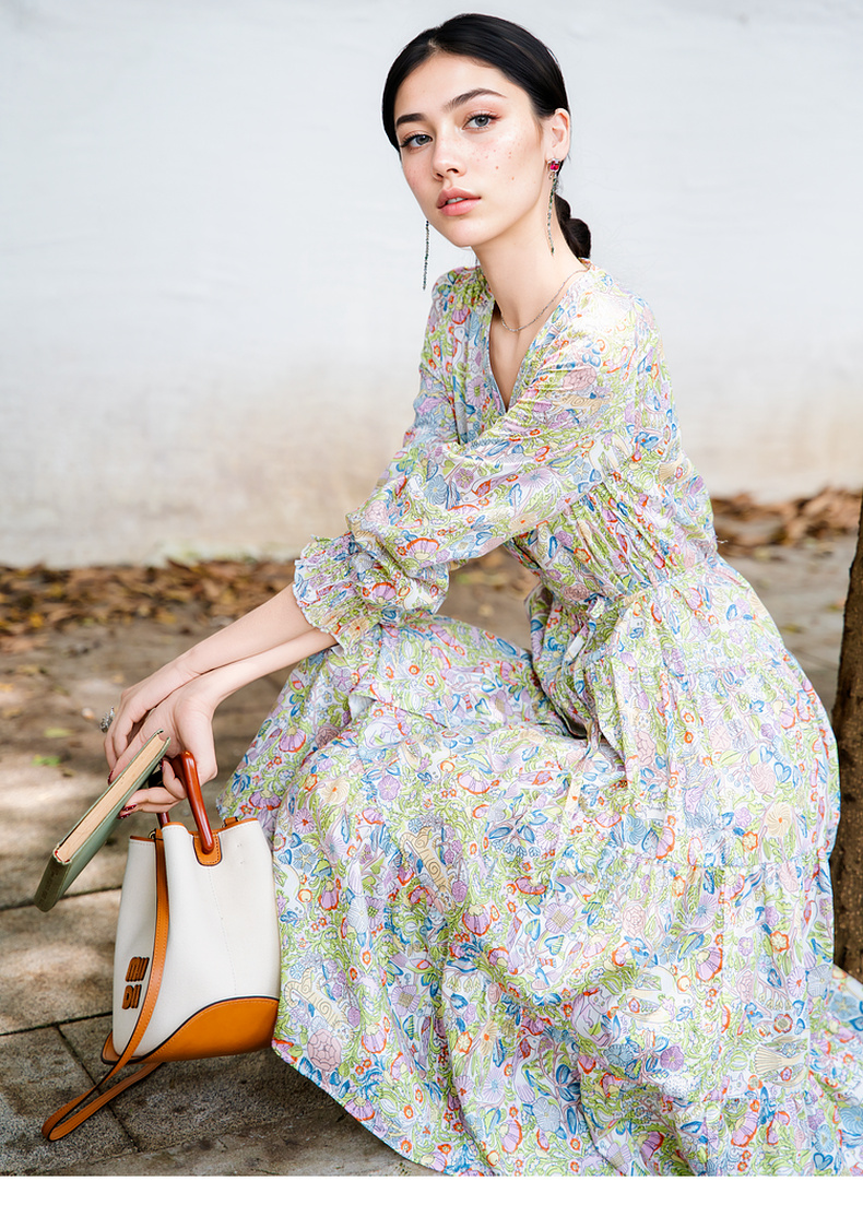 谜底碎花连衣裙长袖2025秋新款复古田园风V领长裙配腰带257ML7841