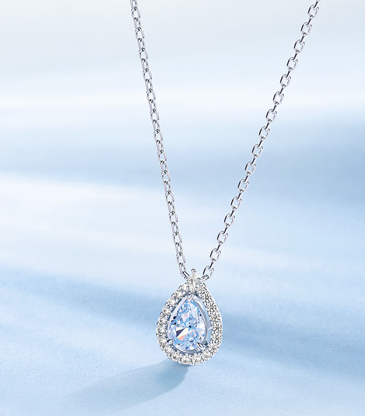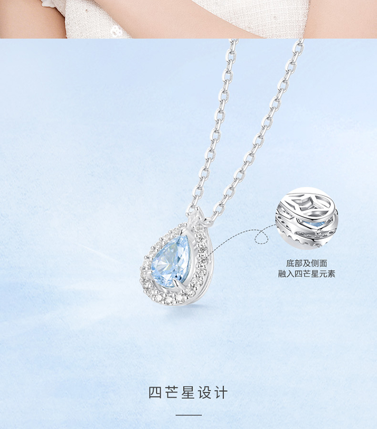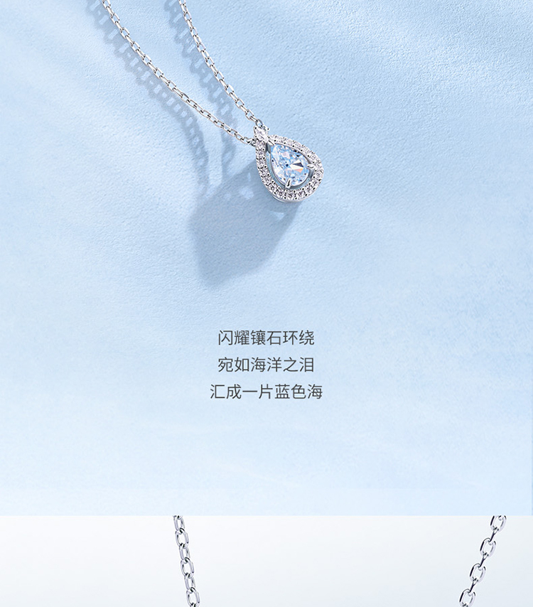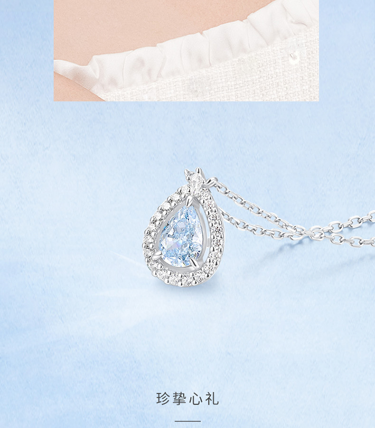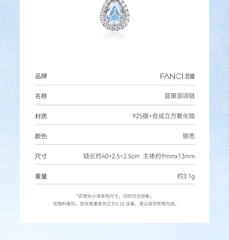 Fanci范琦 蓝眼泪水滴 小众简约锁骨链 925银项链女款