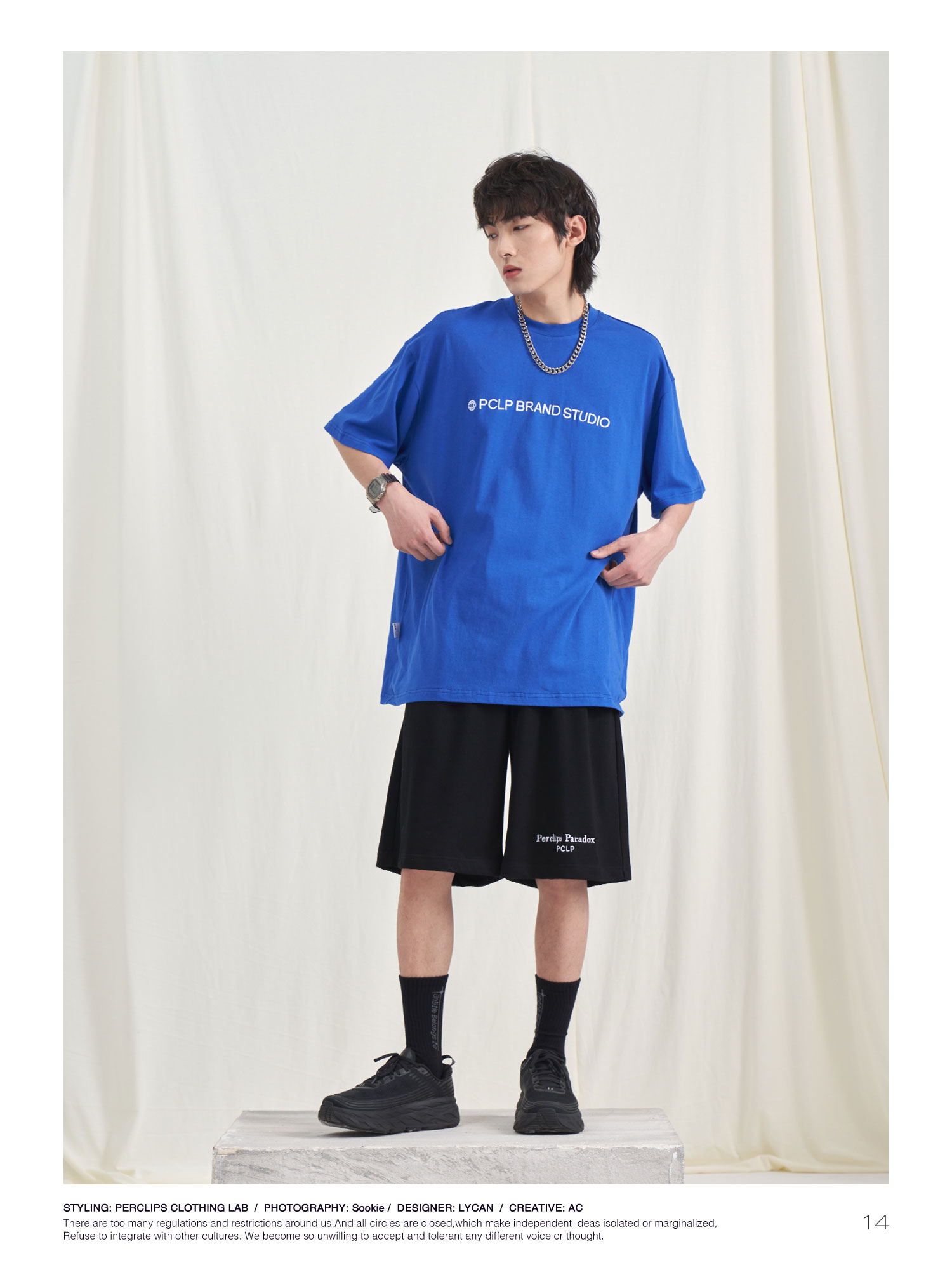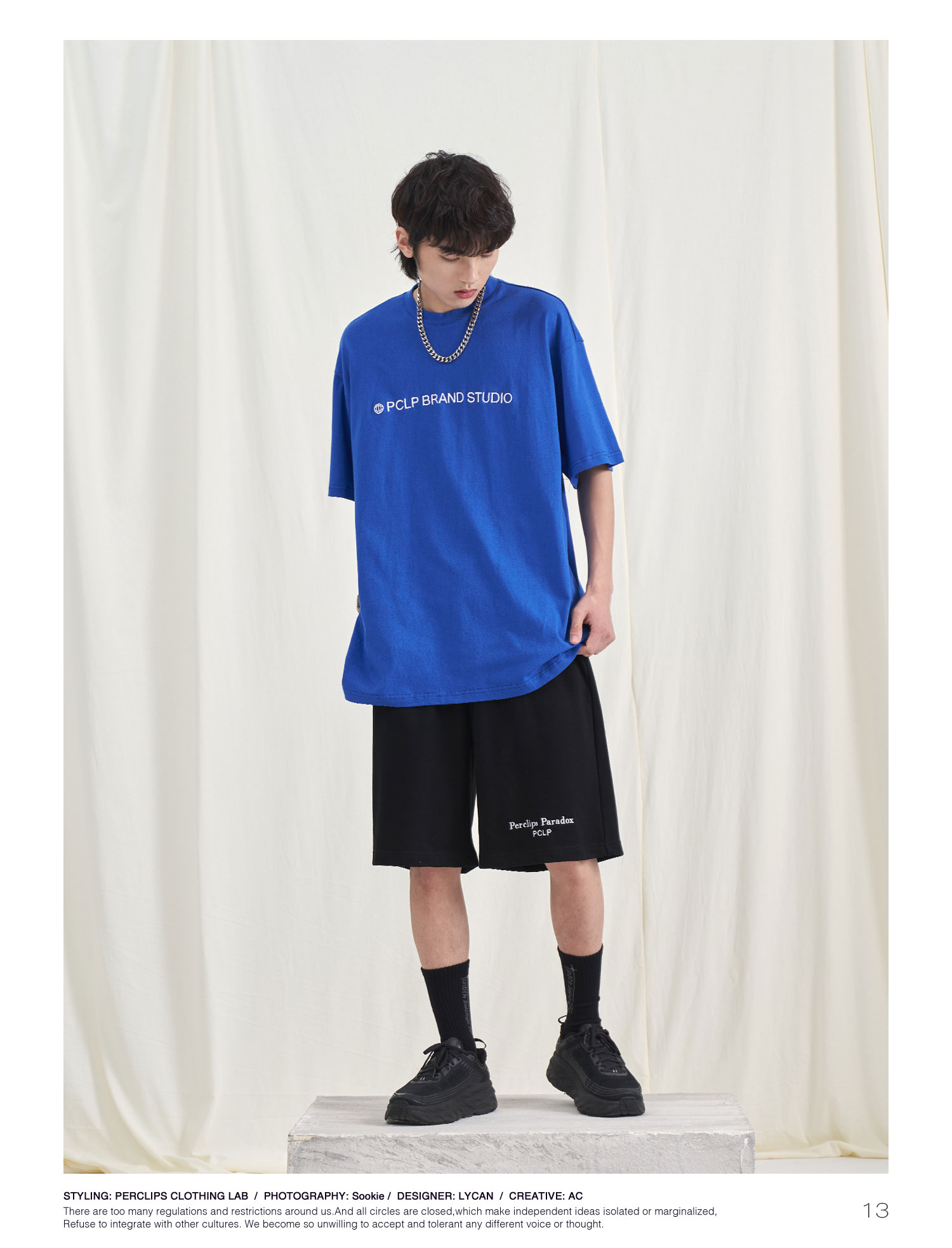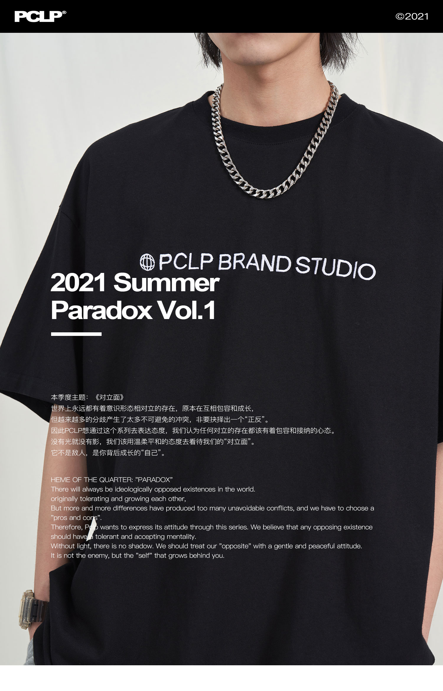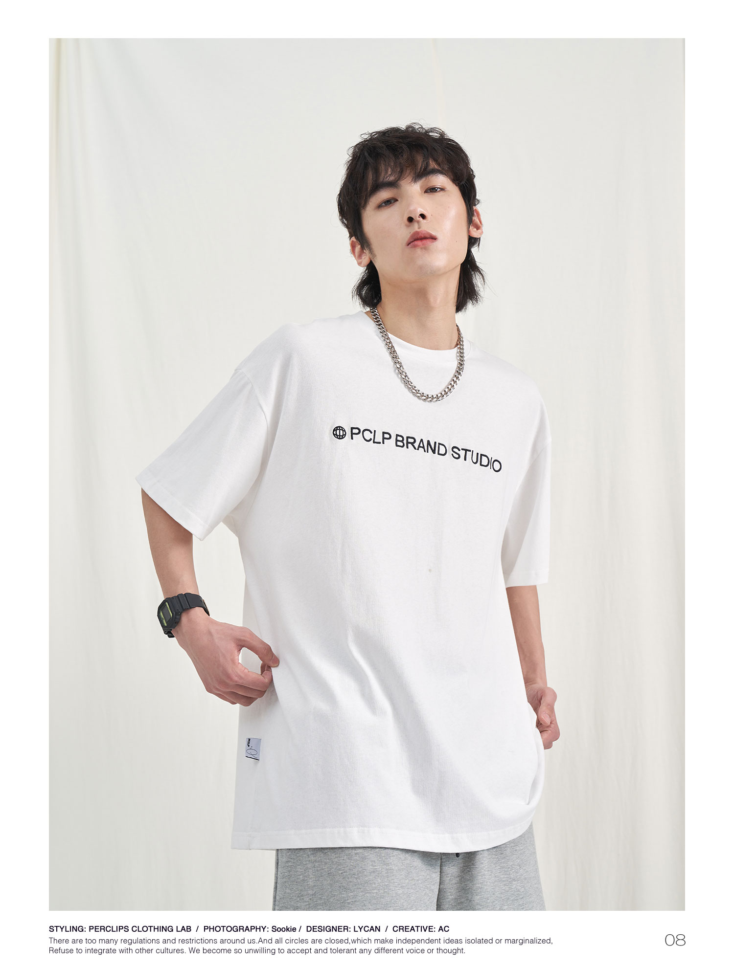 PCLP(PERCLIPS) 纯棉短袖男夏季国潮牌2021新款宽松情侣装半袖t恤
