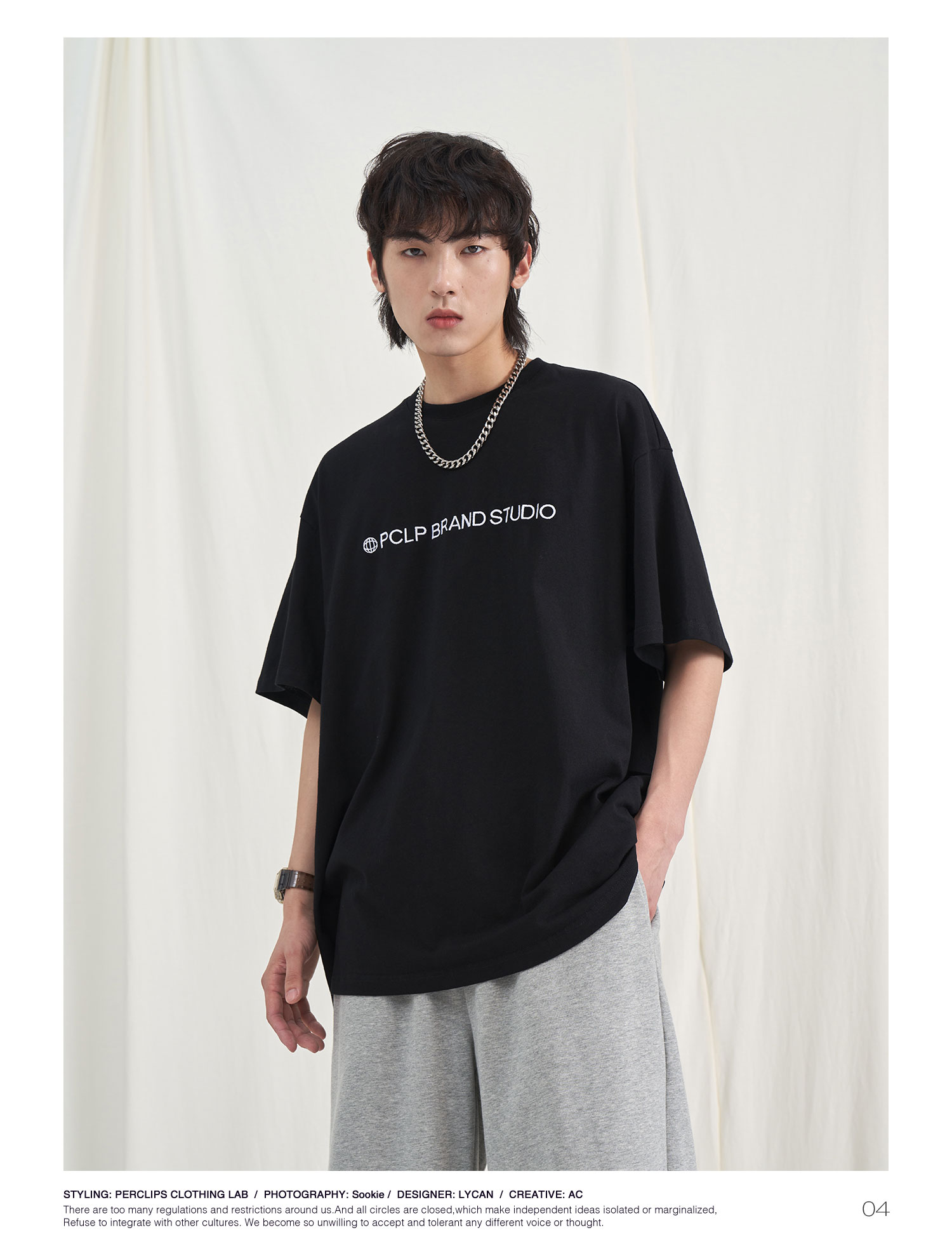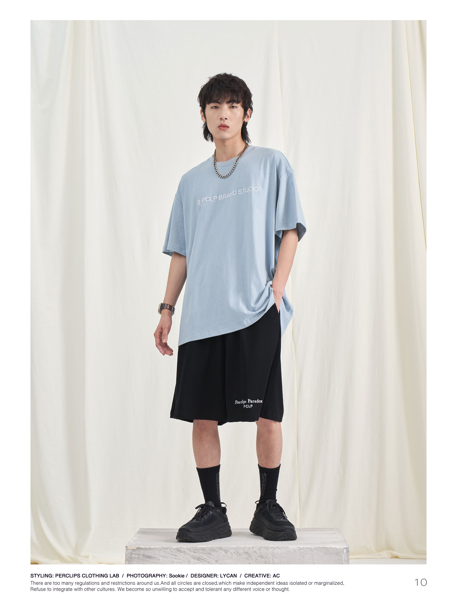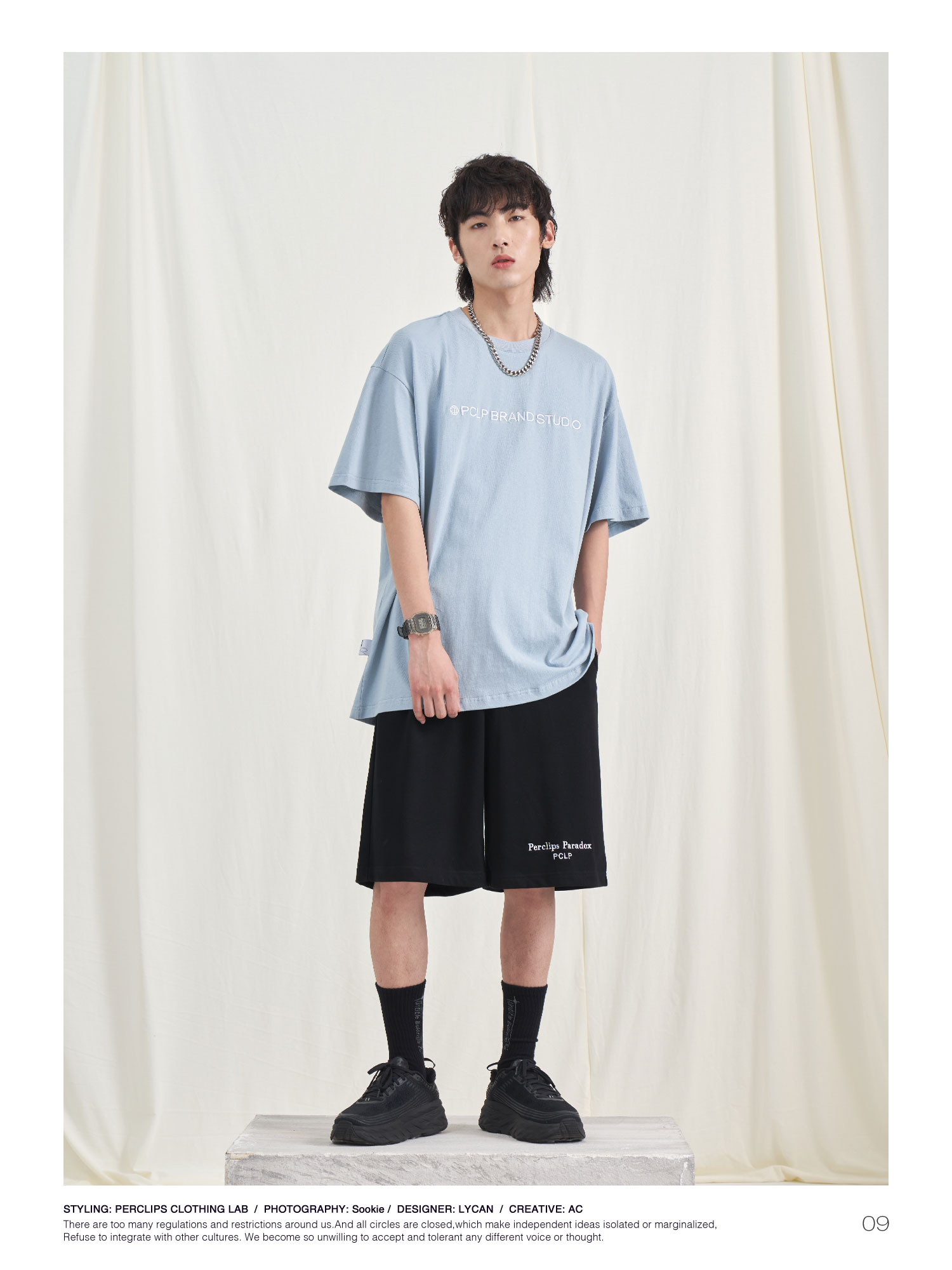 PCLP(PERCLIPS) 纯棉短袖男夏季国潮牌2021新款宽松情侣装半袖t恤