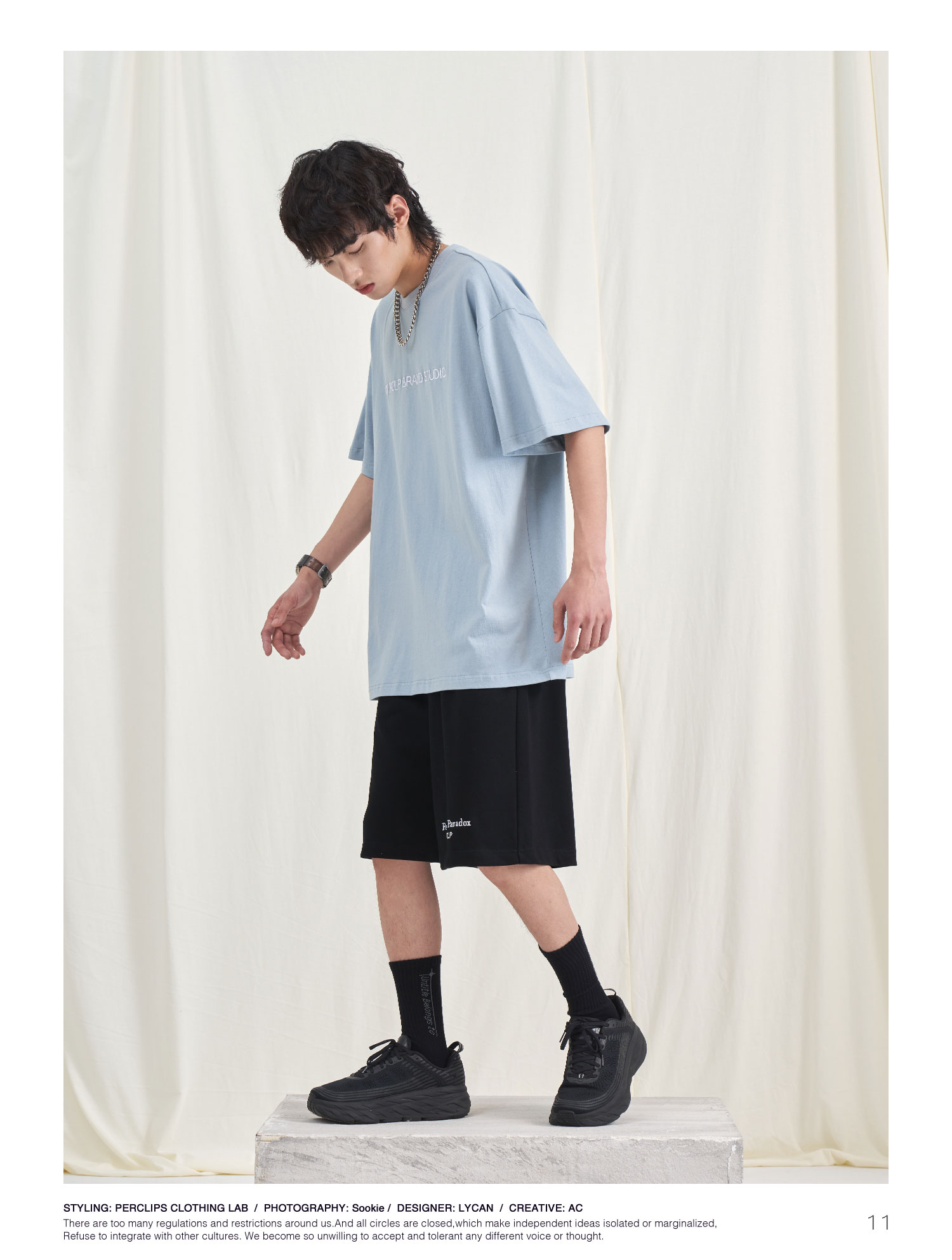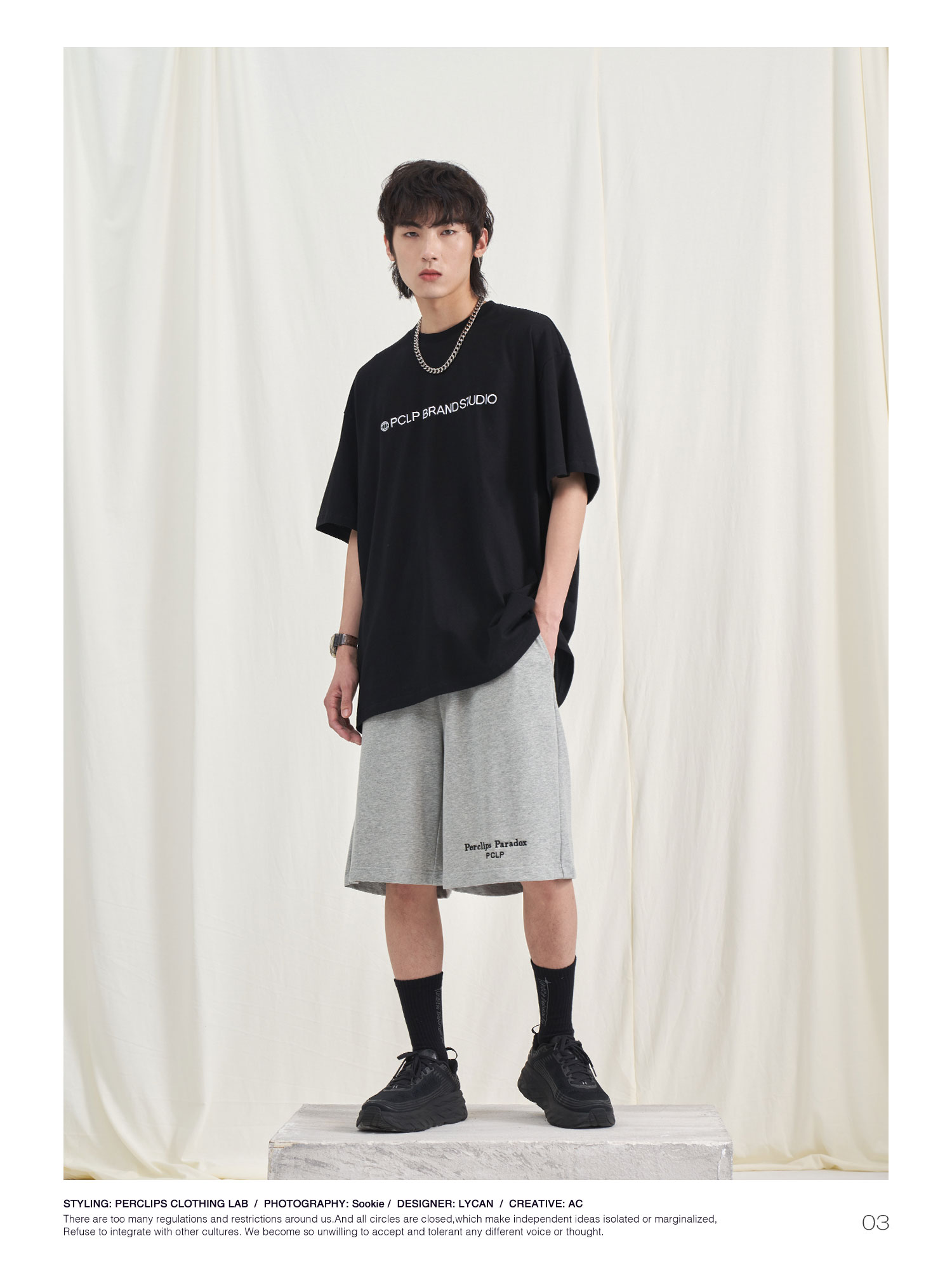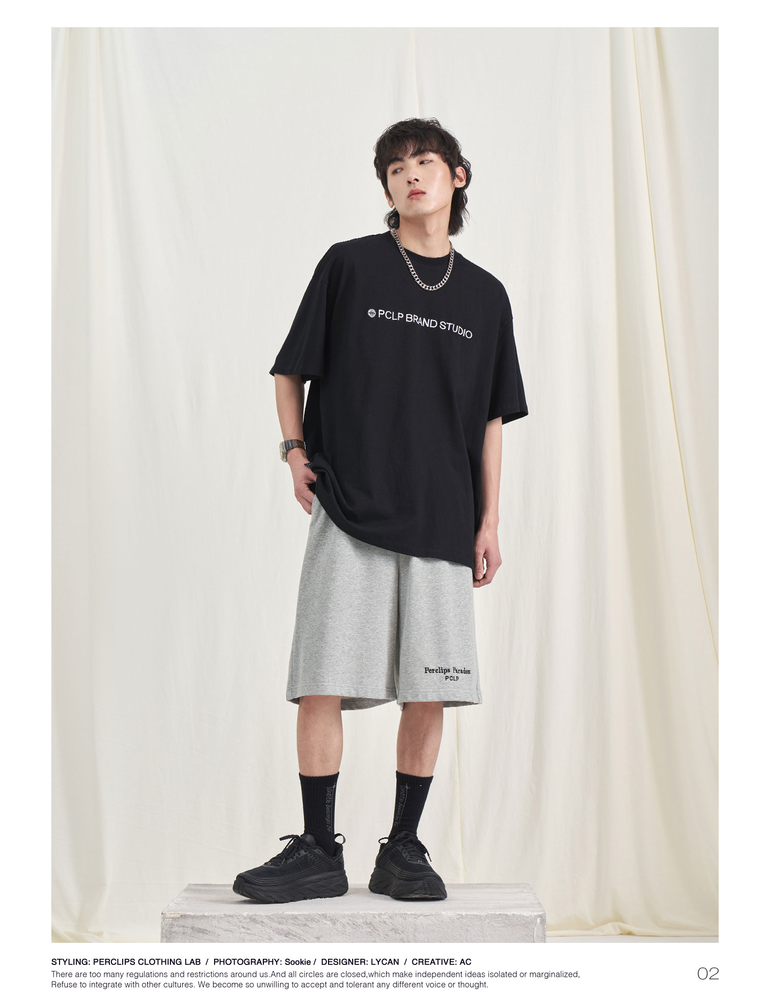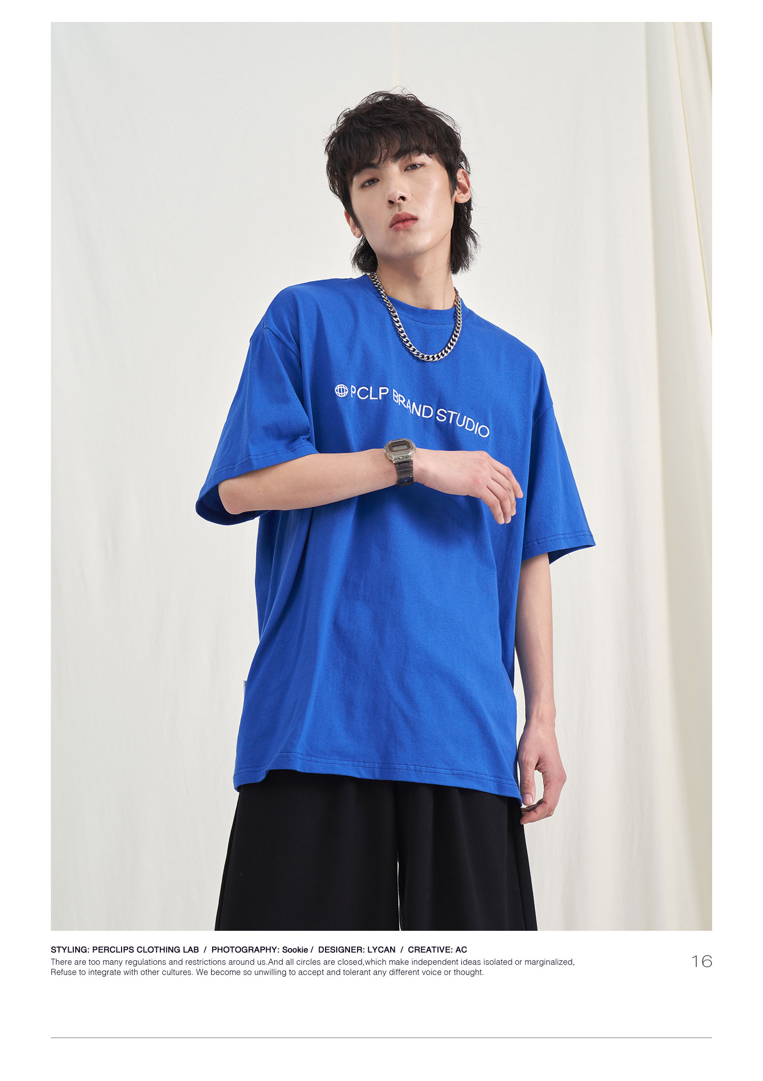 PCLP(PERCLIPS) 纯棉短袖男夏季国潮牌2021新款宽松情侣装半袖t恤