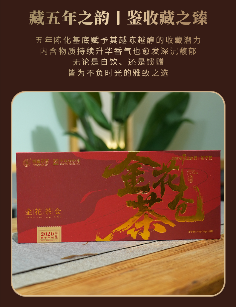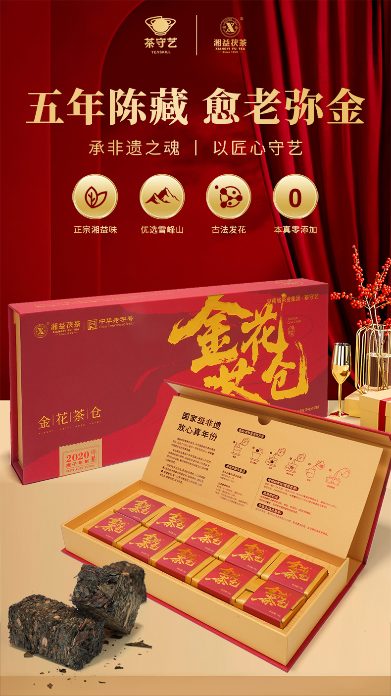【湘益茯茶·五年陈金花茶仓】中华老字号+联合国&GJ级非遗入口顺滑 好喝更健康 240g*盒/送高端手提礼盒*礼袋