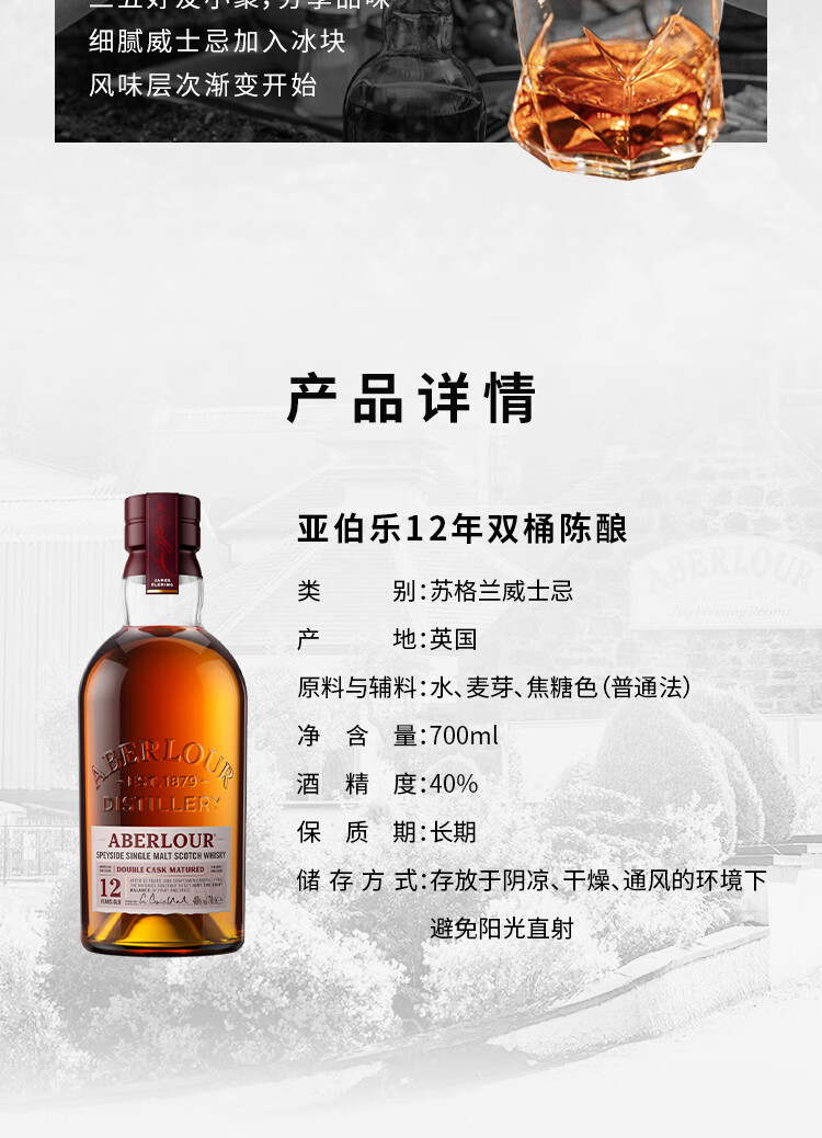 亚伯乐12年双桶陈酿 单一麦芽威士忌 700ml
