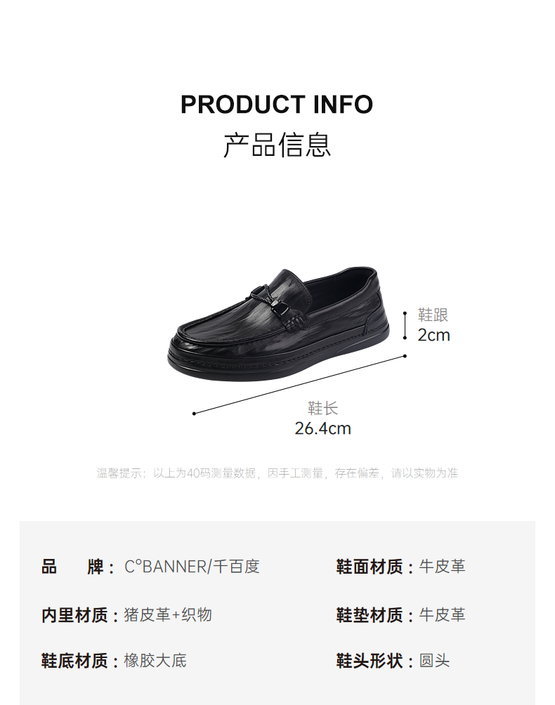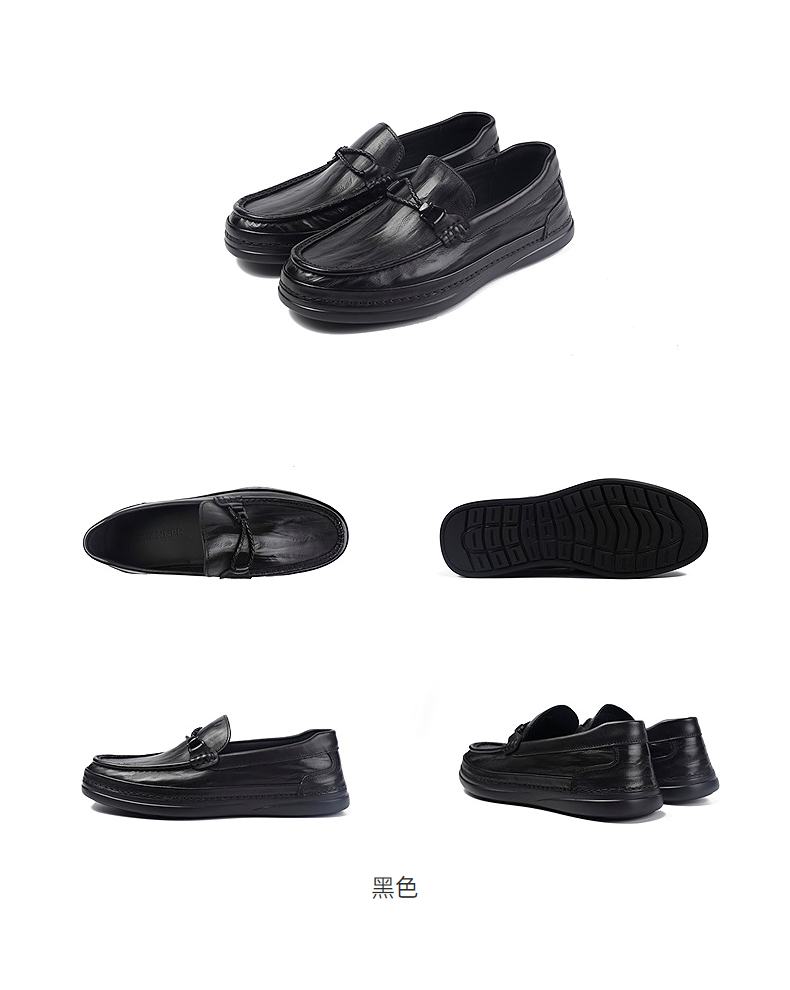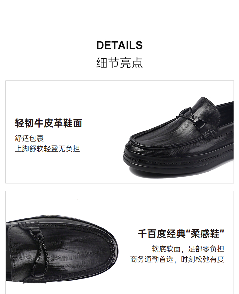 千百度秋季轻韧牛皮革鞋面商务通勤乐福鞋(豆豆鞋)A25466582