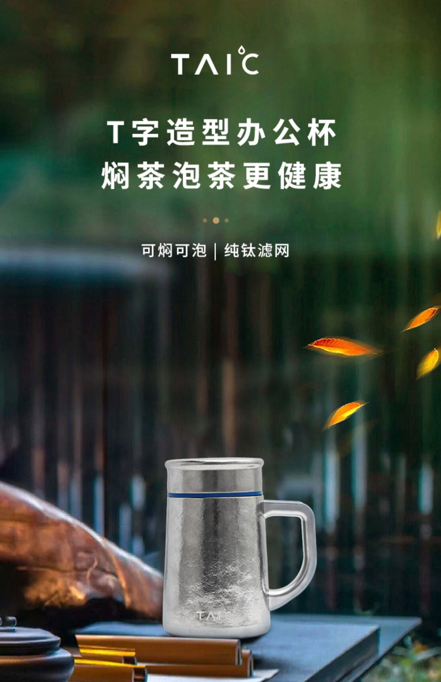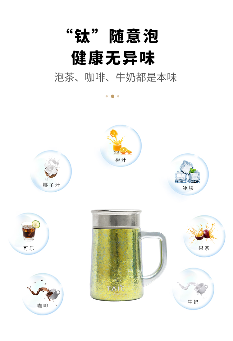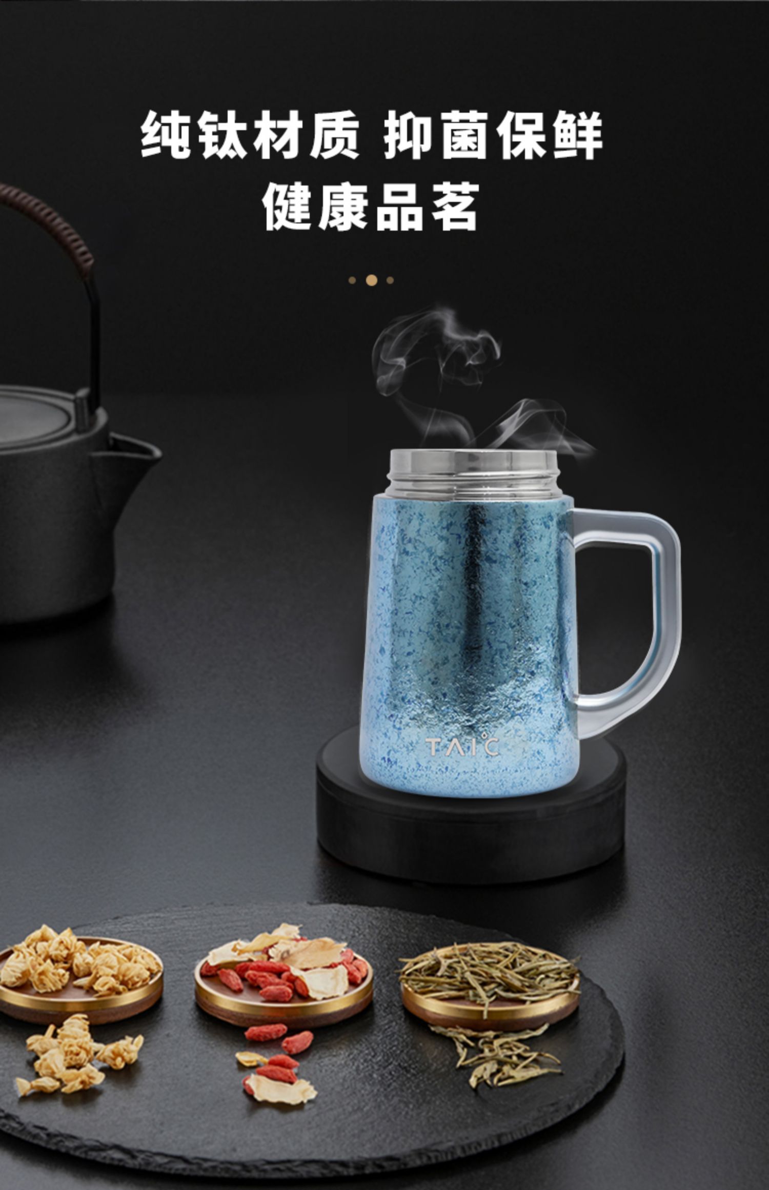 TAIC太可纯钛带手柄办公室钛可家用高档带滤网泡茶杯大容量450ML