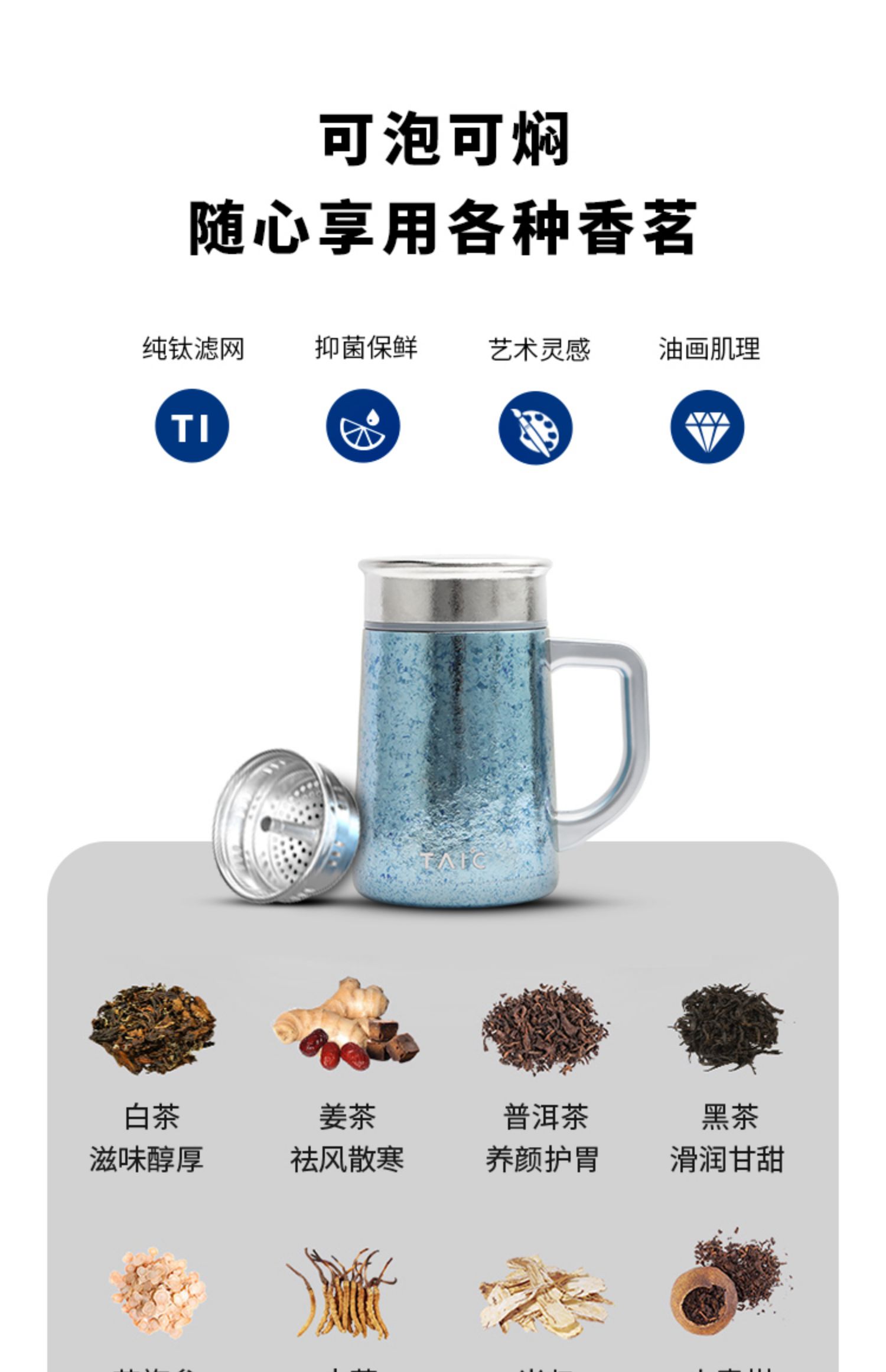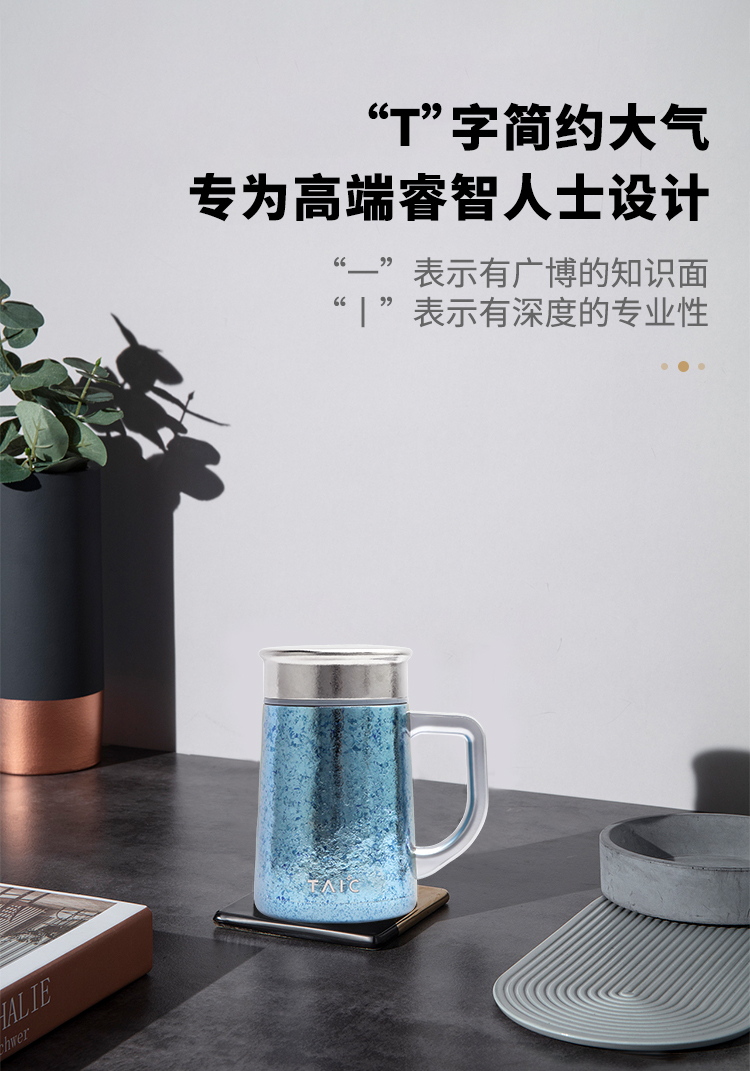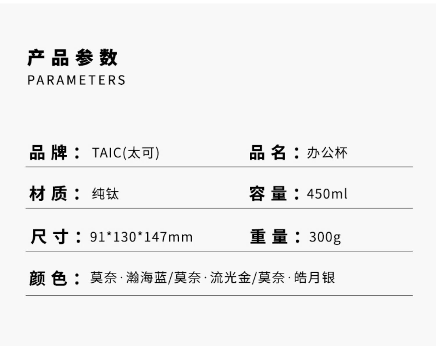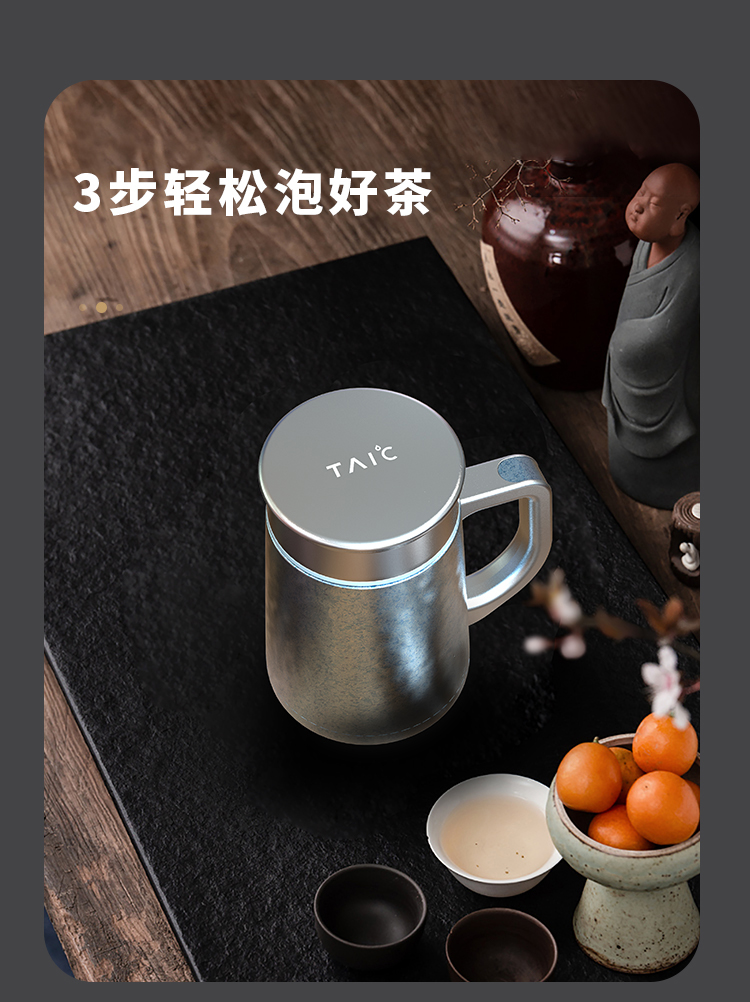 TAIC太可纯钛带手柄办公室钛可家用高档带滤网泡茶杯大容量450ML